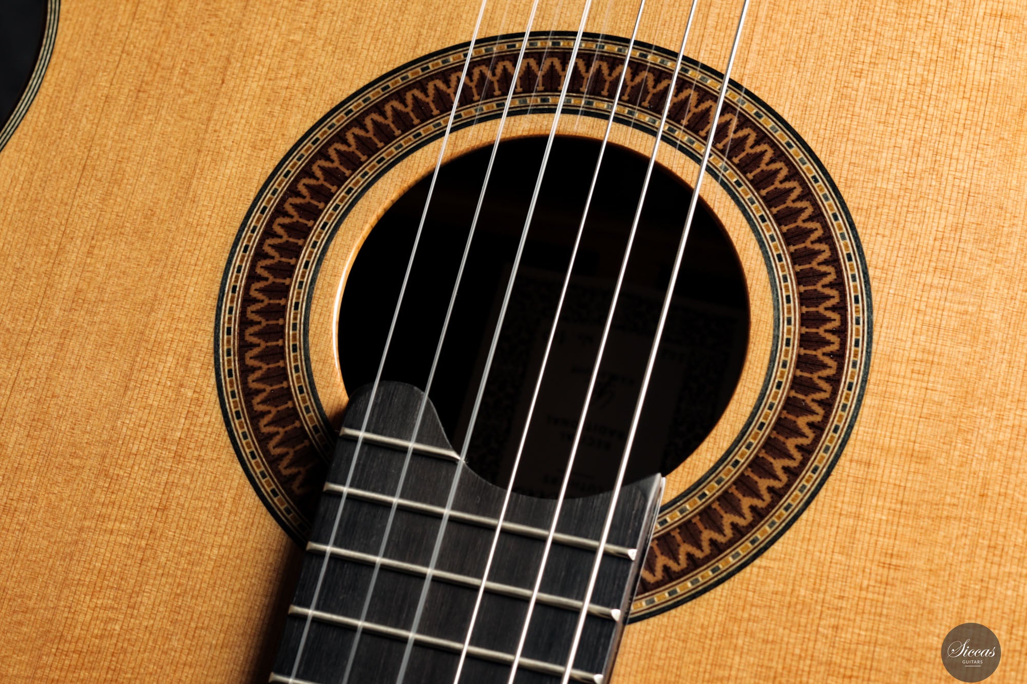 Diese Gitarre bietet eine natürliche und ausdrucksstarke Stimme mit starker Musikalität und sehr guter Projektion. Sie überzeugt durch Klarheit und differenzierte Tonabgrenzung, jedoch mit einer etwas verschmolzeneren, atmosphärischen Textur – warm und einladend. Die Präsenz bleibt zugleich intim und kraftvoll, die Bässe sind seidig und tragend, während die Diskante Tiefe und Ausdruck mit farbenreichen Obertönen entfalten. Das Modell bleibt der klassischen Tradition treu und steht zugleich für die klangliche Präzision und Fertigungsqualität, für die Siccas Luthiers bekannt ist.