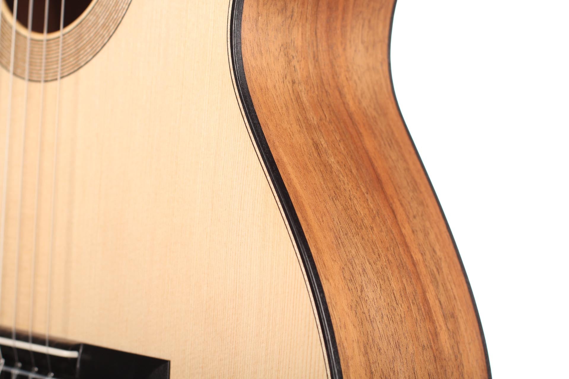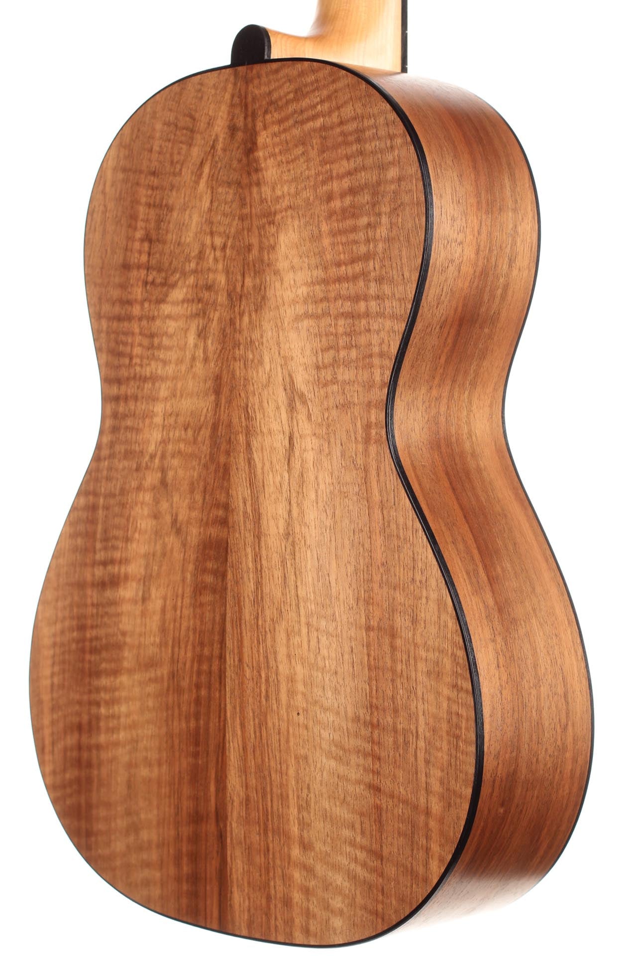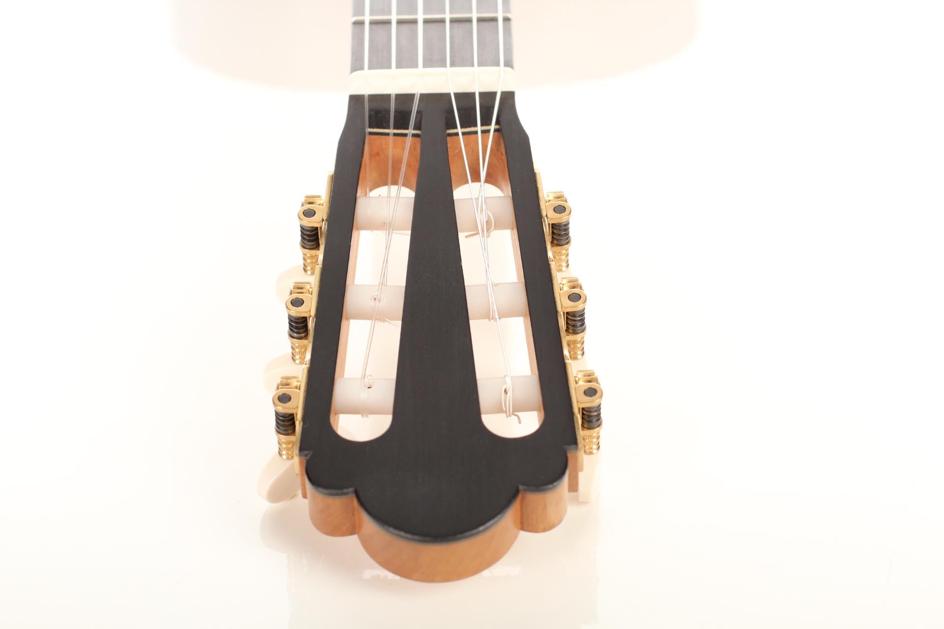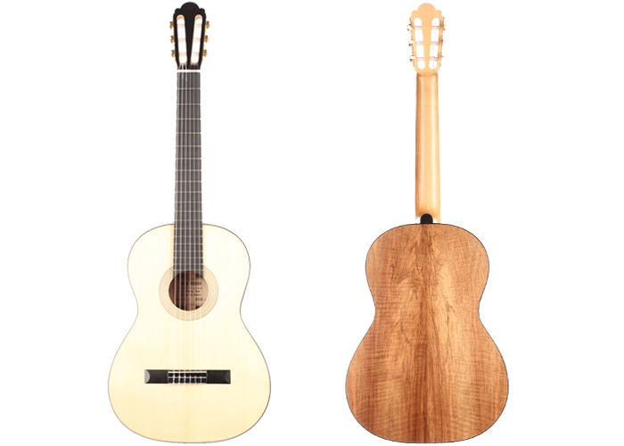 Diese Gitarre wurde für das Cordefactum Festival 2017 angefertigt wo ausschließlich Gitarren vorgestellt wurden, die mit heimischen Hölzern gebaut wurden. Die Gitarre ist traditionell gebaut. Die Decke ist aus Fichtenholz gefertigt während Boden und Zargen aus Walnussholz sind. Das Griffbrett ist aus Rocklite, welches ein sehr dichtes Material ist und als Ebenholzersatz verwendet wird. Es ist eine sehr leicht zu spielende Gitarre mit klarem Diskant und sehr schöner Ausgeglichenheit zwischen den Lagen. Der Bass ist präsent und warm klingend. Die Mechaniken sind von Rubner Ein Hartschalenkoffer ist inklusive. Diese Gitarre ist CITES-frei.