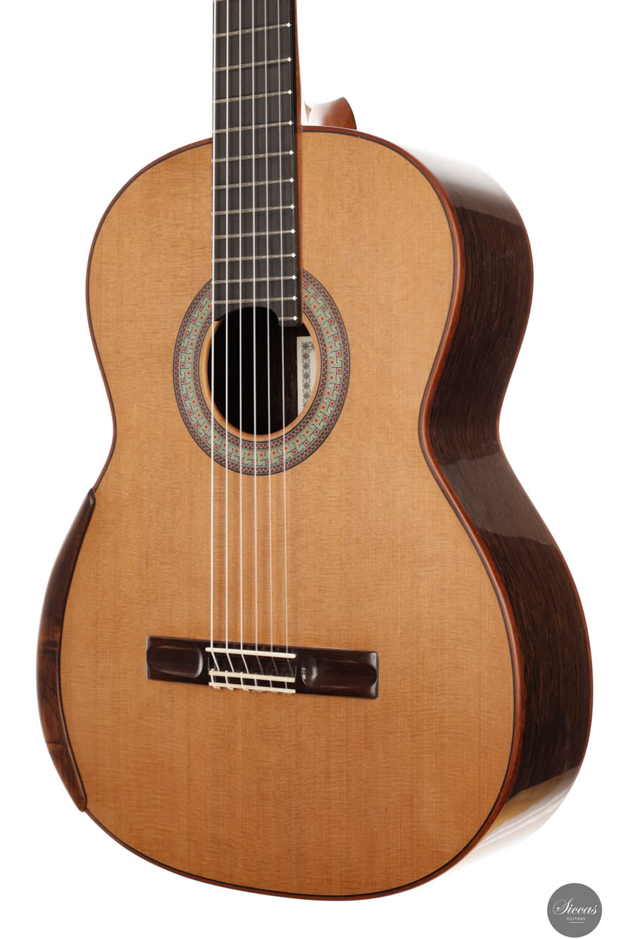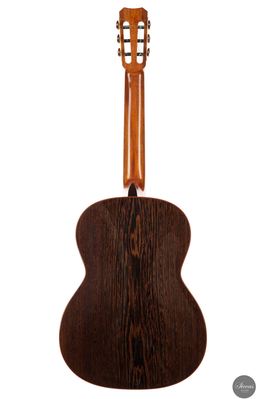 Diese brandneue Gitarre präsentiert eine hervorragend gefertigte Zedernholzdecke, ausgewählt wegen ihrer gleichmäßigen Maserung und außergewöhnlichen Resonanz, ergänzt durch markantes Wengeholz für Rücken und Seiten. Diese exotische Kombination verbessert nicht nur die optische Anziehungskraft der Gitarre, sondern bereichert auch ihre Klangqualität, indem sie eine einzigartige Farbe hinzufügt, die sowohl ihre Ästhetik als auch ihre akustische Leistung hebt. Eine Simon Marty Gitarre zu besitzen, bekannt für die lange Warteliste aufgrund des außergewöhnlichen Rufs des Gitarrenbauers, ist eine bedeutende Errungenschaft und ein Privileg für ein Leben lang. Frisch aus seiner renommierten Werkstatt, steht das Modell 2024 als schwer fassbares Juwel, bereit, zum Kronjuwel in der Sammlung eines jeden anspruchsvollen Gitarristen zu werden.