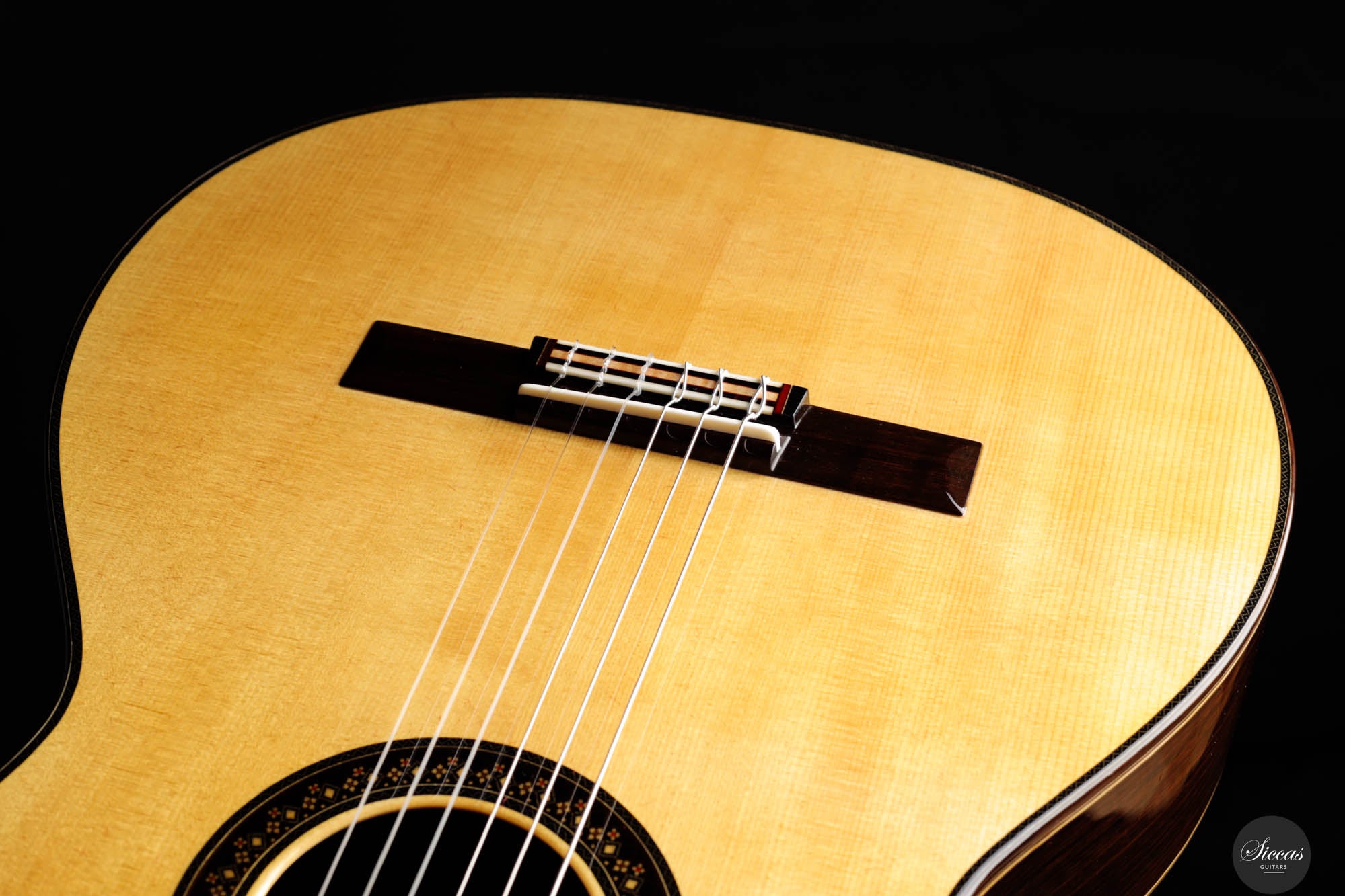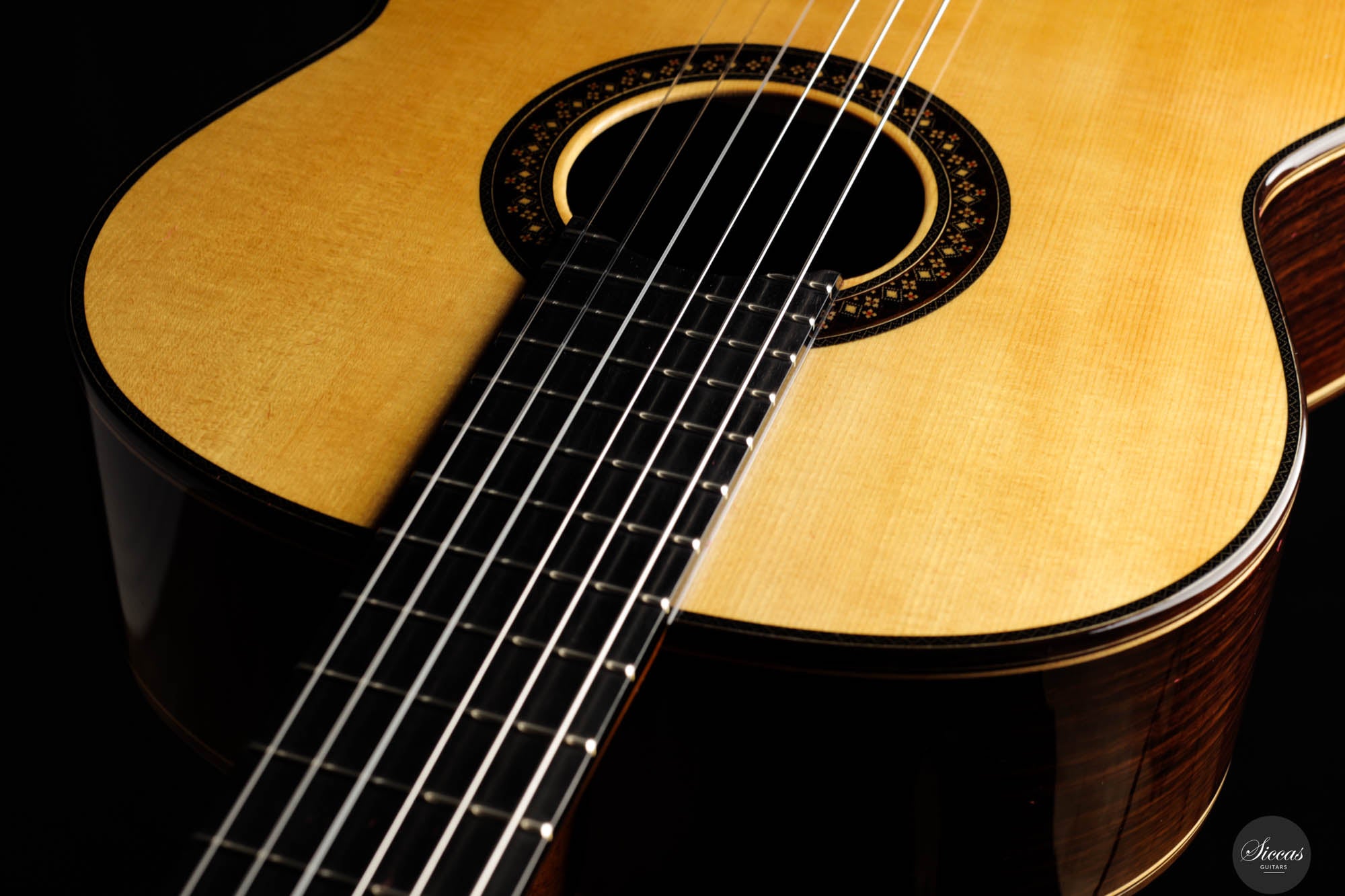 Über seine ästhetische Anziehung hinaus zeichnet sich die "Stella"-Gitarre durch ihre fesselnde Klangqualität aus, die eine bemerkenswerte Balance über alle Register hinweg erreicht. Diese harmonische Stimmgebung, gepaart mit ihrer hervorragenden Bespielbarkeit, macht das Instrument zu einem reinen Vergnügen für jeden Gitarristen. Ob beim Alleinüben oder beim Auftritt vor einem Publikum, das "Stella"-Modell bietet ein Spielgefühl, das sowohl befriedigend als auch inspirierend ist. Seine Kombination aus traditionellen Designelementen, modernem Handwerk und außergewöhnlicher Klangqualität positioniert es als herausragende Wahl für Musiker, die ein Instrument suchen, das den Geist von Masaru Kohnos Erbe verkörpert und gleichzeitig den Komfort und die Bespielbarkeit bietet, die zeitgenössische Spieler fordern.