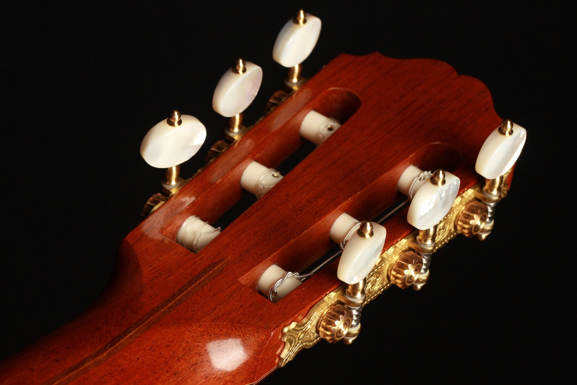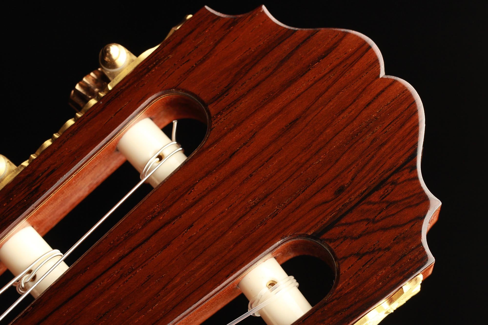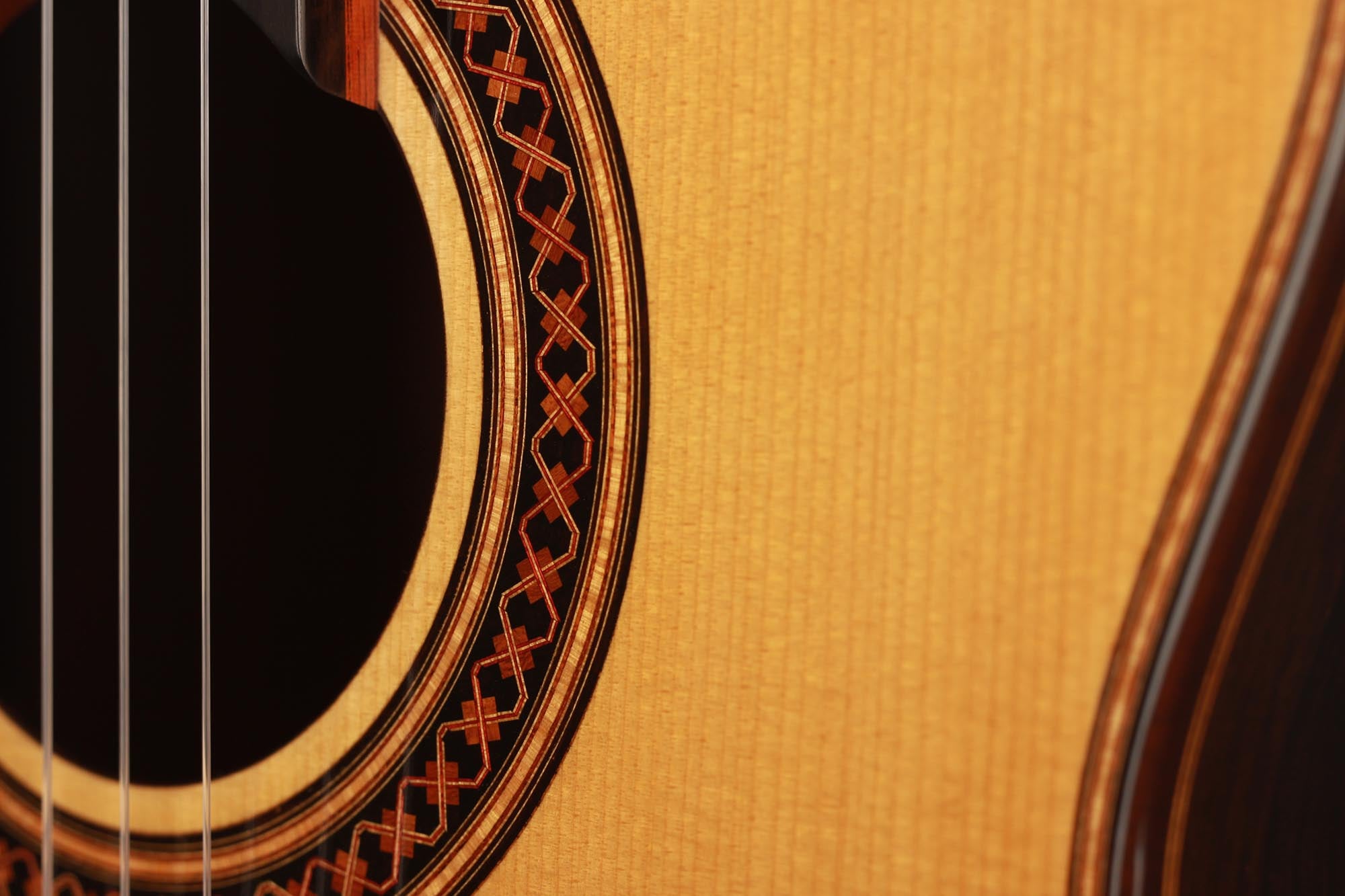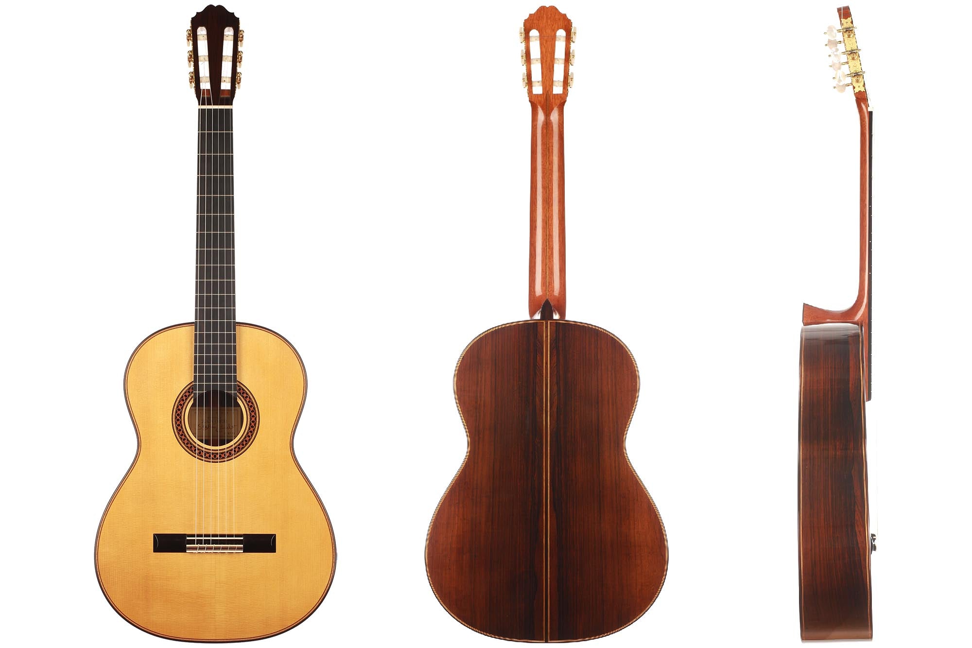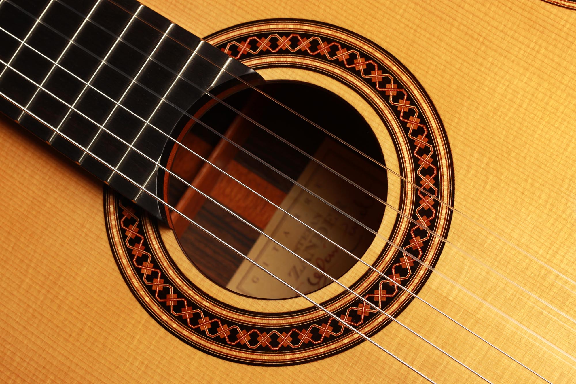 Der Zustand dieses 2015er Instruments ist ausgezeichnet mit nur sehr wenigen Spielspuren. Die traditionelle Beleistung in Kombination mit der Doppel-Decke ergibt einen klaren, großzügigen und vielschichtigen Klang. Es ist ein sehr einfach zu spielendes Instrument und hat eine beeindruckende Lautstärke. Sowohl das Publikum, professionelle Gitarristen als auch ambitionierte Amateurspieler, die eine Gitarre auf höchstem Niveau suchen, werden mit diesem wunderschönen Instrument mehr als zufrieden sein.