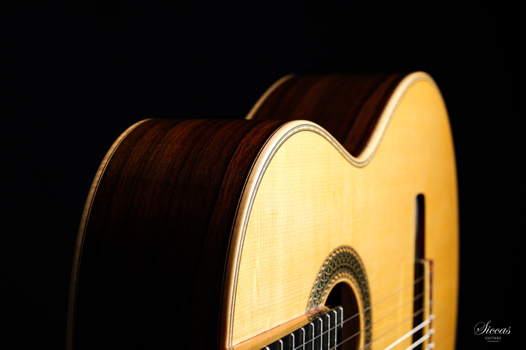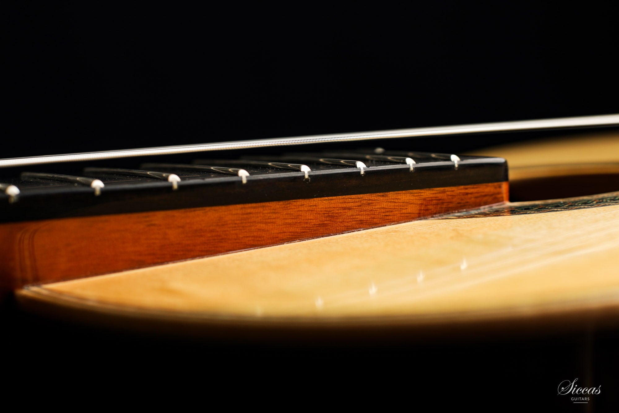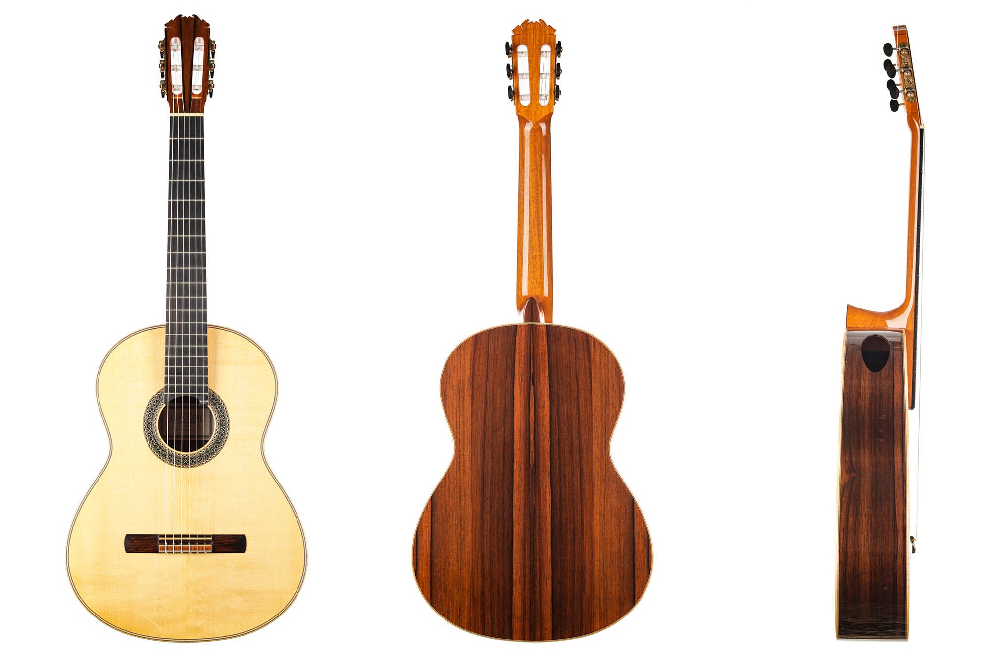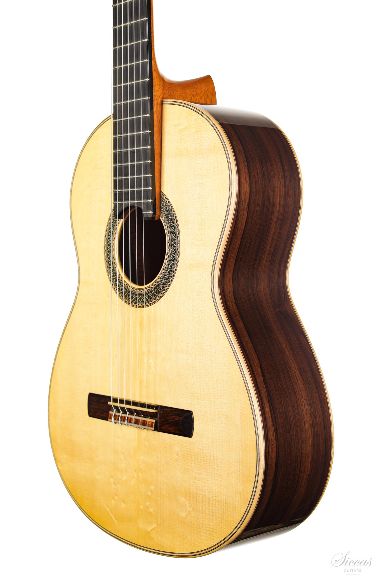 As a guitarist, one feels supported and inspired by this guitar, as it offers a great feeling of freedom to the left hand, and shows a rich powerful sound. Moreover, the notes are both clear and crystalline, yet round with a very pleasant sustain. Its dynamic possibilities are extraordinary, and what an impressive volume it produces. A wide audience, professional guitarists as well as ambitious amateur players seeking for a guitar of the highest level will certainly be satisfied with this beautiful instrument.