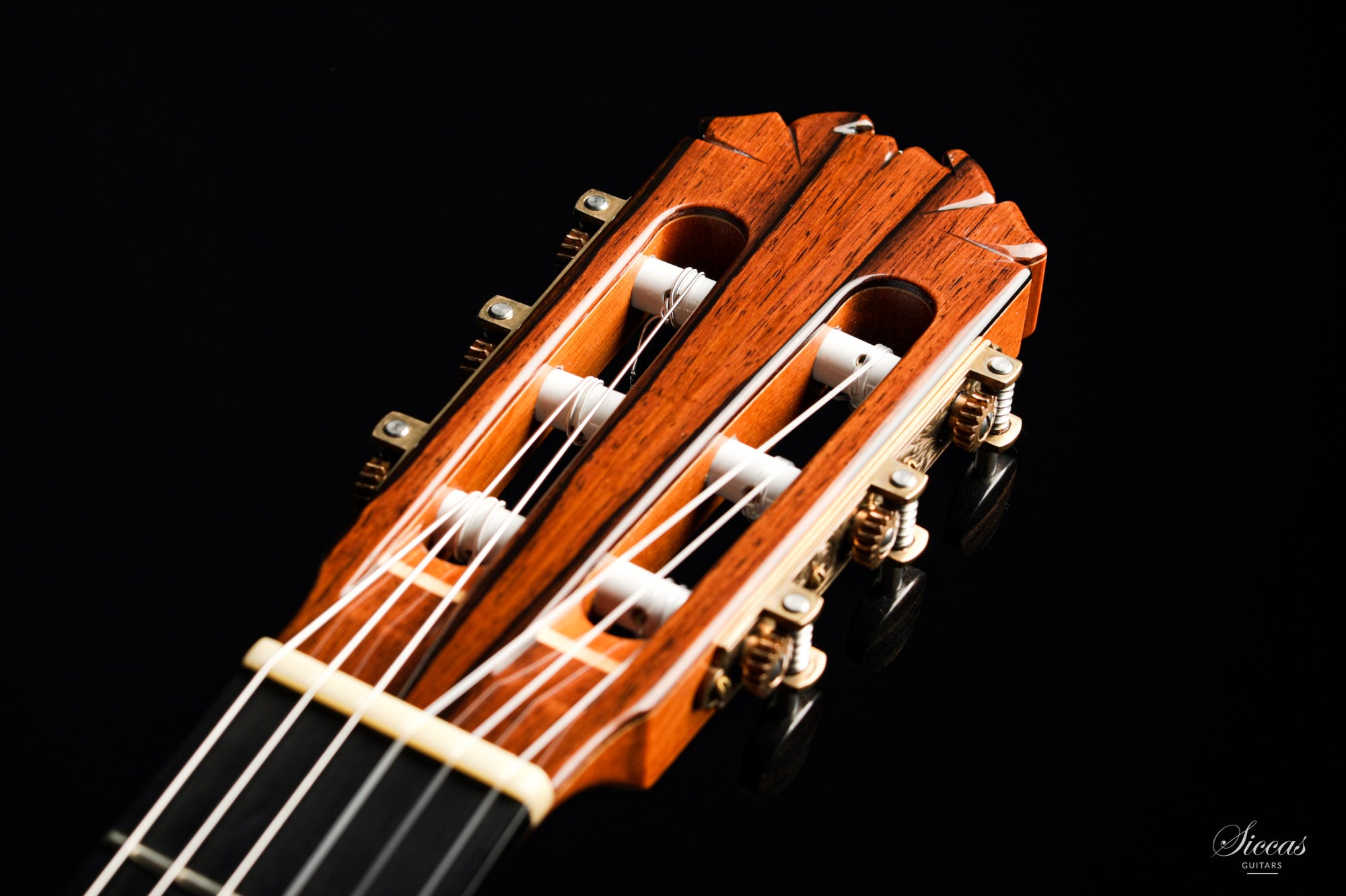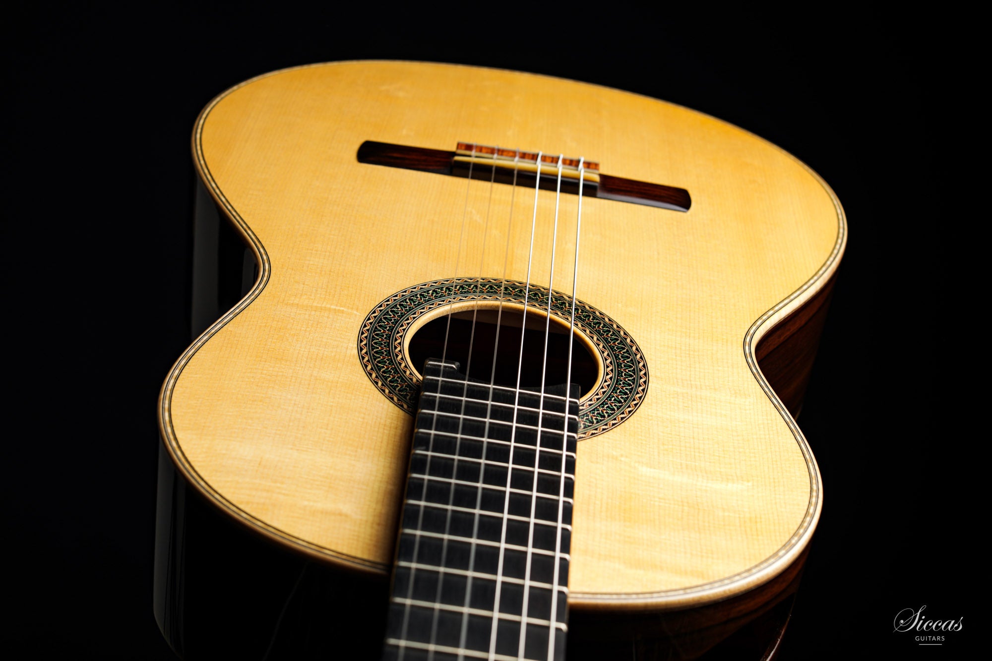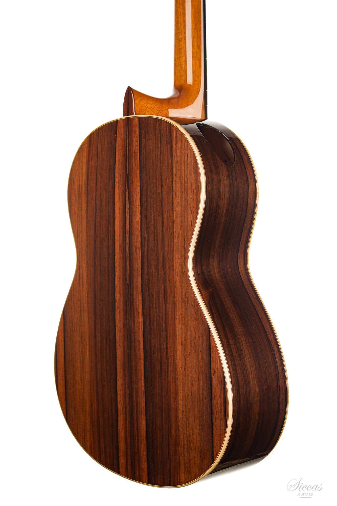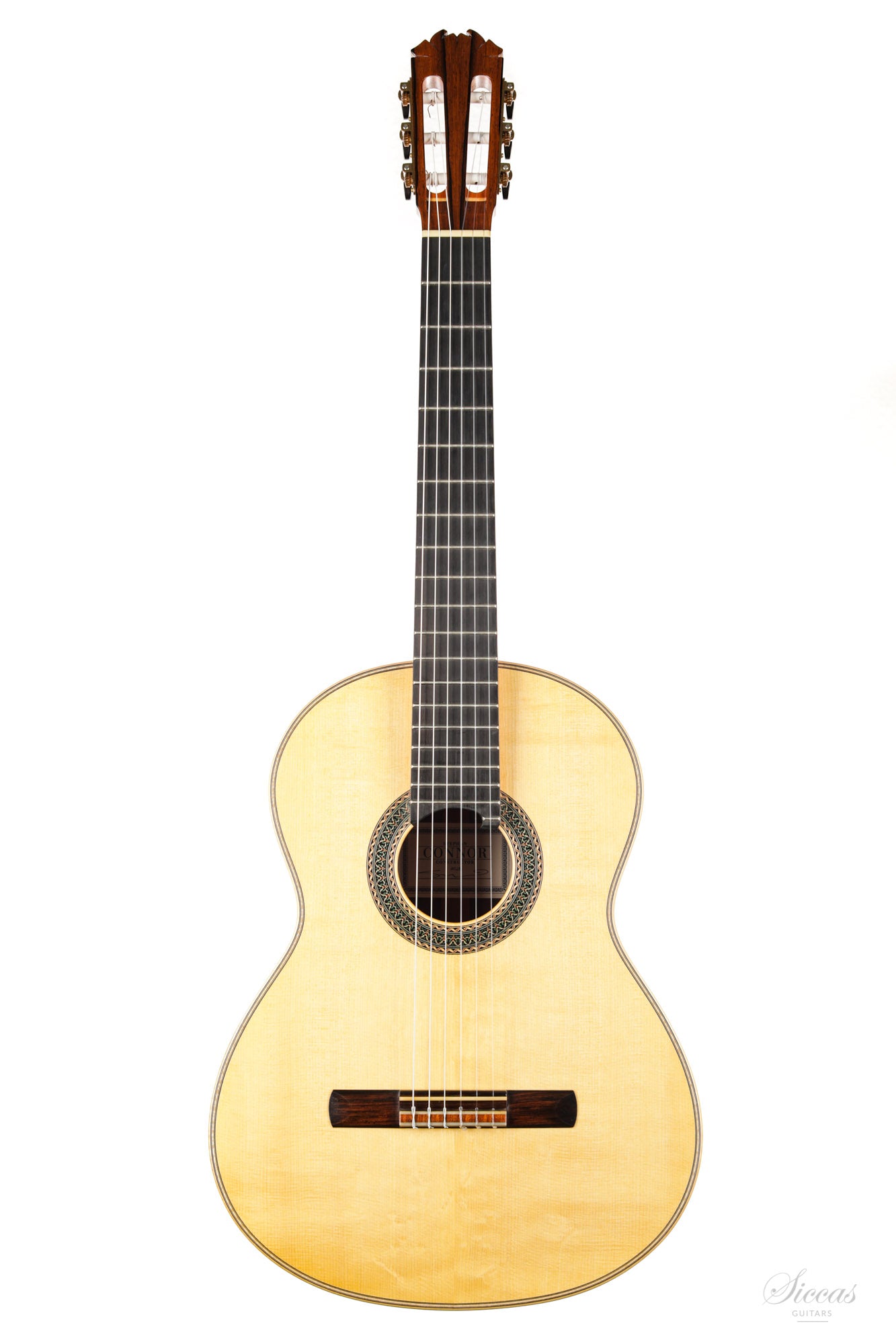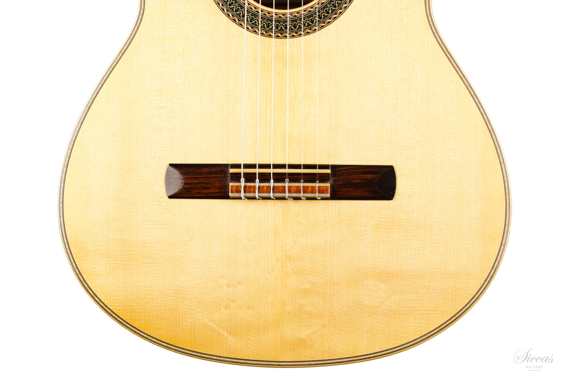 As a guitarist, one feels supported and inspired by this guitar, as it offers a great feeling of freedom to the left hand, and shows a rich powerful sound. Moreover, the notes are both clear and crystalline, yet round with a very pleasant sustain. Its dynamic possibilities are extraordinary, and what an impressive volume it produces. A wide audience, professional guitarists as well as ambitious amateur players seeking for a guitar of the highest level will certainly be satisfied with this beautiful instrument.