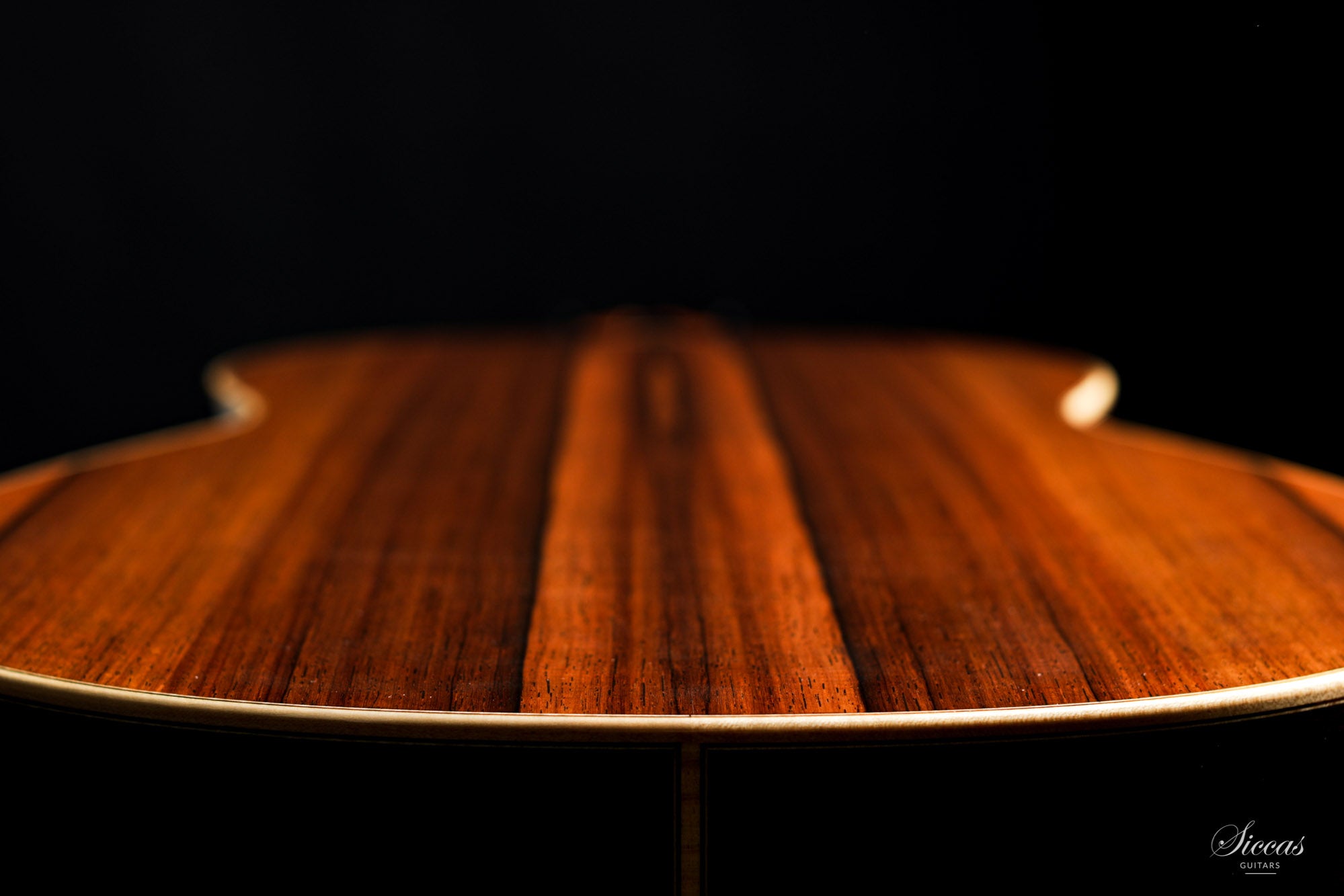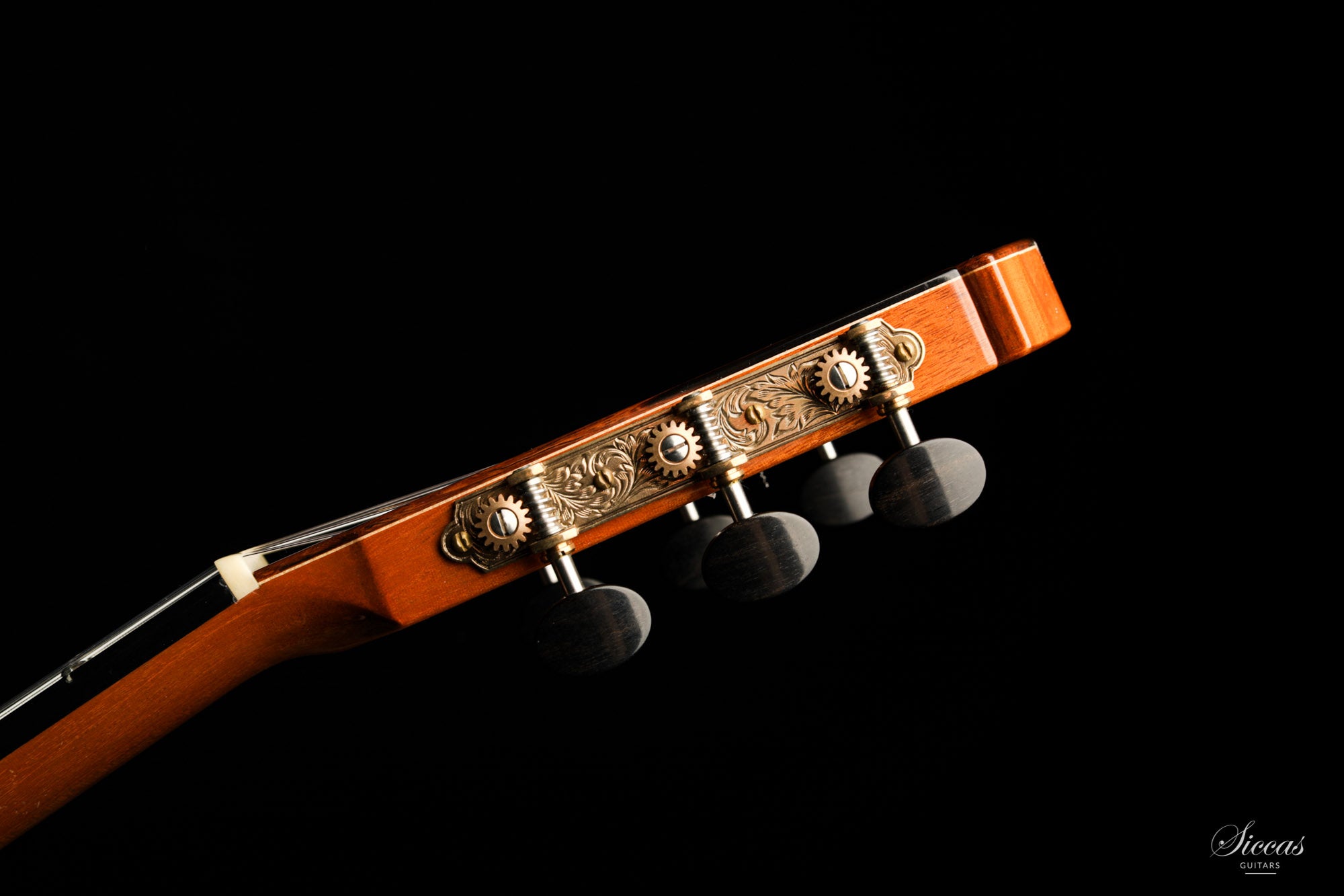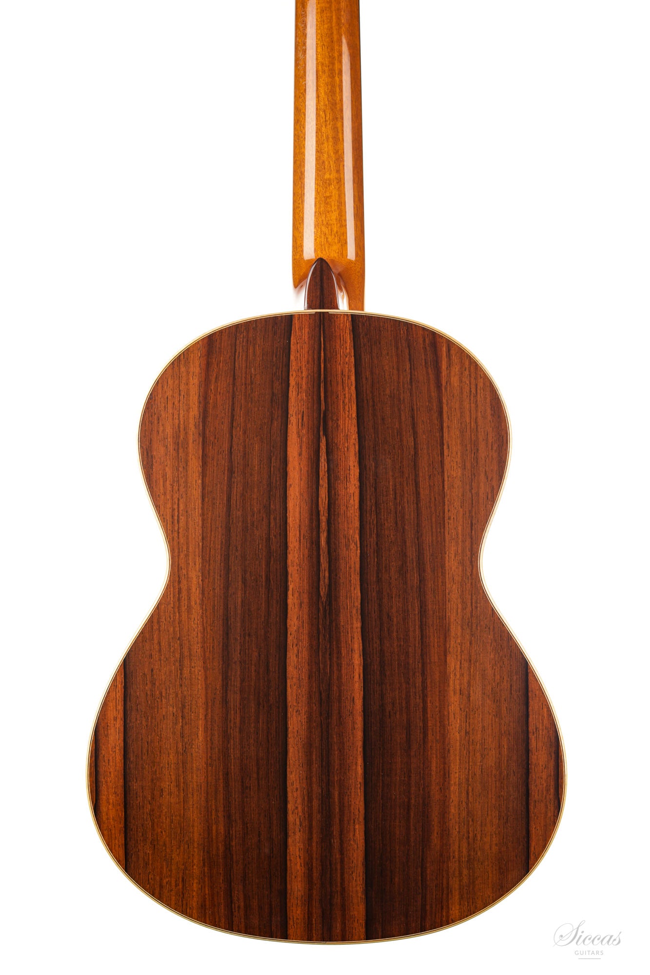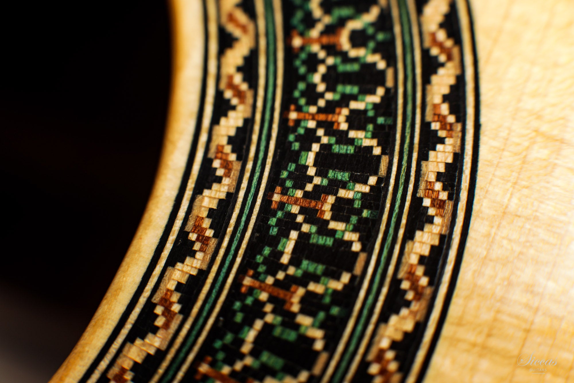 As a guitarist, one feels supported and inspired by this guitar, as it offers a great feeling of freedom to the left hand, and shows a rich powerful sound. Moreover, the notes are both clear and crystalline, yet round with a very pleasant sustain. Its dynamic possibilities are extraordinary, and what an impressive volume it produces. A wide audience, professional guitarists as well as ambitious amateur players seeking for a guitar of the highest level will certainly be satisfied with this beautiful instrument.