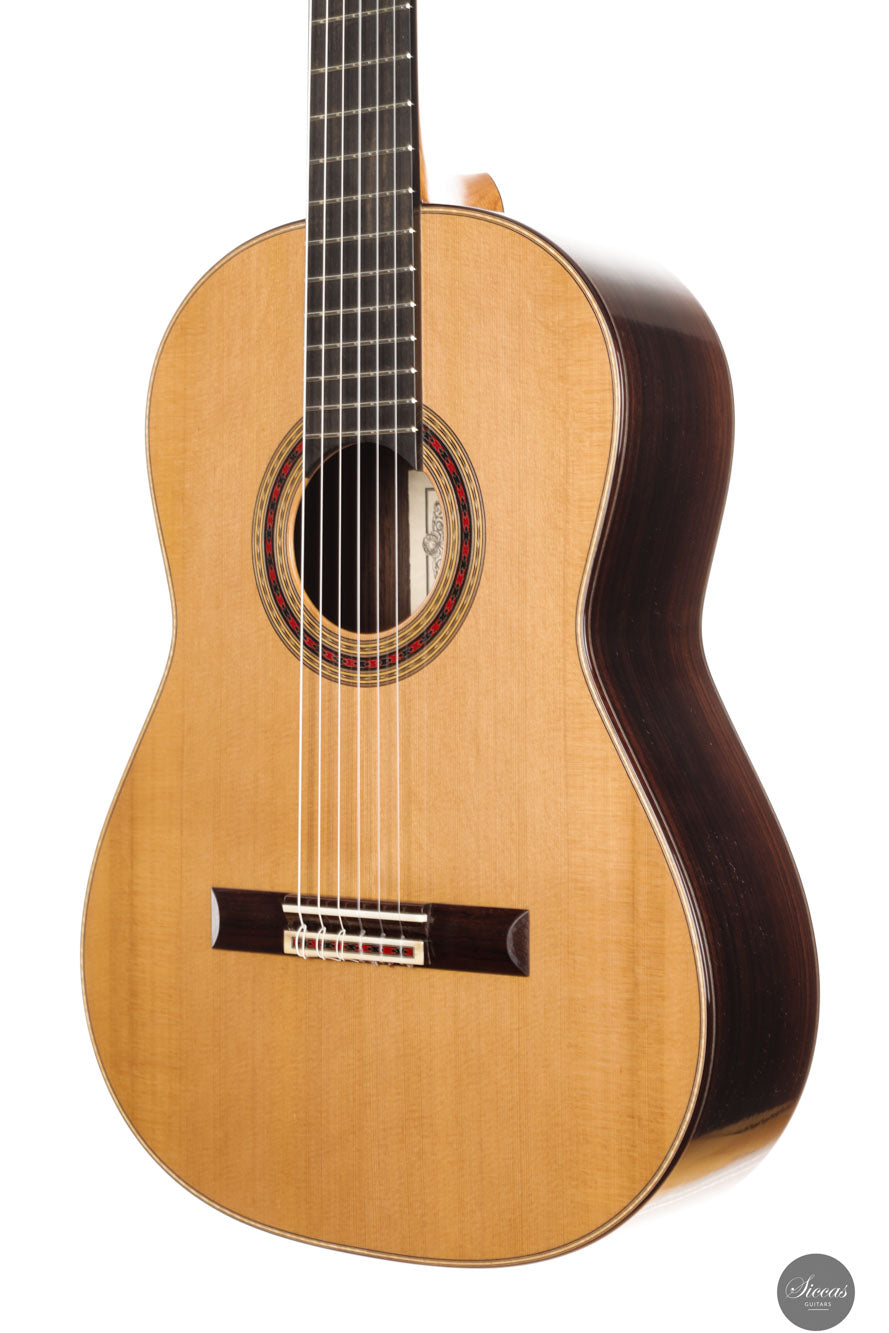 Die Diskantsaiten dieser Gitarre sind komplex und lyrisch und verbinden sich harmonisch mit den tiefen, samtigen Bässen zu einem Klang, der sowohl reichhaltig als auch nuanciert ist. Mit ihrem breiten Dynamikbereich und ihrer ausdrucksstarken Klangtreue ist dieses Instrument eine außergewöhnliche Wahl für Konzertgitarristen, die eine Gitarre suchen, die unvergleichliche Musikalität und emotionale Tiefe bietet.