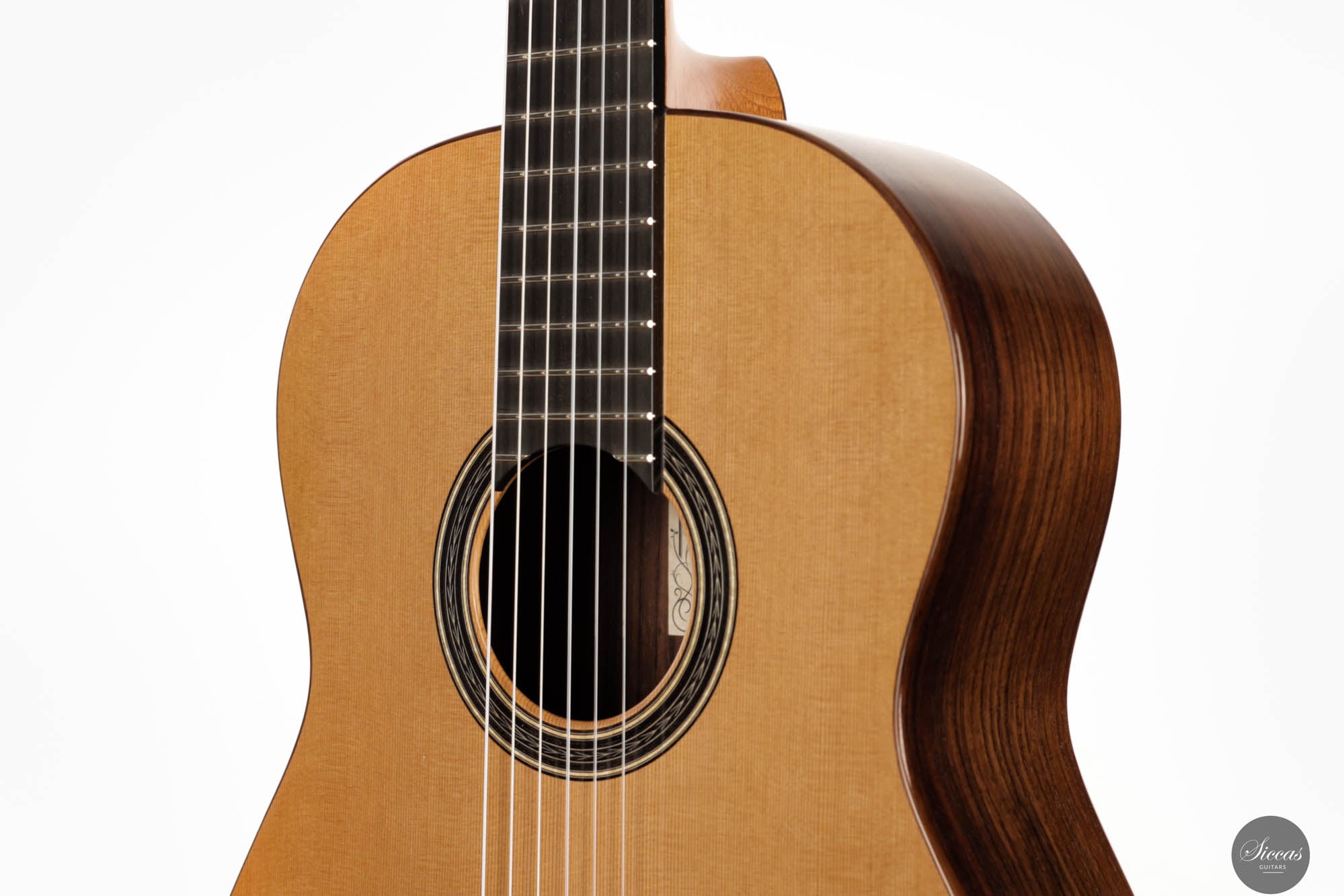 Das Cadenza-Modell zeichnet sich als bahnbrechende Lösung im Bereich der konzertqualitätsfähigen Gitarren aus und schafft die perfekte Balance zwischen Erschwinglichkeit und Leistung. Dieses Modell ist ein gezielter Versuch, den Zugang zu hochwertigen Instrumenten zu demokratisieren, wobei der Schwerpunkt darauf liegt, außergewöhnliche Klangqualität und Bespielbarkeit zu liefern, während kostspielige dekorative Merkmale, die nicht zur Musikalität der Gitarre beitragen, vermieden werden. Indem es die Gestaltungsprinzipien und Bauweisen verwendet, die bei Standard-Konzertmodellen zum Einsatz kommen, verwendet das Cadenza dieselben hochwertigen Hölzer und Handwerkskunst und stellt sicher, dass die Spieler ein Instrument von unverminderter Qualität erhalten. Ursprünglich entworfen, um talentierten Studenten, die eine professionelle Gitarre ohne den hohen Preis benötigen, zu unterstützen, hat das Cadenza die Erwartungen übertroffen und sich nicht nur als eine Einsteigeroption, sondern als ein echtes Konzertinstrument bewiesen, das den Anforderungen professioneller Aufführungen gerecht werden kann.