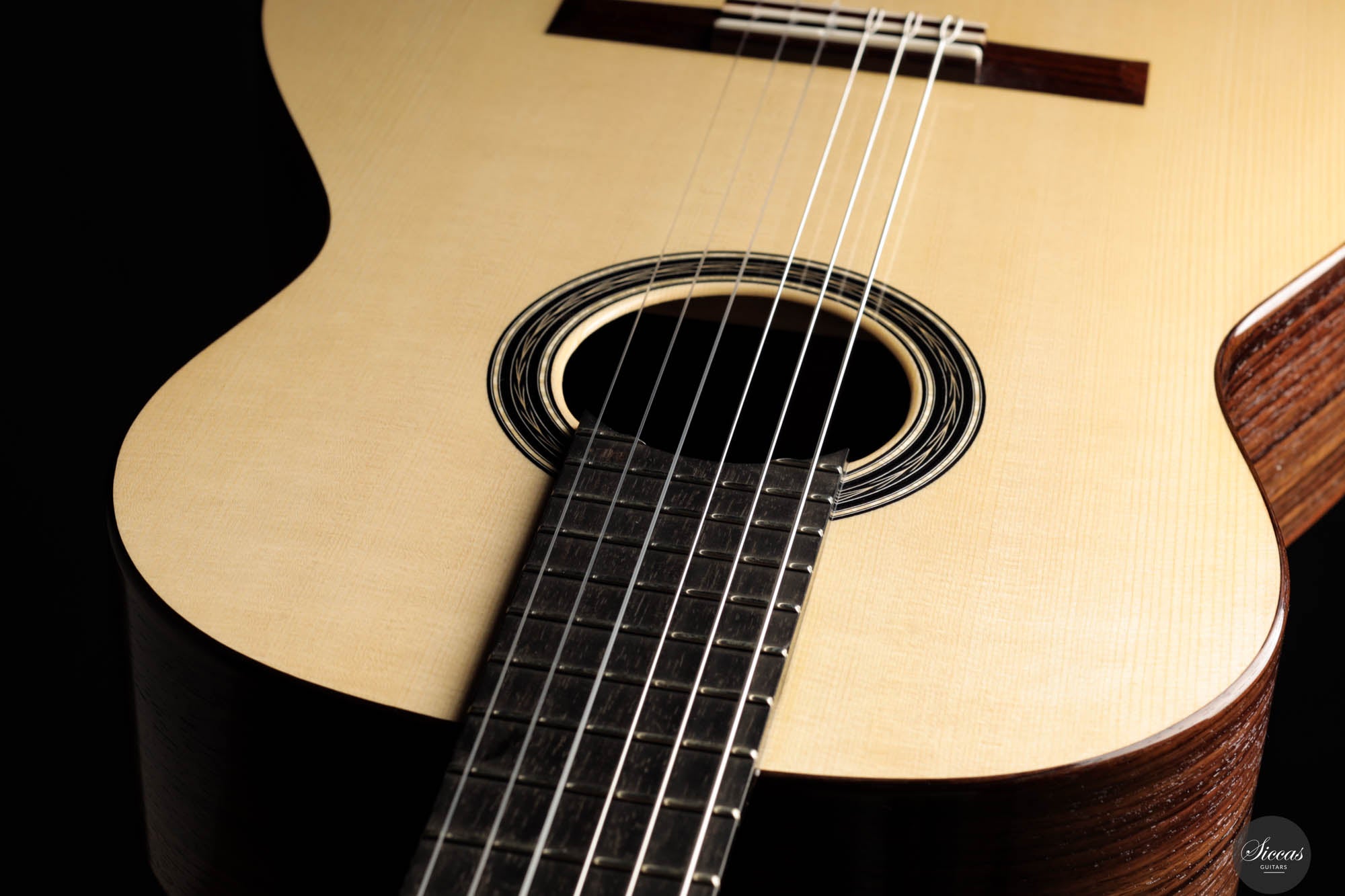 The Cadenza model emerges as a groundbreaking solution in the realm of concert-quality guitars, striking a perfect balance between affordability and performance. This model is a deliberate effort to democratize access to high-calibre instruments, focusing on delivering exceptional sound quality and playability while eschewing costly decorative features that do not contribute to the musicality of the guitar. By adhering to the design principles and construction techniques used in standard concert models, the Cadenza employs the same superior woods and craftsmanship, ensuring that players receive an instrument of uncompromised quality. Initially designed to support talented students in need of a professional-grade guitar without the steep price, the Cadenza has exceeded expectations, distinguishing itself not merely as an entry-level option but as a genuine concert instrument capable of standing up to the demands of professional performance.
