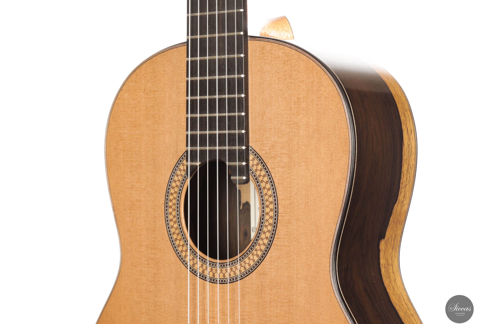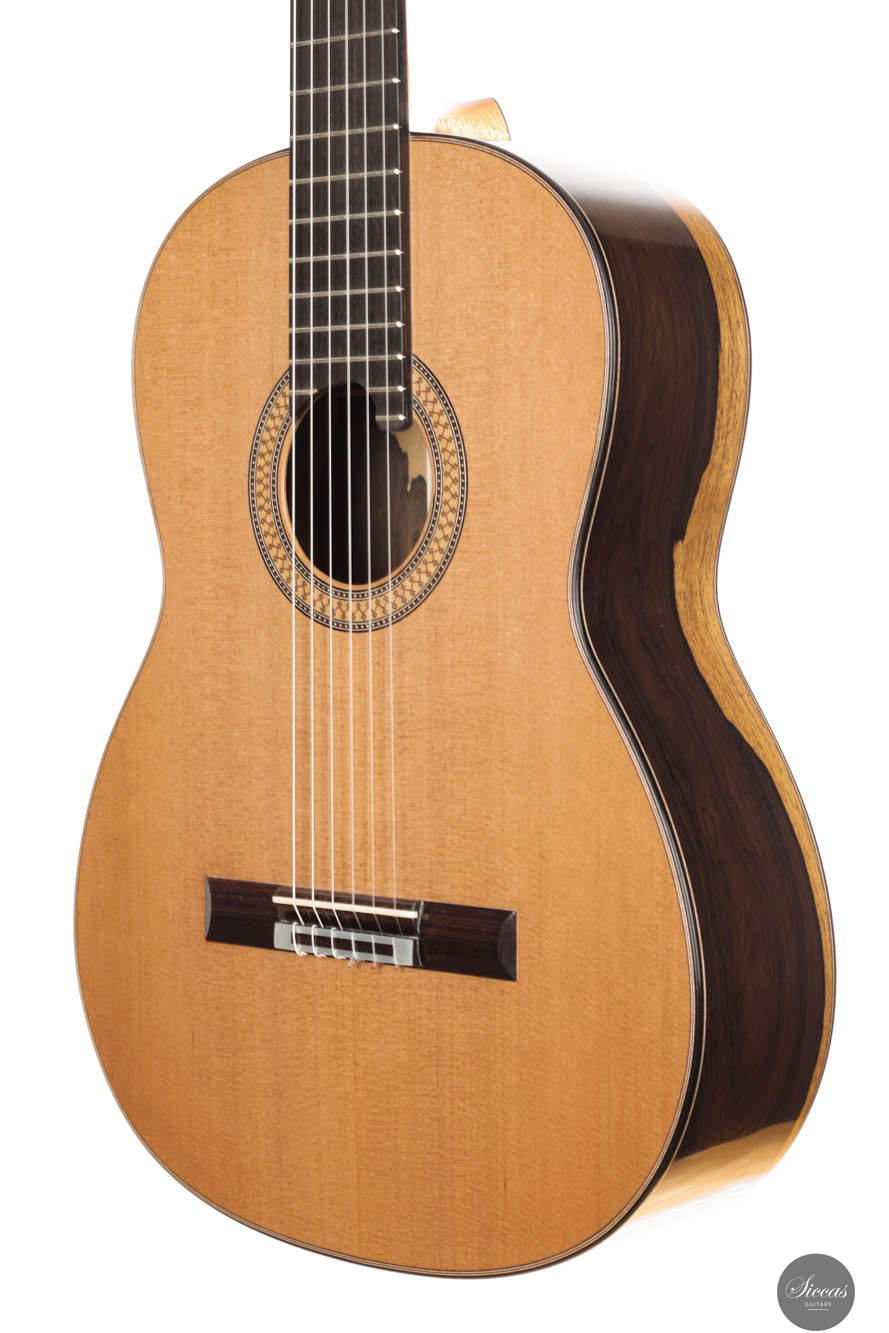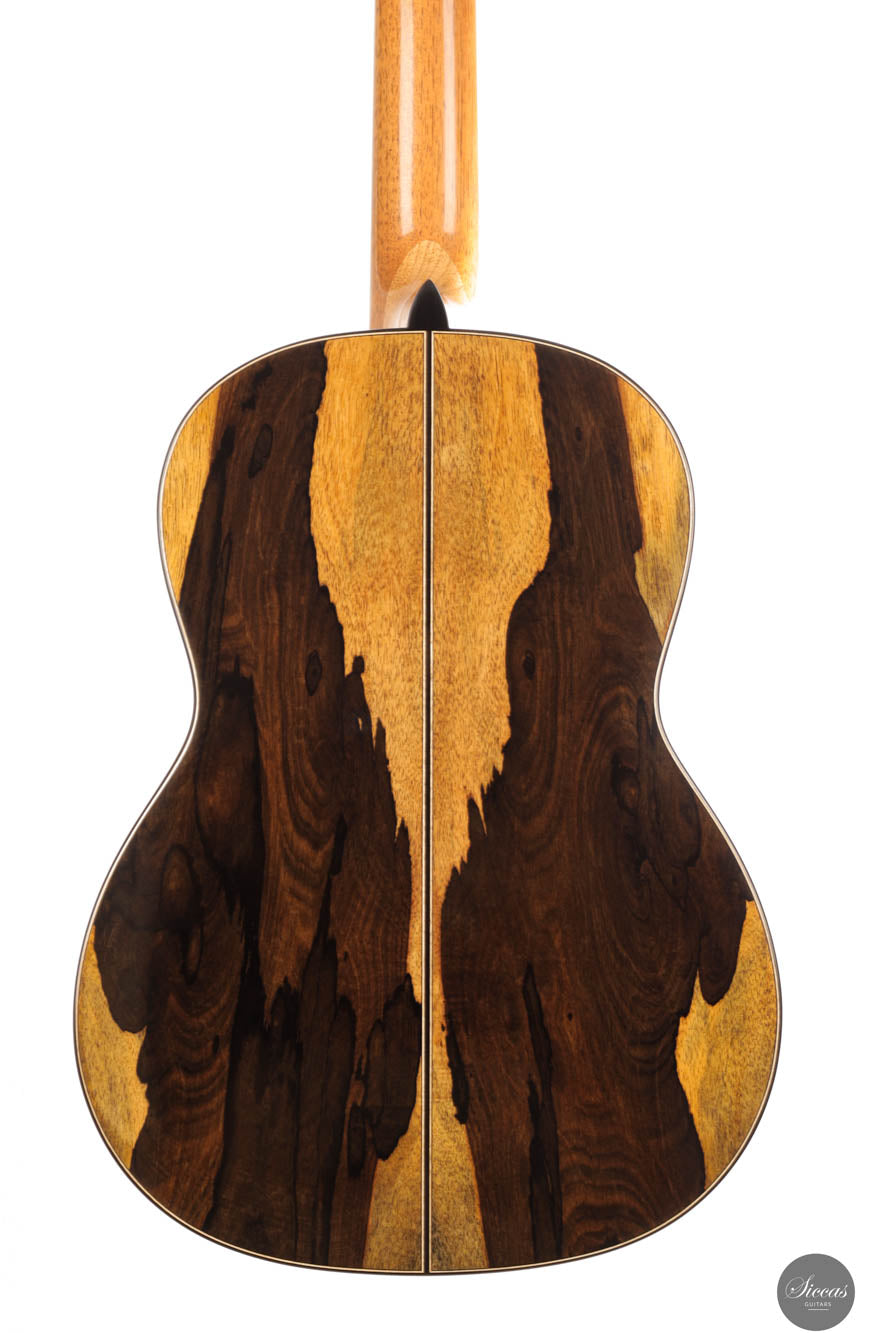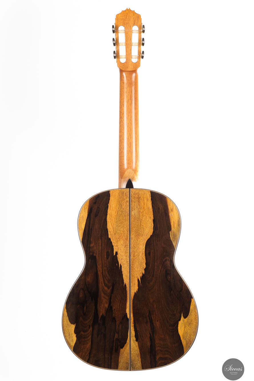 Diese außergewöhnliche Gitarre wurde speziell für den Erstplatzierten des Andrés-Segovia-Gitarrenwettbewerbs 2023 gefertigt, der überraschenderweise Linkshänder war. Obwohl sie im Jahr 2023 gebaut wurde, ist die Gitarre praktisch neuwertig. Als traditionell konstruierte Gitarre verkörpert sie die kraftvollen, unverwechselbaren Merkmale südspanischer Gitarren. Die Zedernholzdecke verleiht ihr eine warme, klangvolle Charakteristik, während der atemberaubende Ziricote-Korpus nicht nur optisch beeindruckt, sondern auch erstklassige klangliche Eigenschaften bietet. Diese Gitarre ist ein leistungsstarkes Konzertinstrument, das sich für jede Spielsituation eignet und gleichzeitig den authentischen Charme und Geist einer klassischen spanischen Gitarre bewahrt.