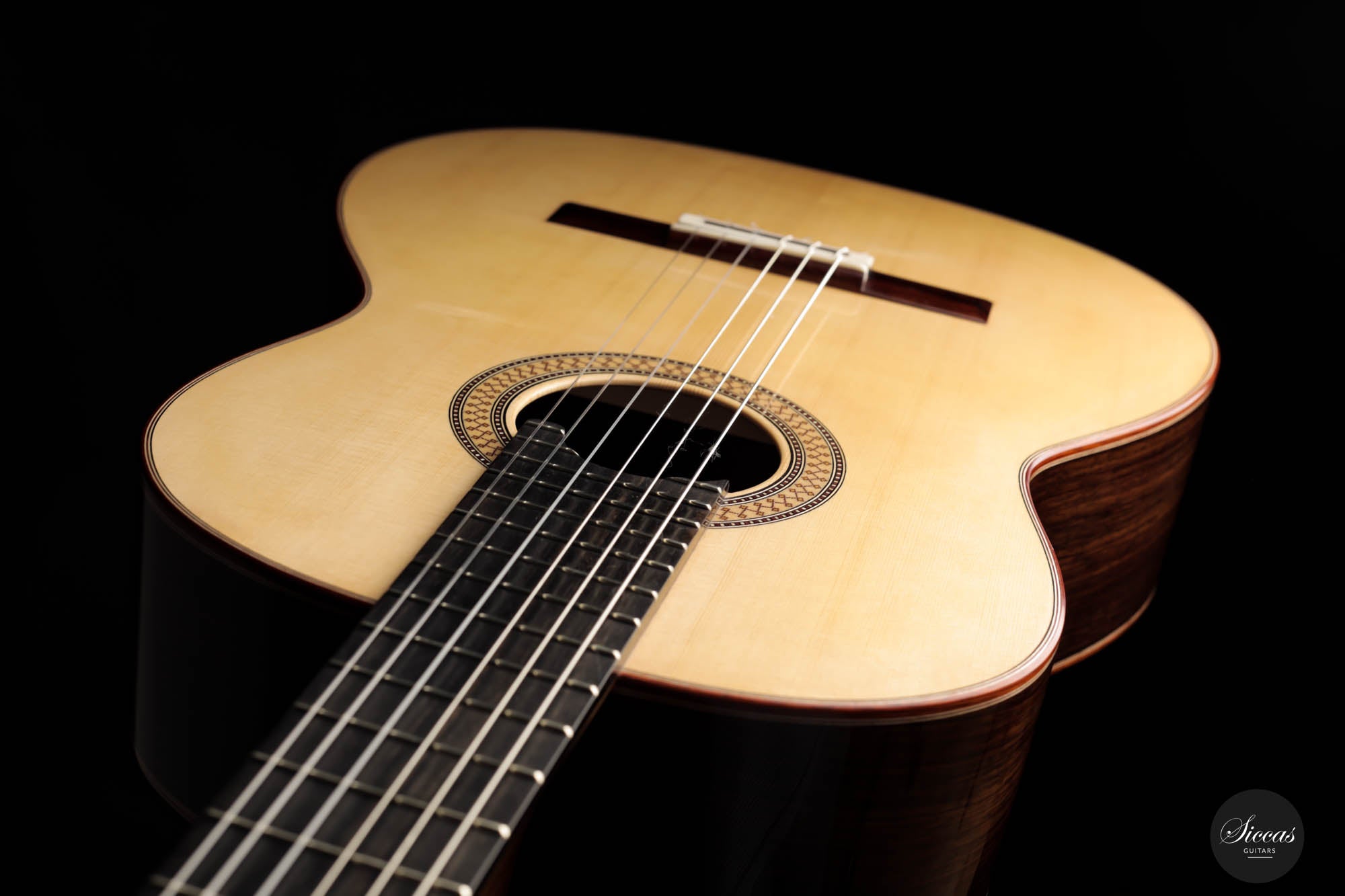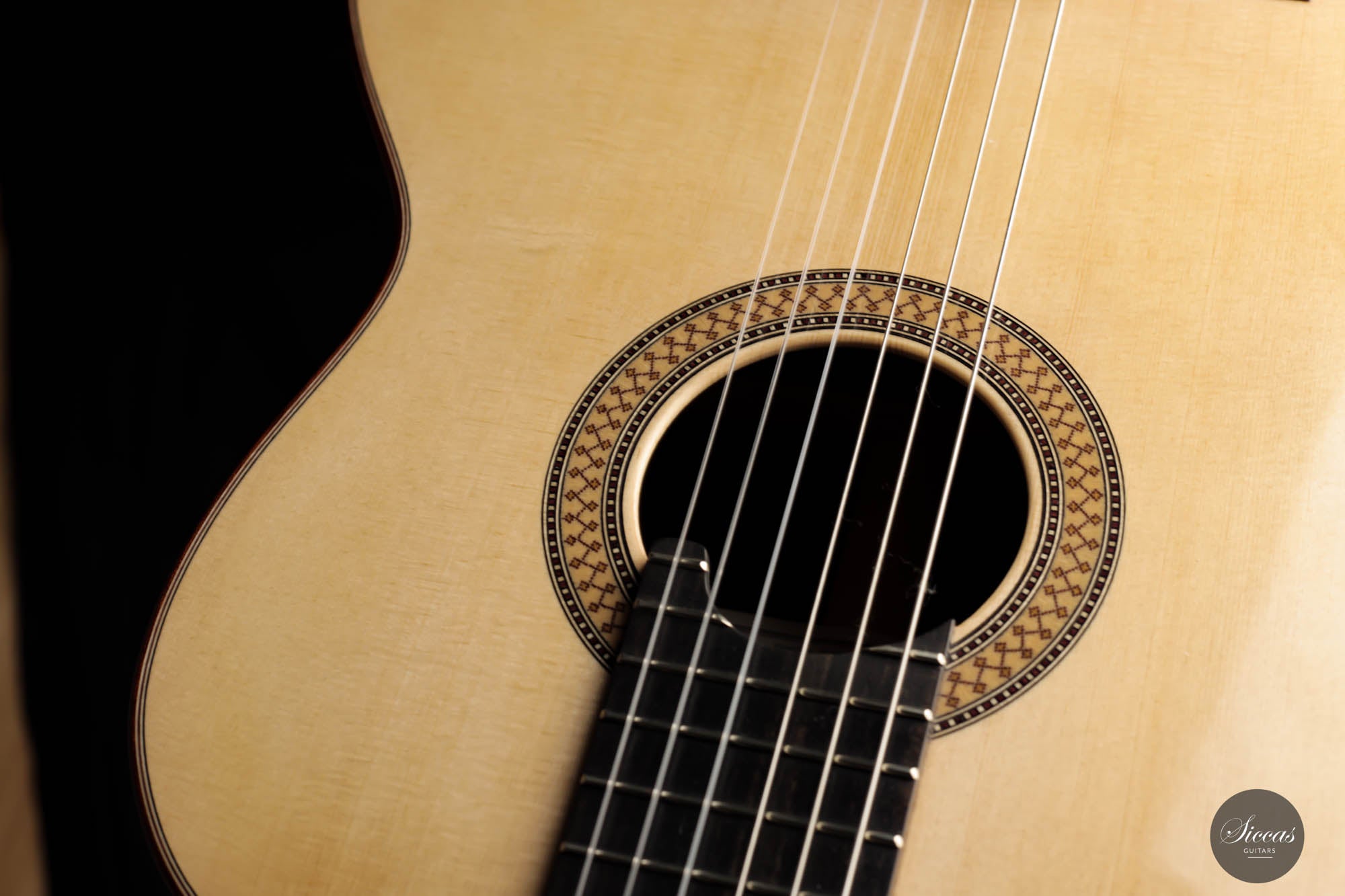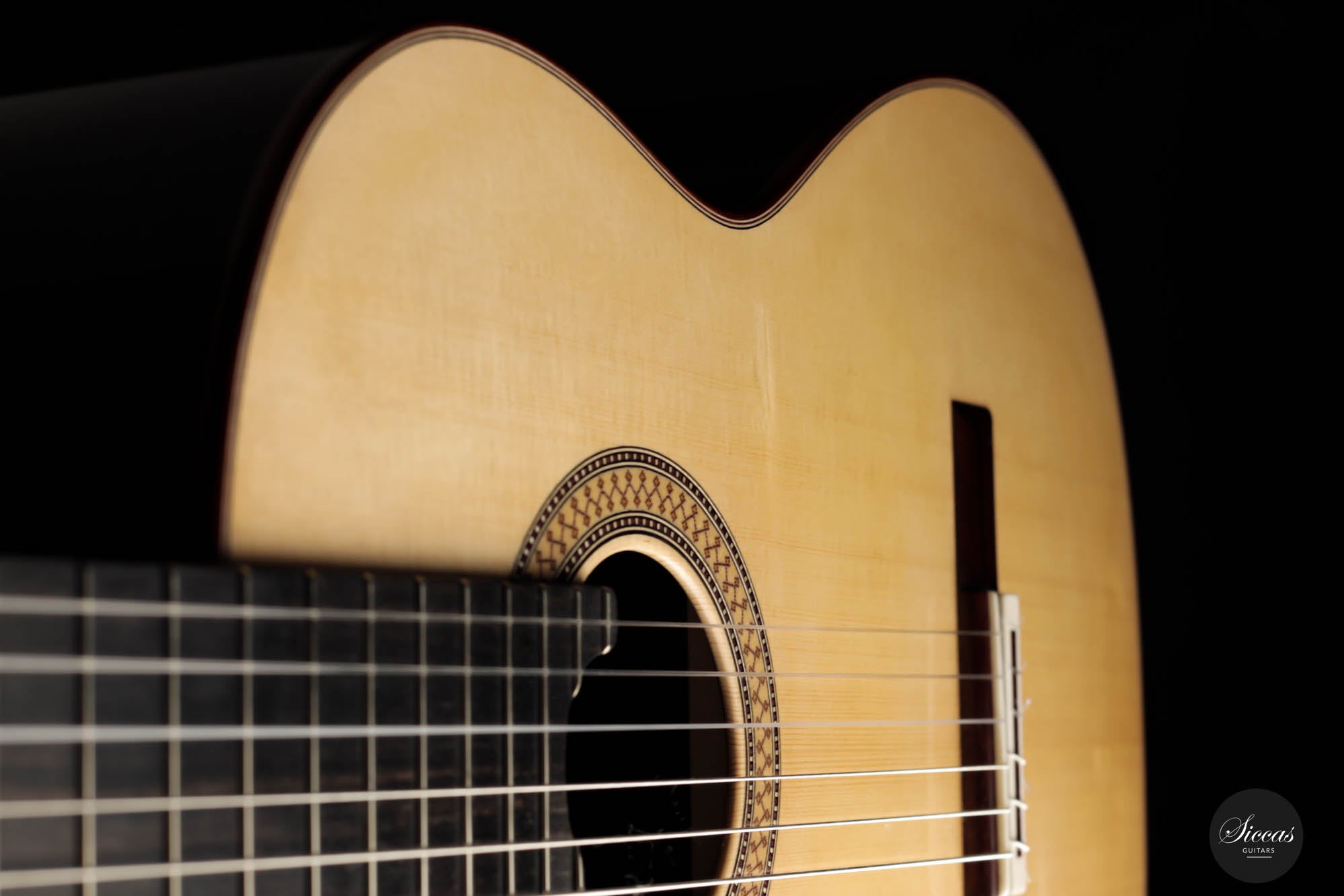 Stephen Hill is an English guitar maker based in Granada, Spain. In his inspiring career, he evolved from a talented flamenco guitarist to one of the most exciting and best builders of Spanish guitars on the market today. His inspiration came from legendary guitar makers and legendary guitarists with whom he built close relationships and friendships. Among others, one can mention Antonio Marin Montero, Paco Pena, Manuel Reyes, etc. Stephen Hill crafts fantastic Spanish guitars but shares his passion and knowledge with some talented students, from whom we have also received some very skillfully worked guitars.