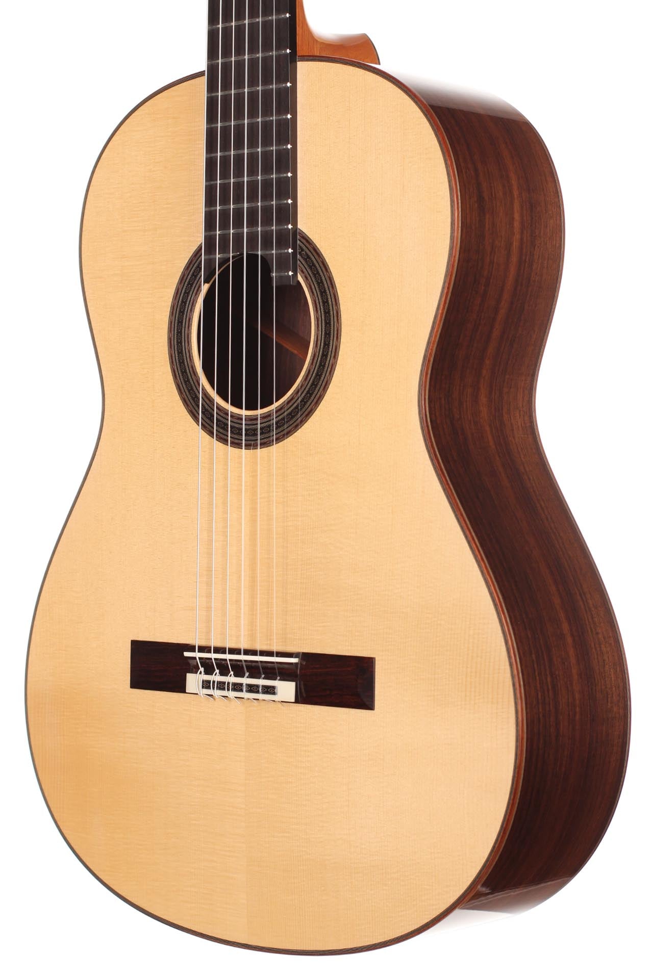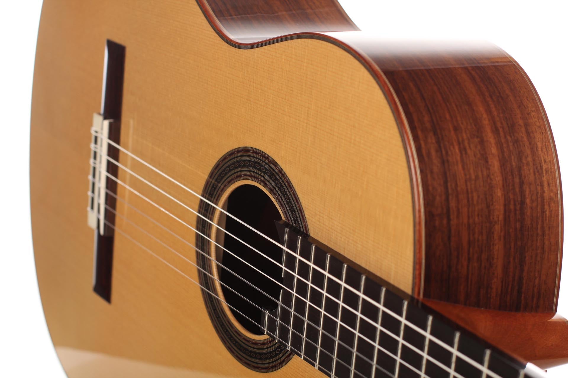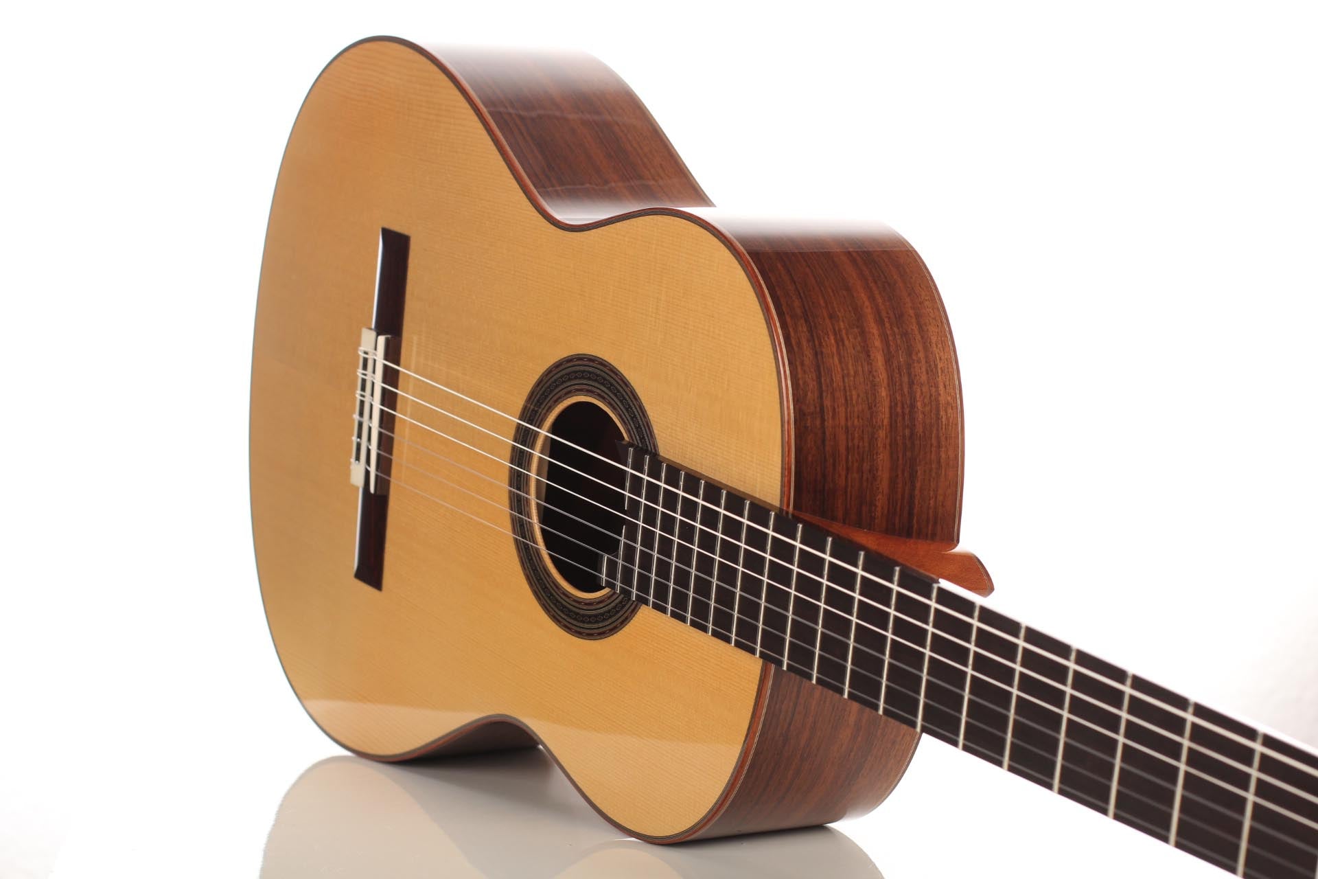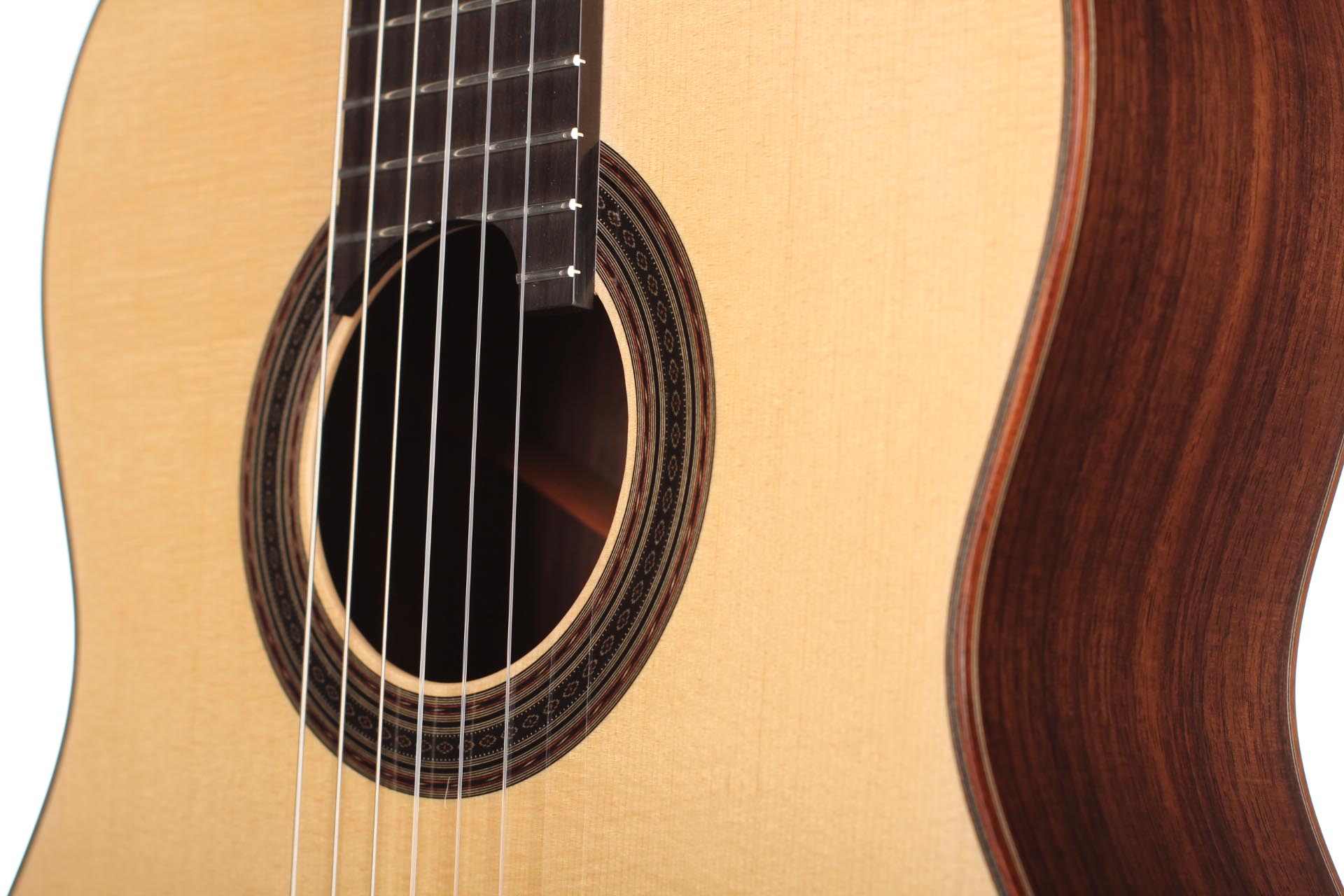 Die klassische Gitarre mit ihren weichen Nylonsaiten und ihrem charakteristischen Timbre ist zum Symbol der Kammermusik, der spanischen Tradition und des Konzertrepertoires geworden. Ihre moderne Form prägte Antonio de Torres im 19. Jahrhundert, indem er den Standard für Korpus, Fächerbeleistung und die 65-Zentimeter-Mensur setzte, die bis heute verwendet werden. Instrumente dieser Kategorie eröffnen eine reiche Palette von den feinen romantischen Miniaturen Tárregas bis zu den majestätischen Konzerten Rodrigos. Hier finden Sie Gitarren, die historische Kontinuität bewahren und zugleich zu neuen Interpretationen anregen.