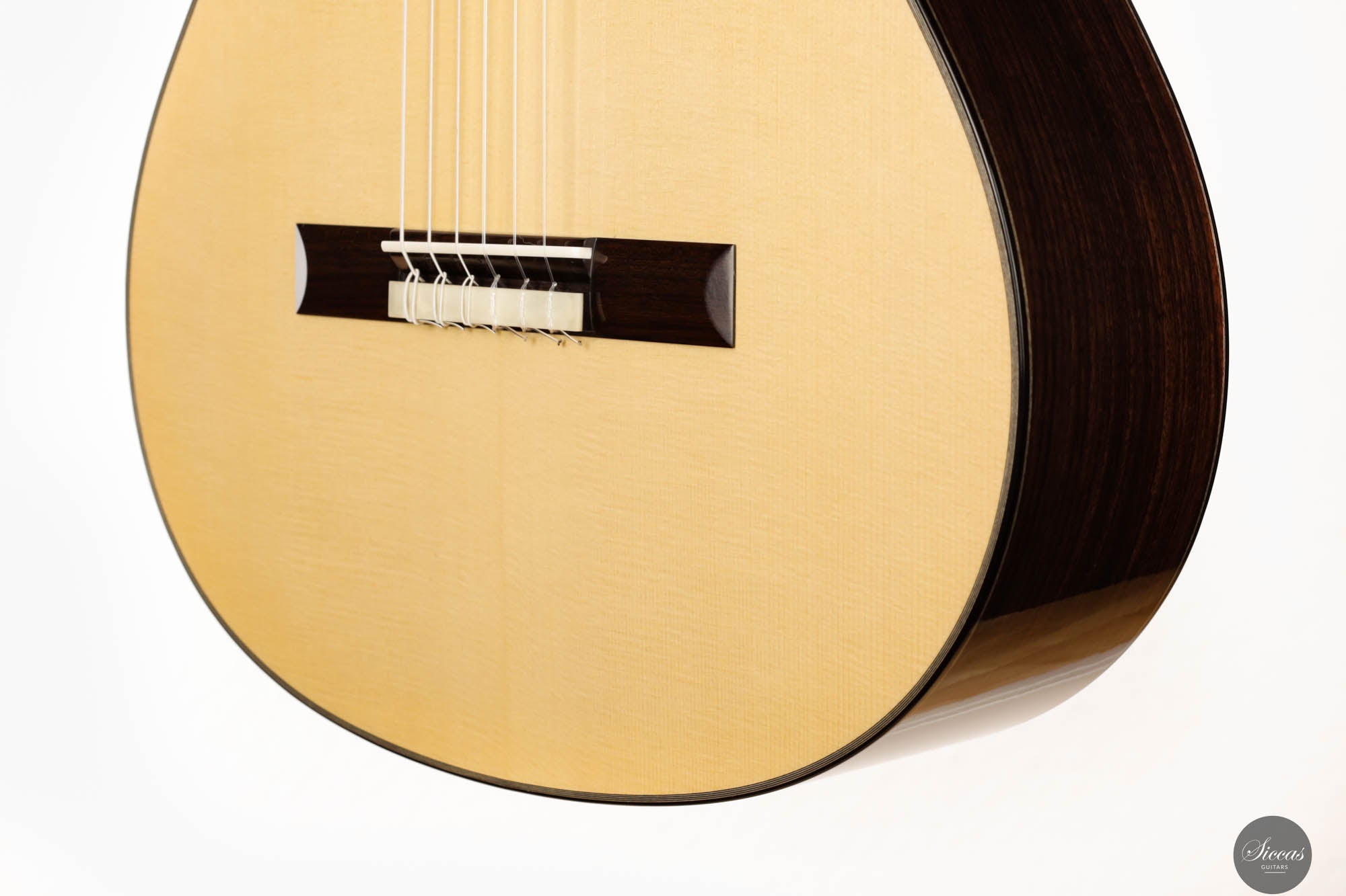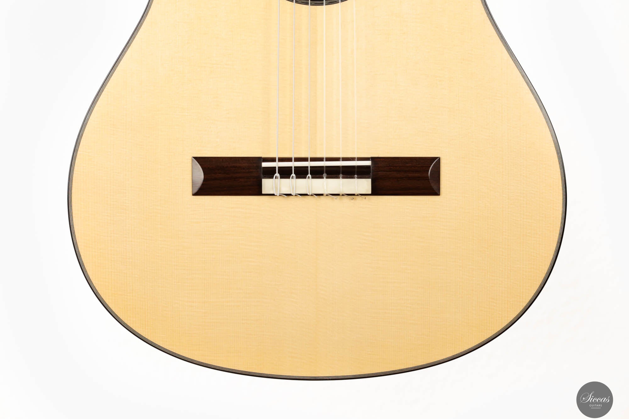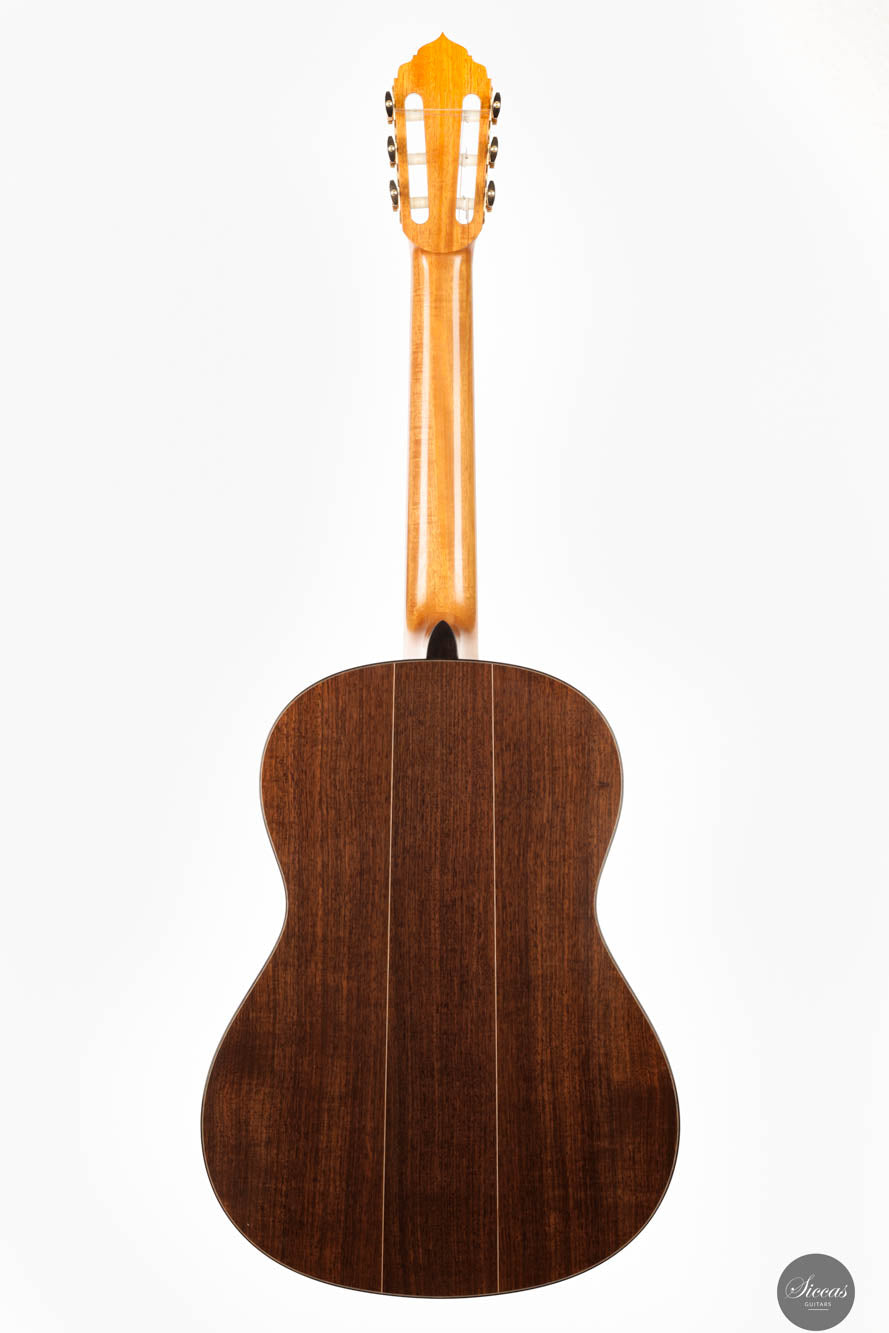 Auf akustischer Ebene liefert Sylvains Gitarre die für ein Konzertinstrument essentiellen Qualitäten: reichliches Volumen, leichte Spielbarkeit und ein ausgewogenes Klangprofil. Diese Attribute machen die Gitarre für Musiker verschiedener Fähigkeitsstufen zugänglich und genießbar. Bemerkenswert ist auch, dass Sylvain Bünde aus rostfreiem Stahl verwendet, um die hohen Obertöne zu verstärken und eine lange Lebensdauer zu gewährleisten, die die traditionellen Bundmaterialien in Bezug auf die Härte deutlich übertrifft. Sie repräsentiert eine Fortsetzung der französischen Tradition im Gitarrenbau, indem sie klassische Ansätze mit zeitgenössischem Design und Klangüberlegungen verbindet. Sylvains Arbeit an dieser Gitarre unterstreicht die anhaltende Evolution des französischen Gitarrenbaus, wo Tradition und Innovation zusammenkommen, um Instrumente von außergewöhnlicher Qualität und Charakter zu produzieren.