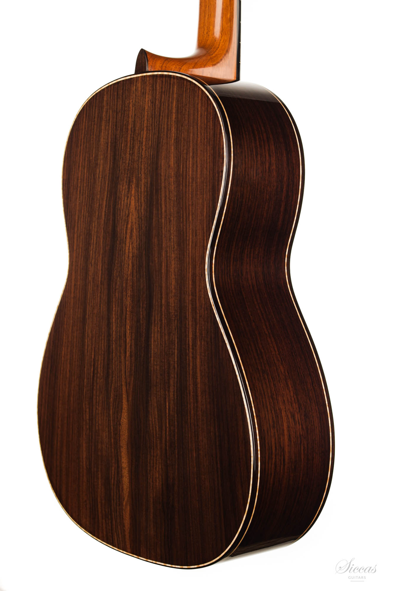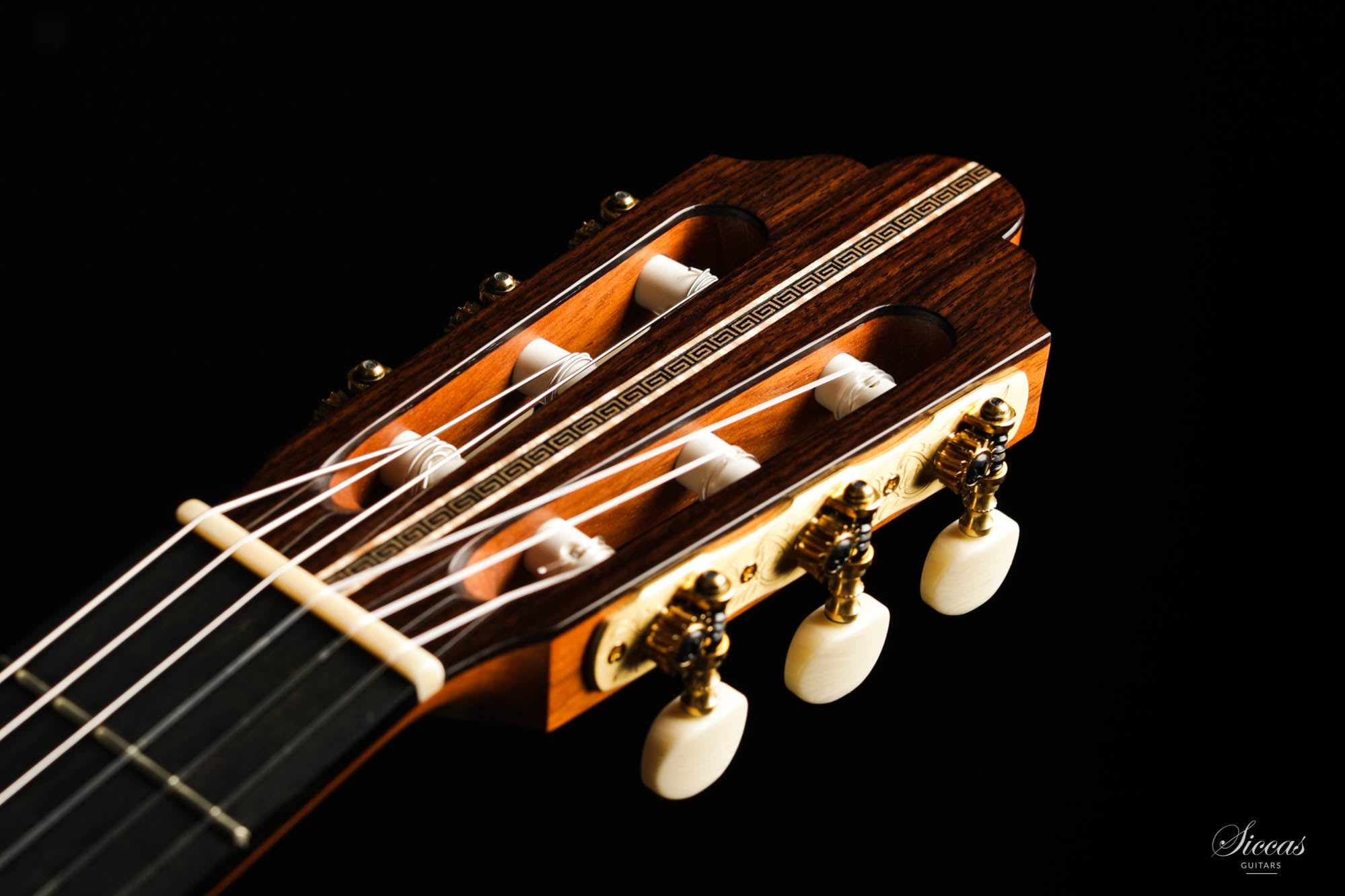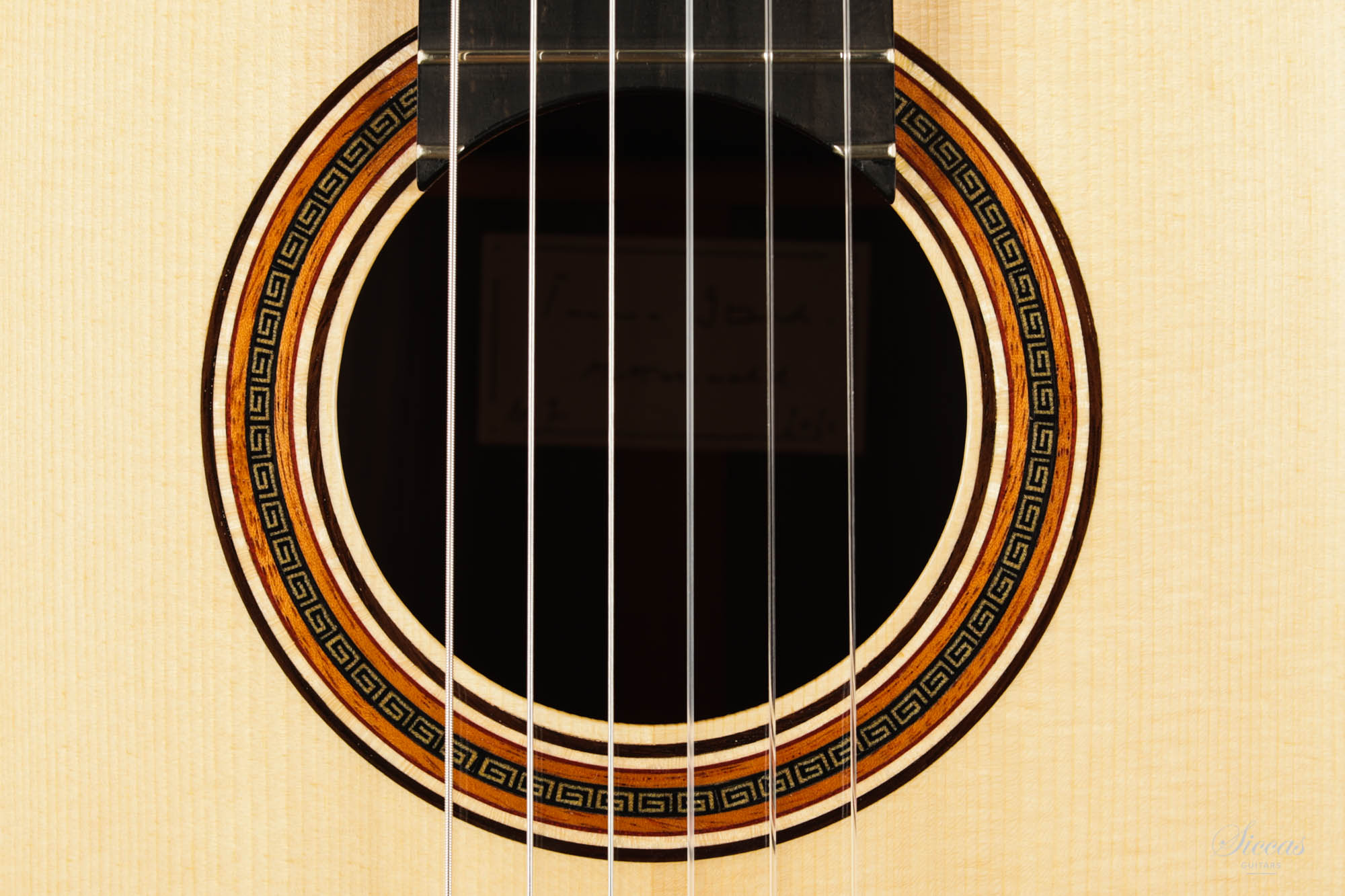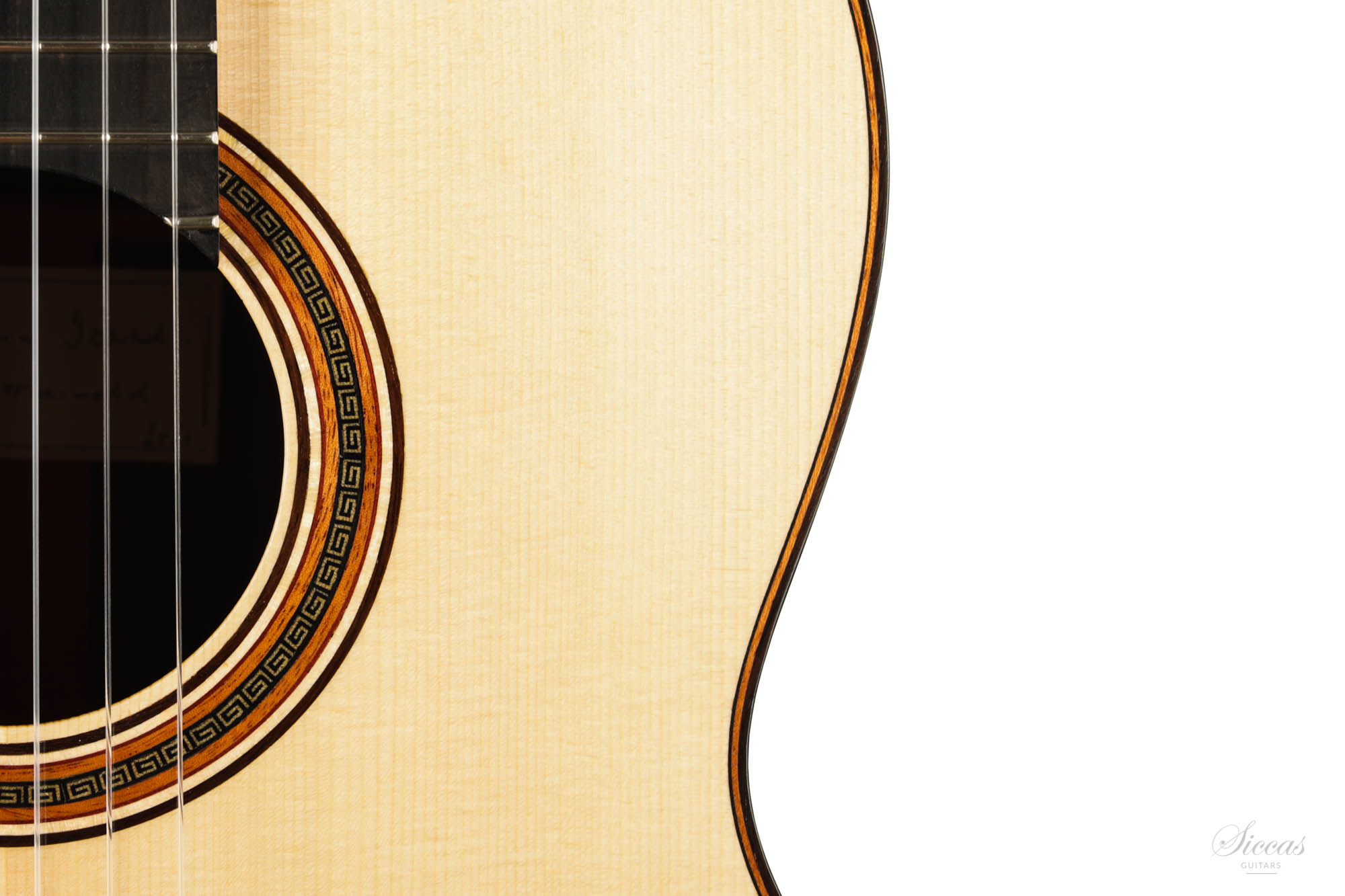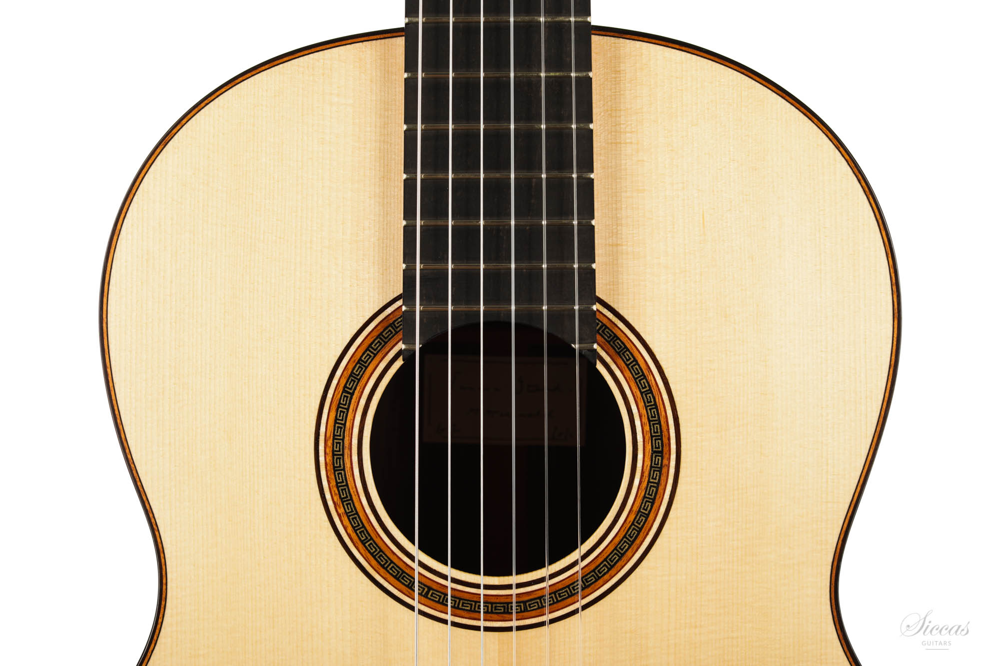 Bei ihrem Modell handelt es sich um eine Klassikgitarre, die durch die Erfahrungen mit verschiedenen Gitarrenbauern und das Studieren verschiedenster Instrumente entstand. Es handelt sich um eine 7-Fächer beleistete Gitarre mit Fichtendecke (Zederndecke) und einer durchgehenden Deckenwölbung, die der dünn ausgearbeiteten Decke die nötige Steifigkeit verleiht und optisch in Einklang mit dem erhöhten Griffbrett steht. Dieses erleichtert das Spielen in den hohen Lagen und sorgt für eine einfache Bespielbarkeit des Instruments. Boden und Zargen bestehen aus Ostindischem Palisander und der Hals aus Cedro.