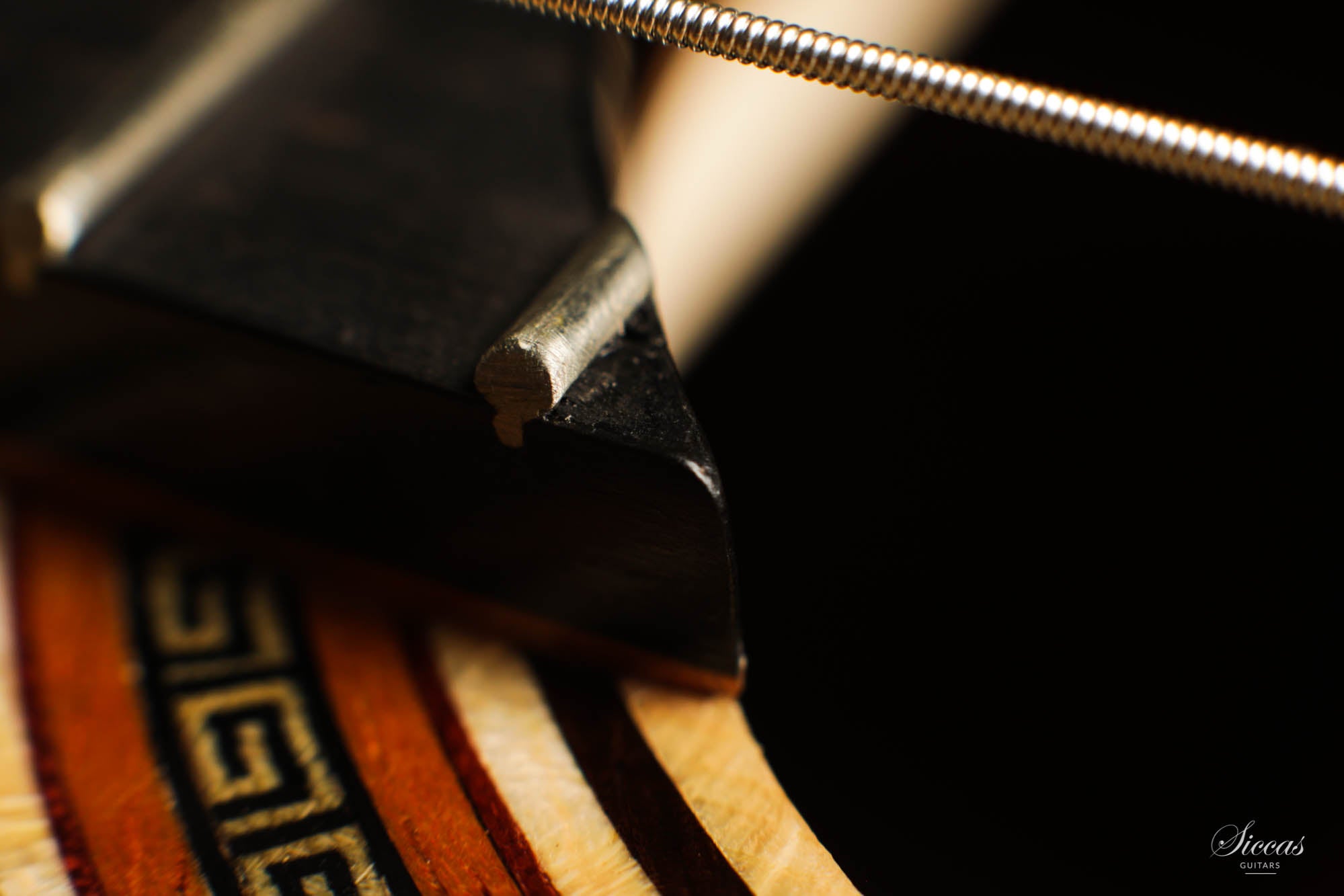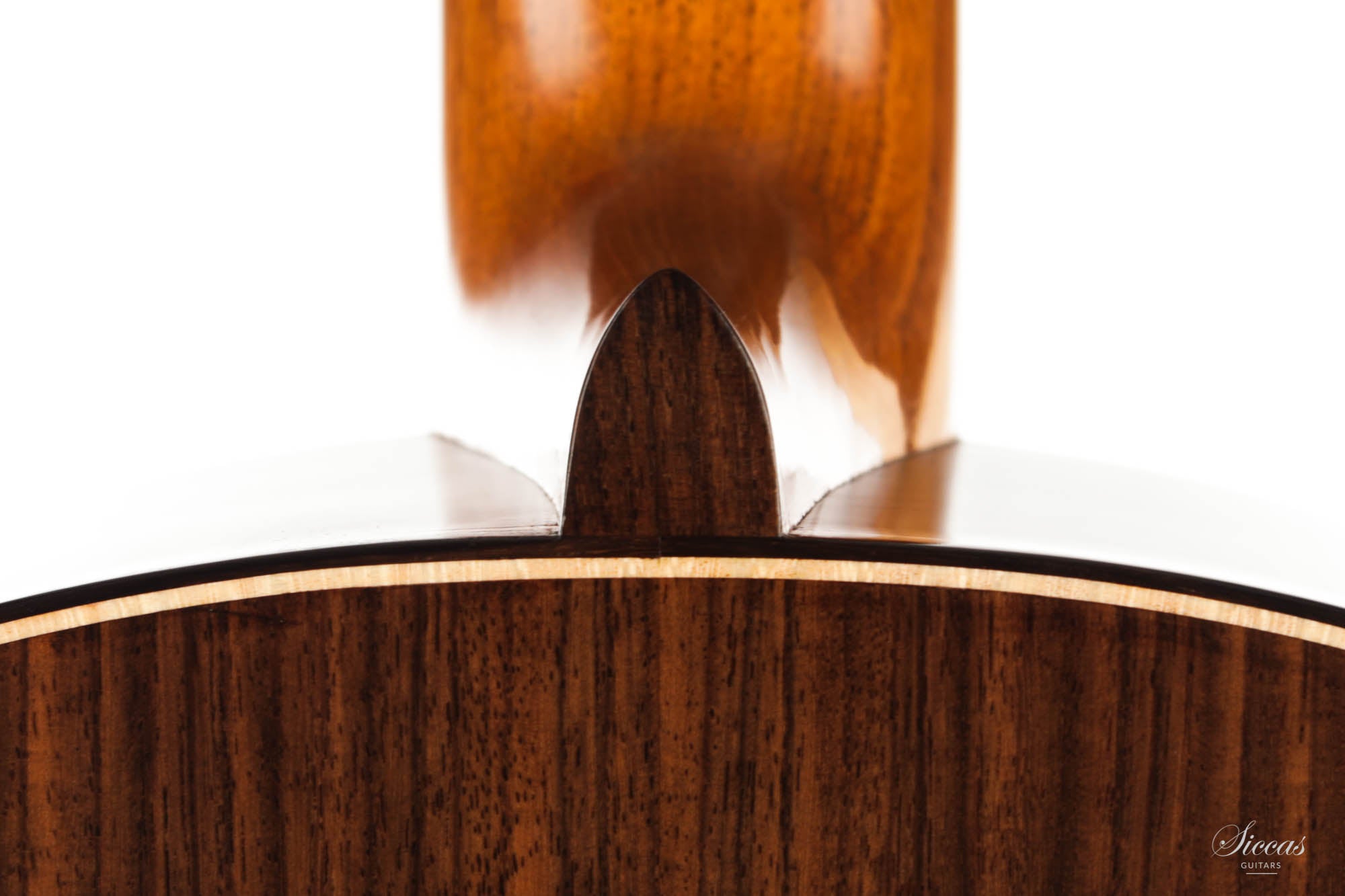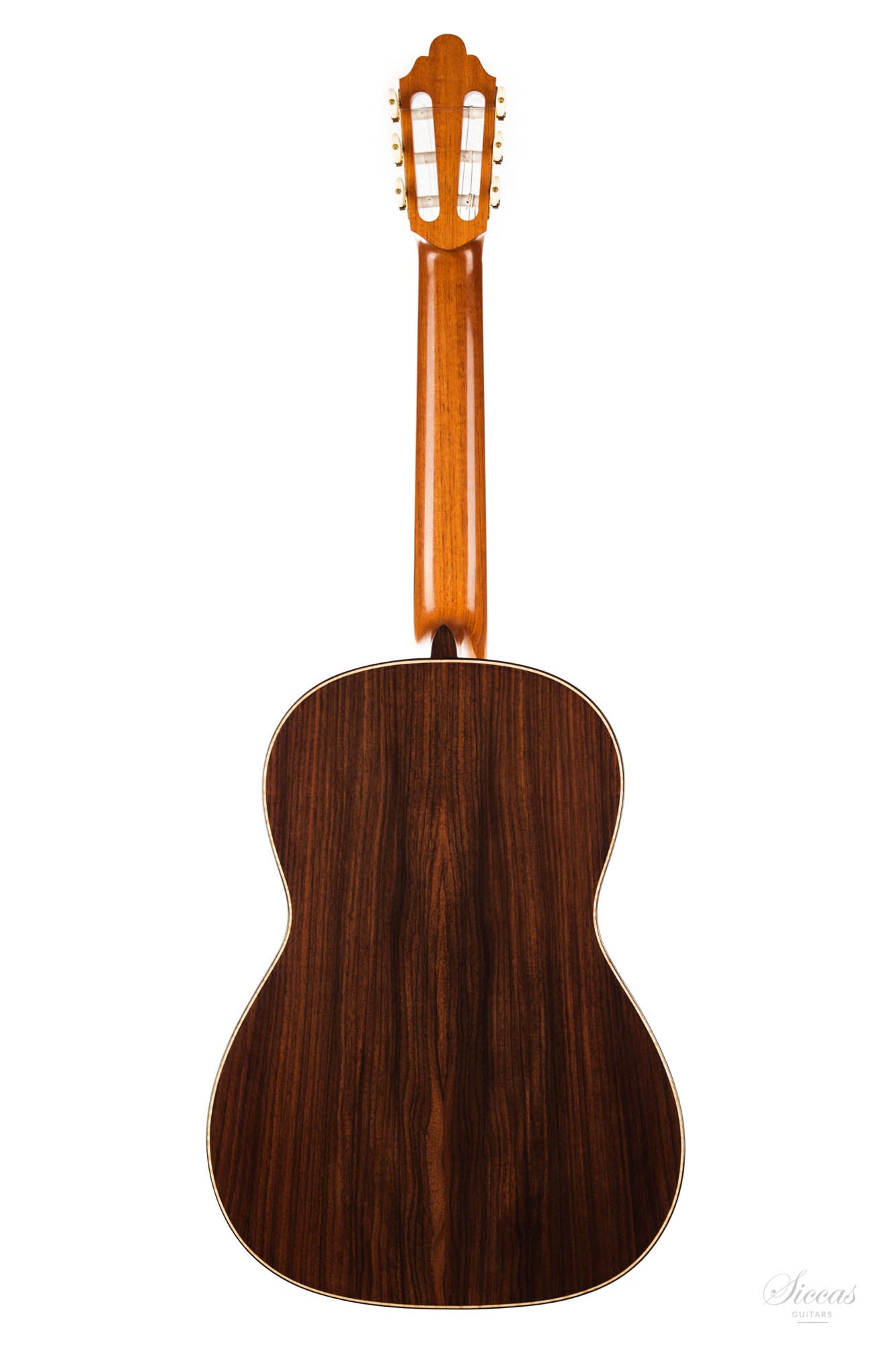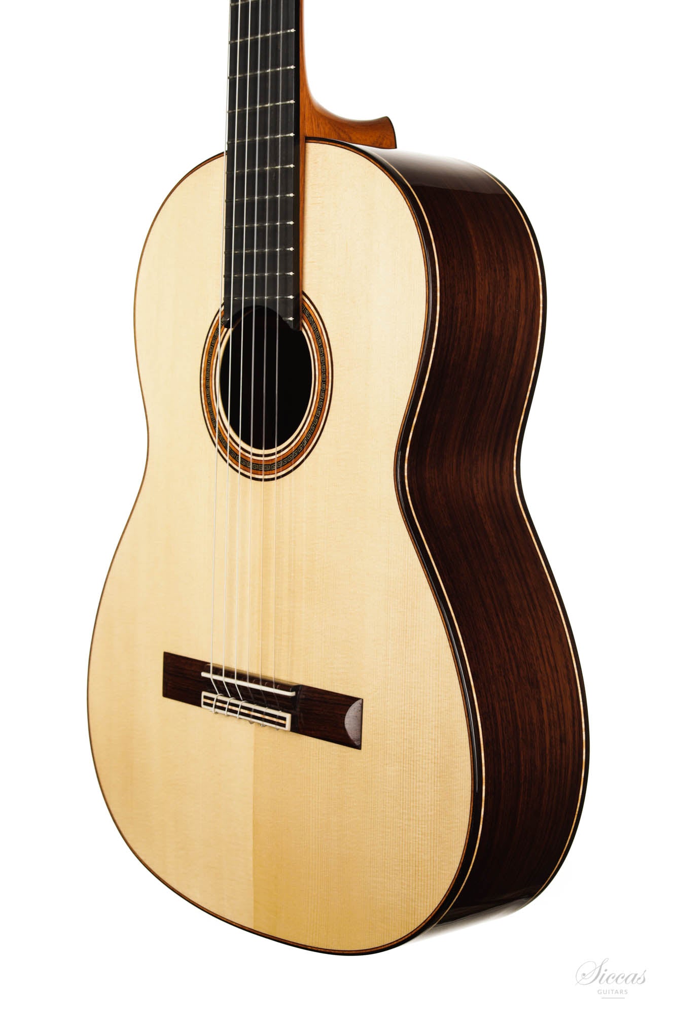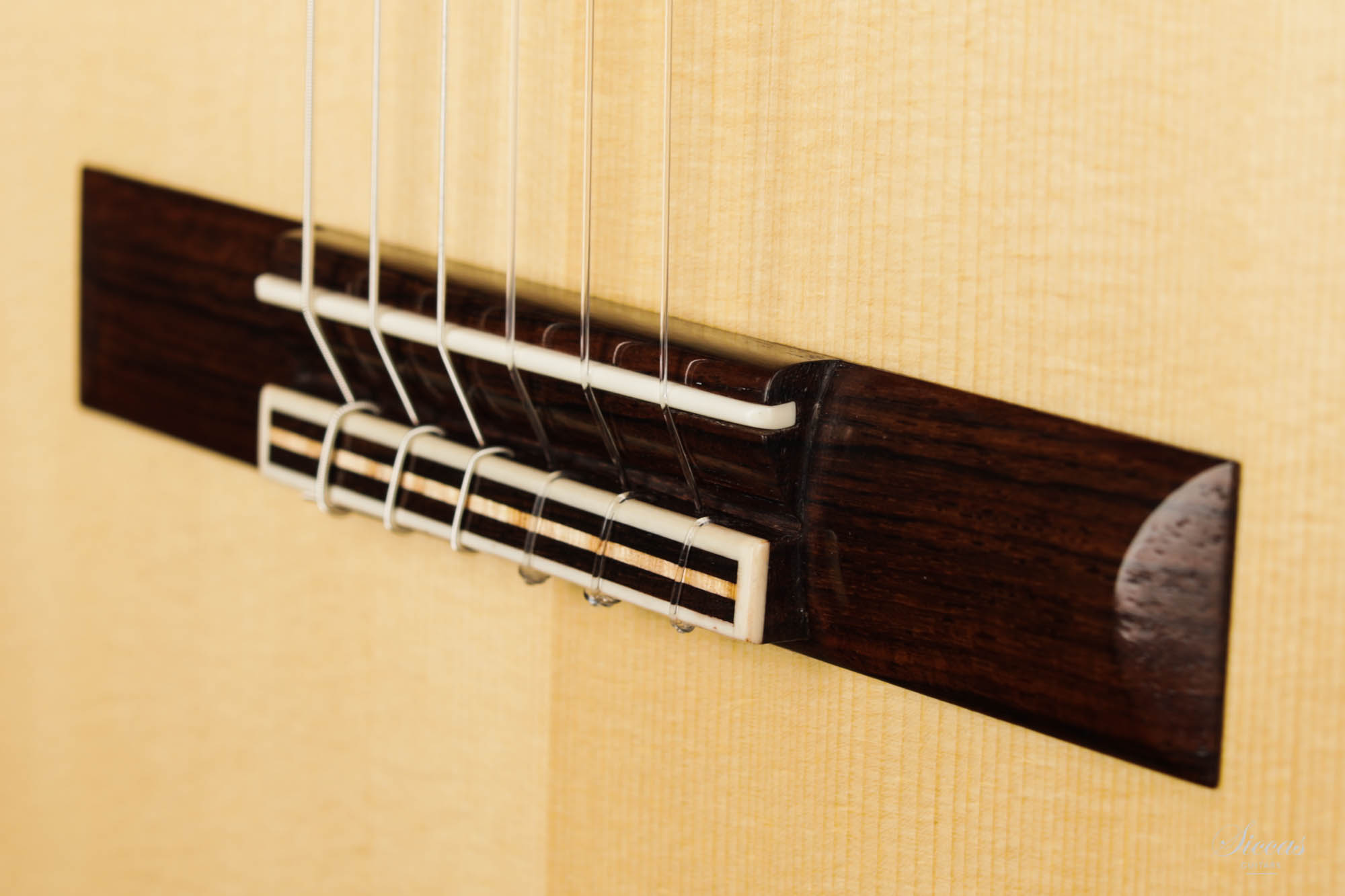 Bei ihrem Modell handelt es sich um eine Klassikgitarre, die durch die Erfahrungen mit verschiedenen Gitarrenbauern und das Studieren verschiedenster Instrumente entstand. Es handelt sich um eine 7-Fächer beleistete Gitarre mit Fichtendecke (Zederndecke) und einer durchgehenden Deckenwölbung, die der dünn ausgearbeiteten Decke die nötige Steifigkeit verleiht und optisch in Einklang mit dem erhöhten Griffbrett steht. Dieses erleichtert das Spielen in den hohen Lagen und sorgt für eine einfache Bespielbarkeit des Instruments. Boden und Zargen bestehen aus Ostindischem Palisander und der Hals aus Cedro.