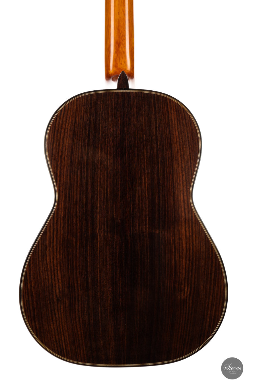 Dieses Instrument ist eine brandneue Gitarre des jungen und äußerst talentierten chinesischen Gitarrenbauers Tan Tan. Es handelt sich um eine Doubletop-Gitarre, die in jeder Hinsicht spektakulär ist. Sie trägt die klanglichen Eigenschaften großer deutscher Doubletop-Instrumente in sich.