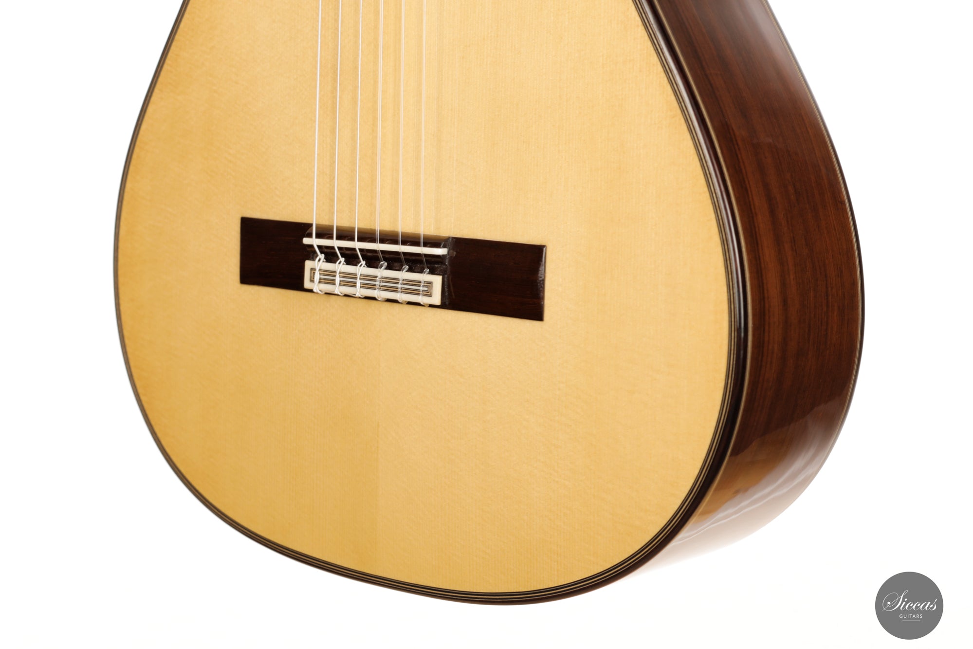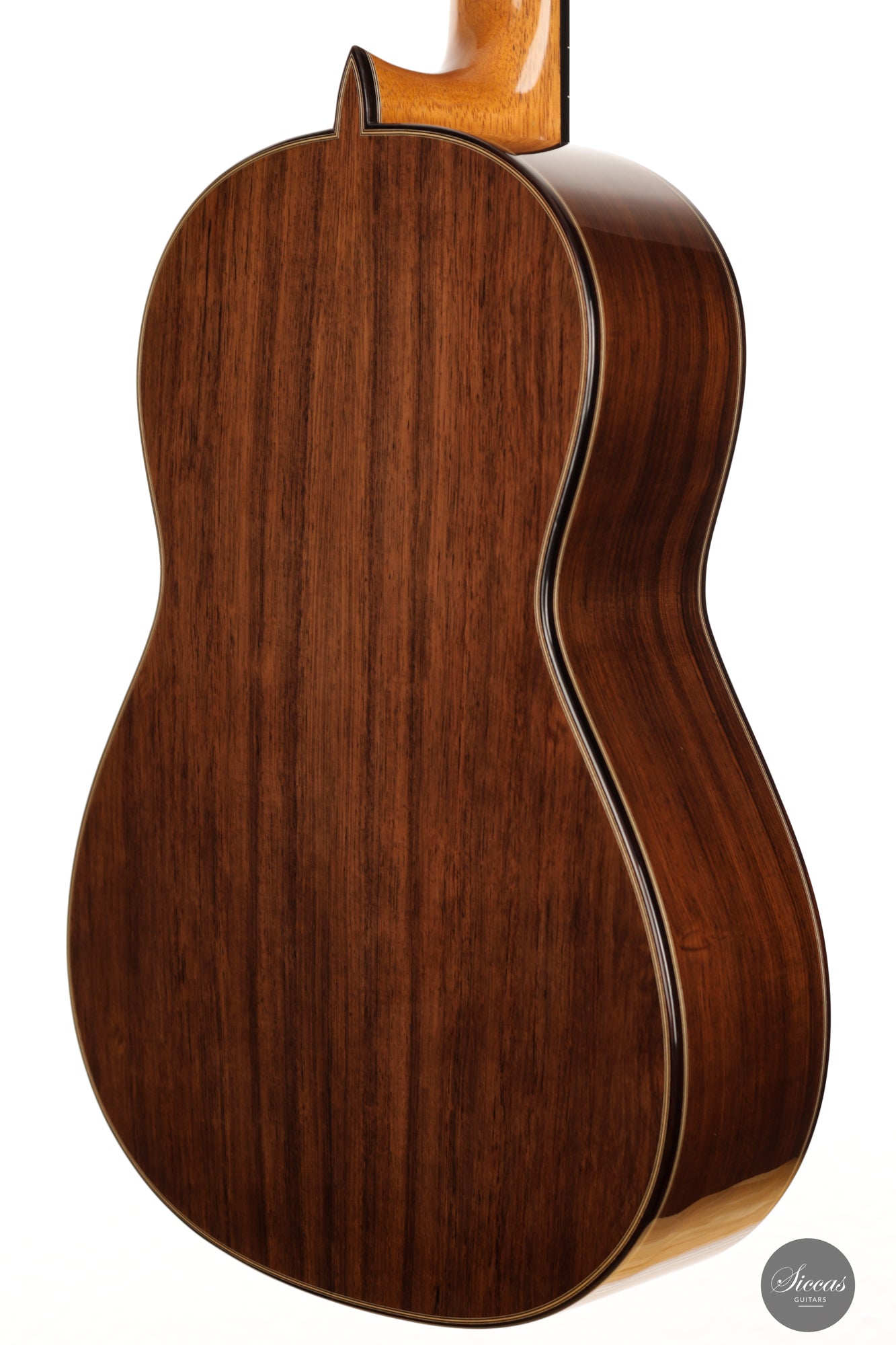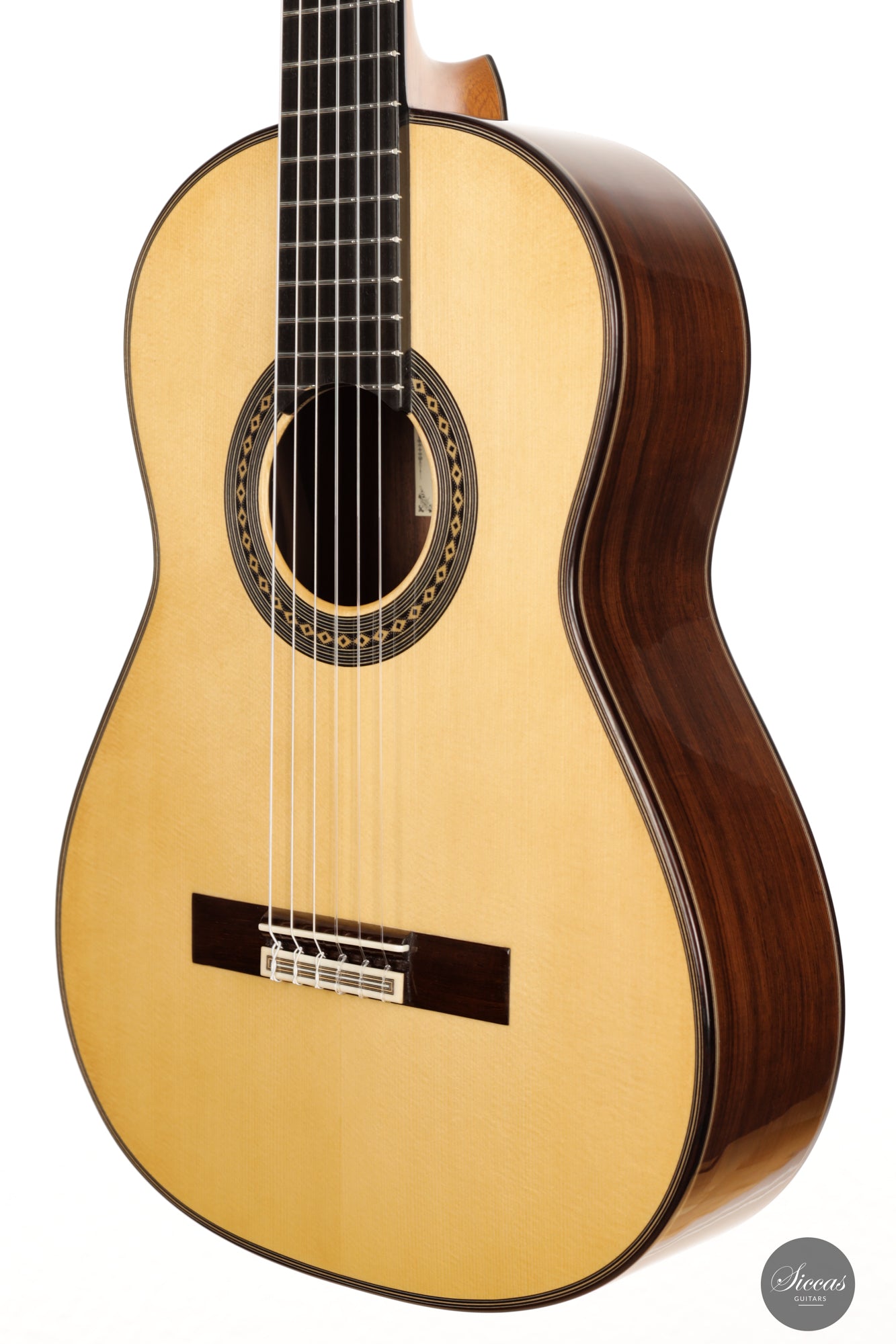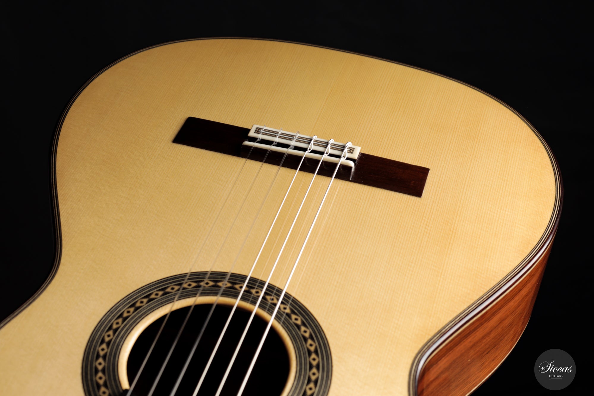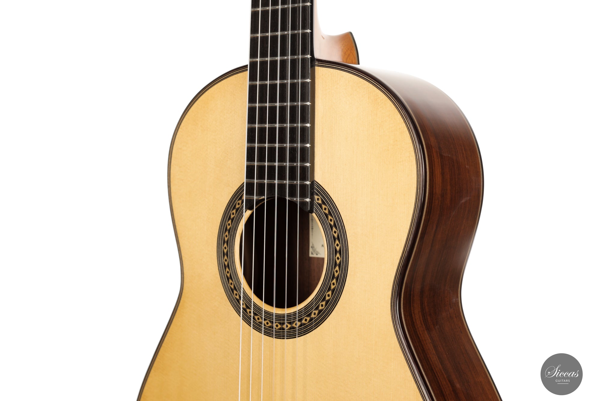 Diese Gitarre ist eine Mischung aus Merkmalen eines modernen Madrid-Stil-Instruments mit dem kompakten Gefühl einer "antigua" (altmodischen) Gitarre.