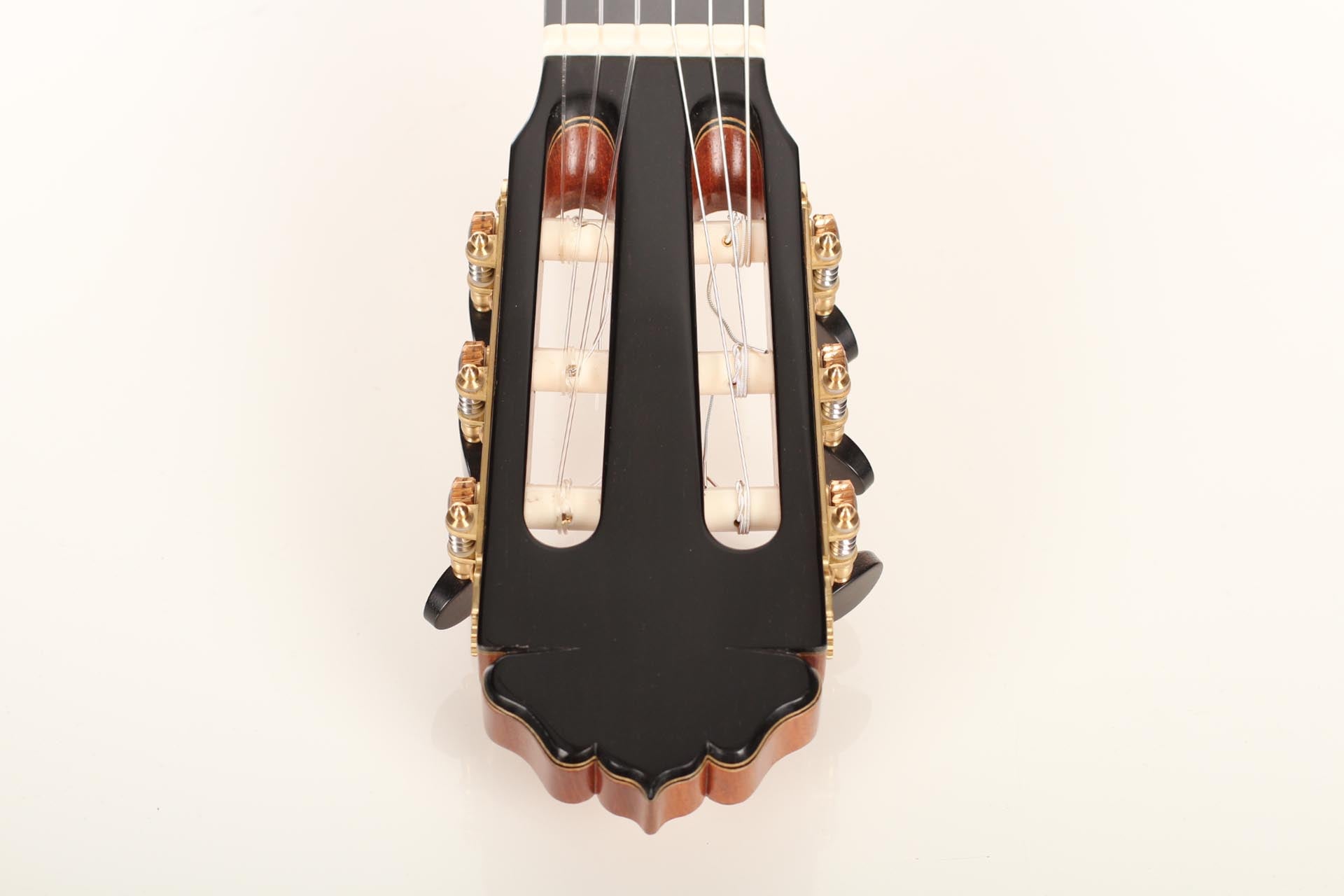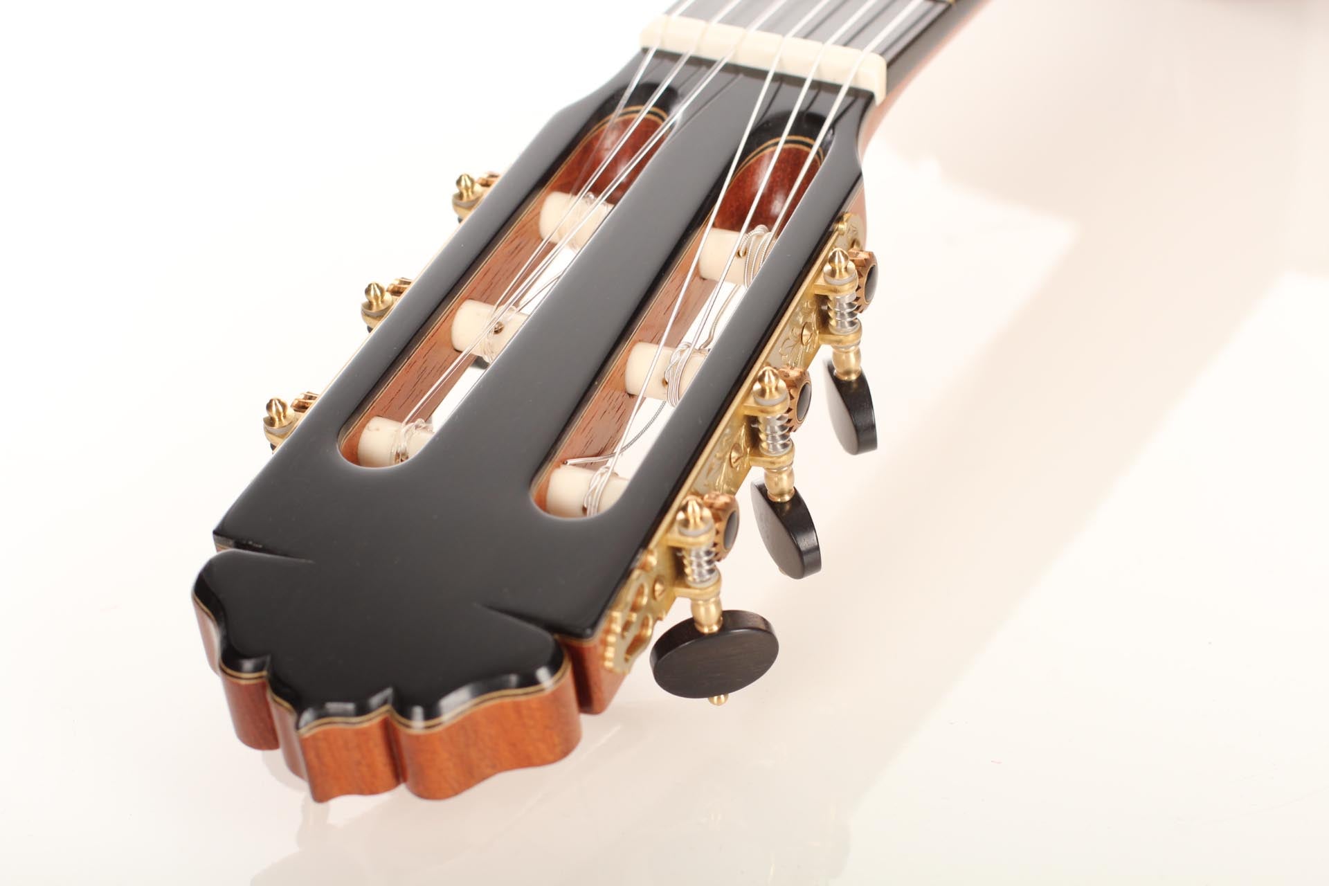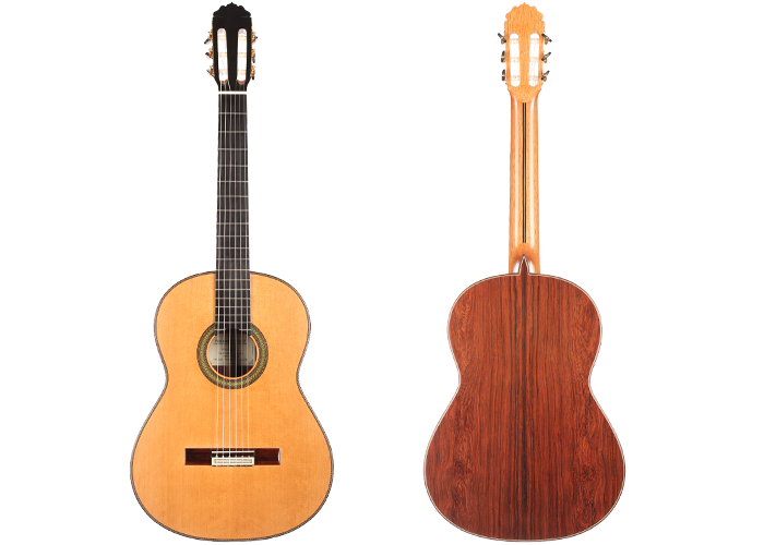 Die klassische Gitarre mit ihren weichen Nylonsaiten und ihrem charakteristischen Timbre ist zum Symbol der Kammermusik, der spanischen Tradition und des Konzertrepertoires geworden. Ihre moderne Form prägte Antonio de Torres im 19. Jahrhundert, indem er den Standard für Korpus, Fächerbeleistung und die 65-Zentimeter-Mensur setzte, die bis heute verwendet werden. Instrumente dieser Kategorie eröffnen eine reiche Palette von den feinen romantischen Miniaturen Tárregas bis zu den majestätischen Konzerten Rodrigos. Hier finden Sie Gitarren, die historische Kontinuität bewahren und zugleich zu neuen Interpretationen anregen.