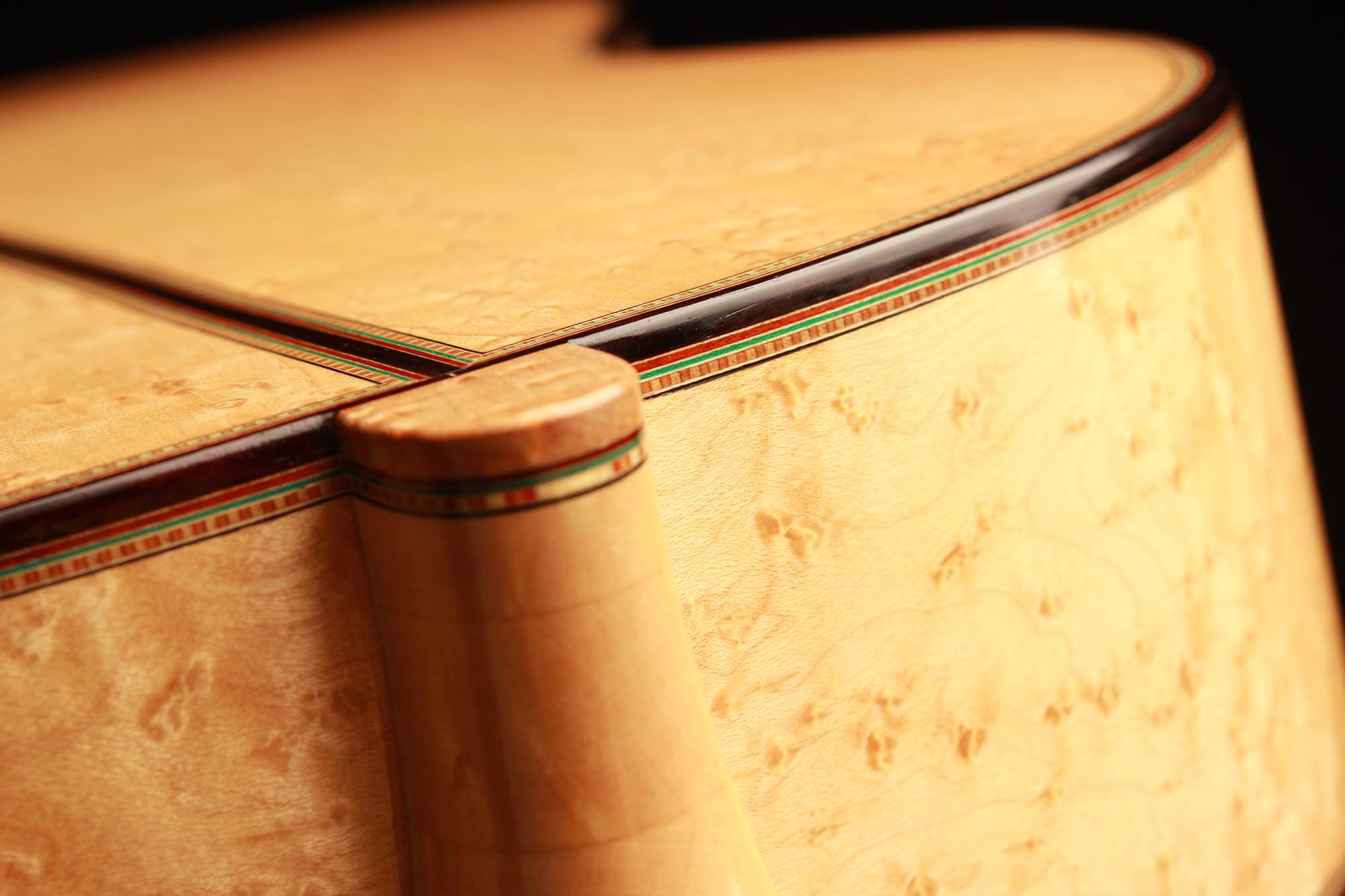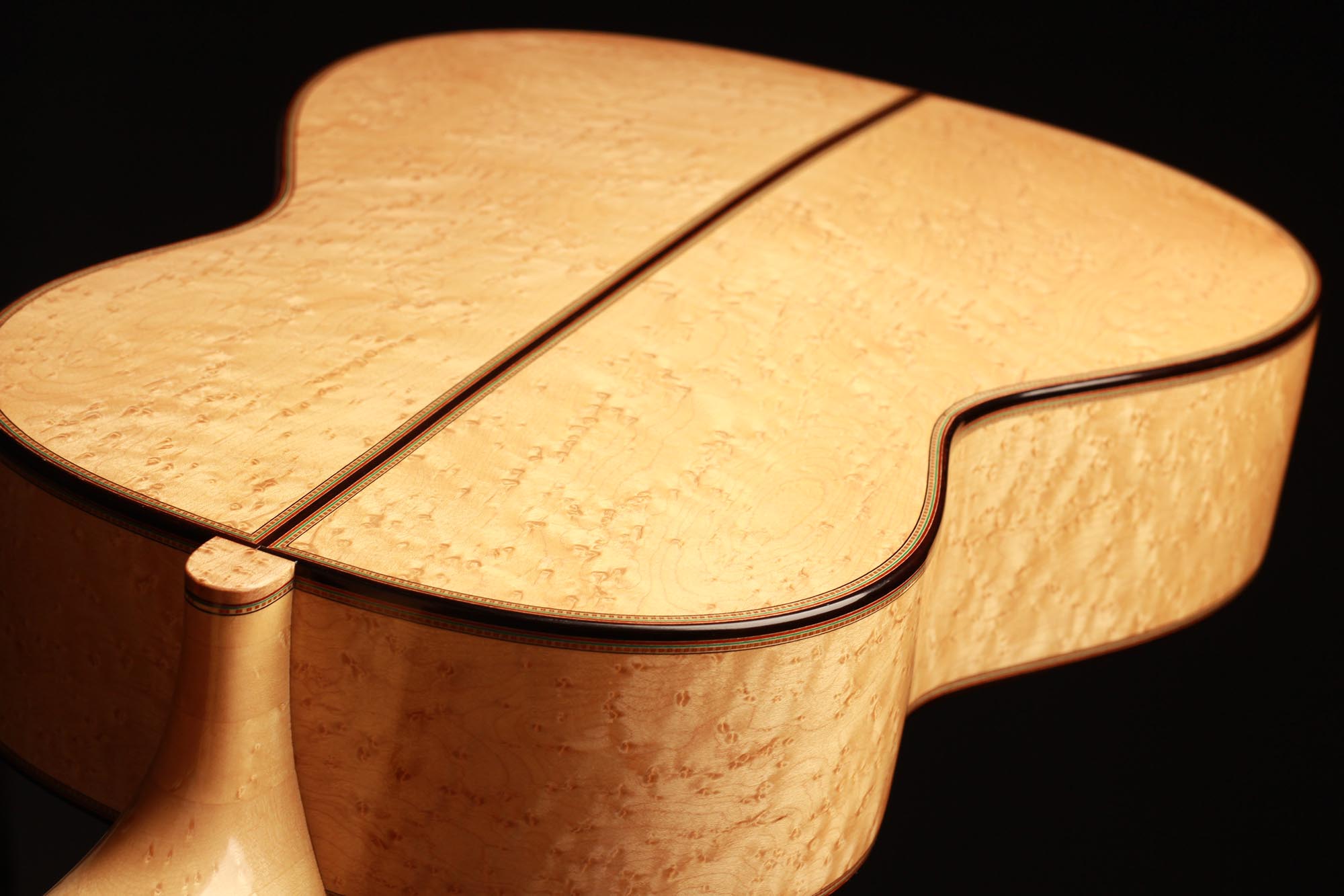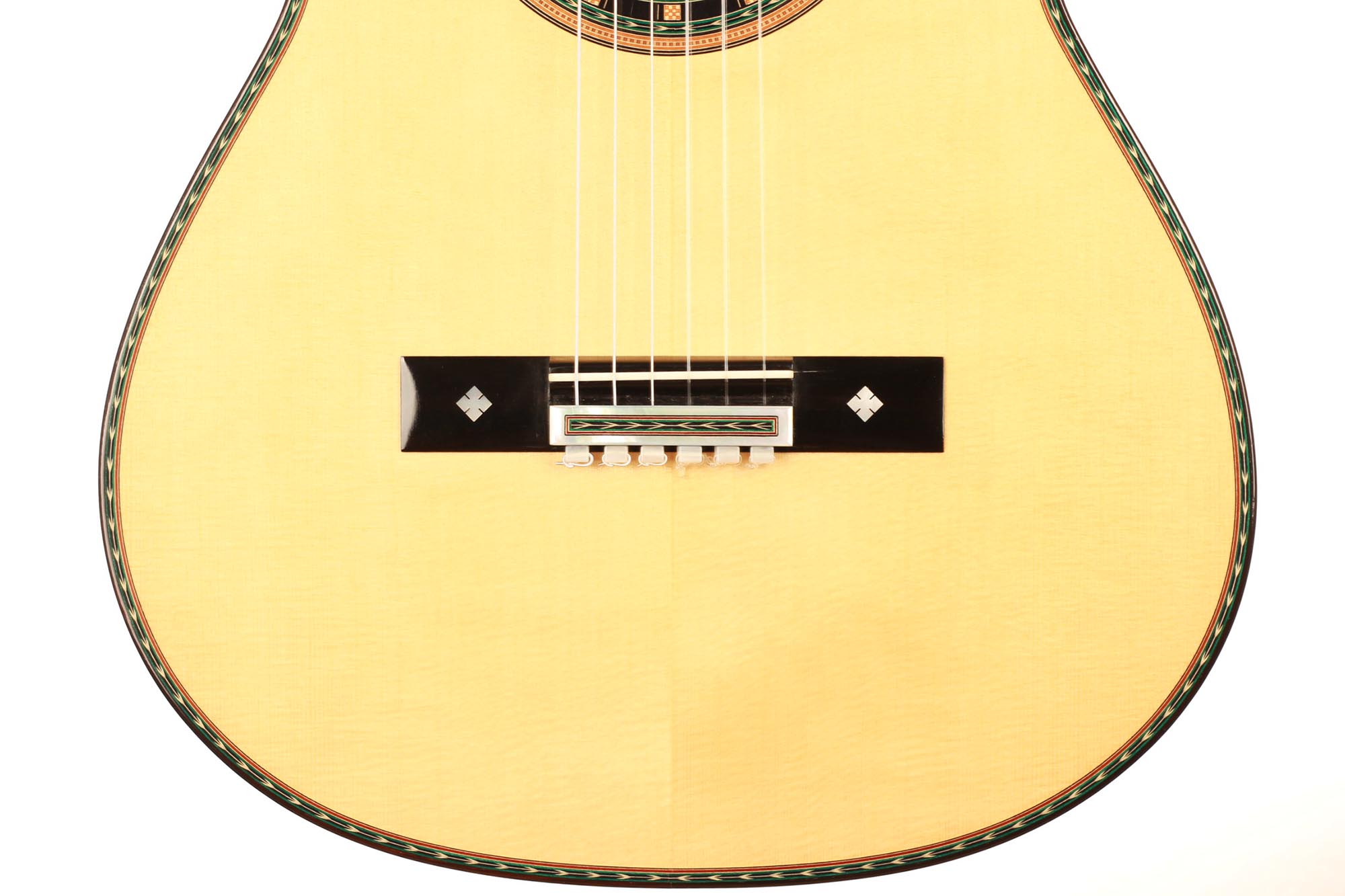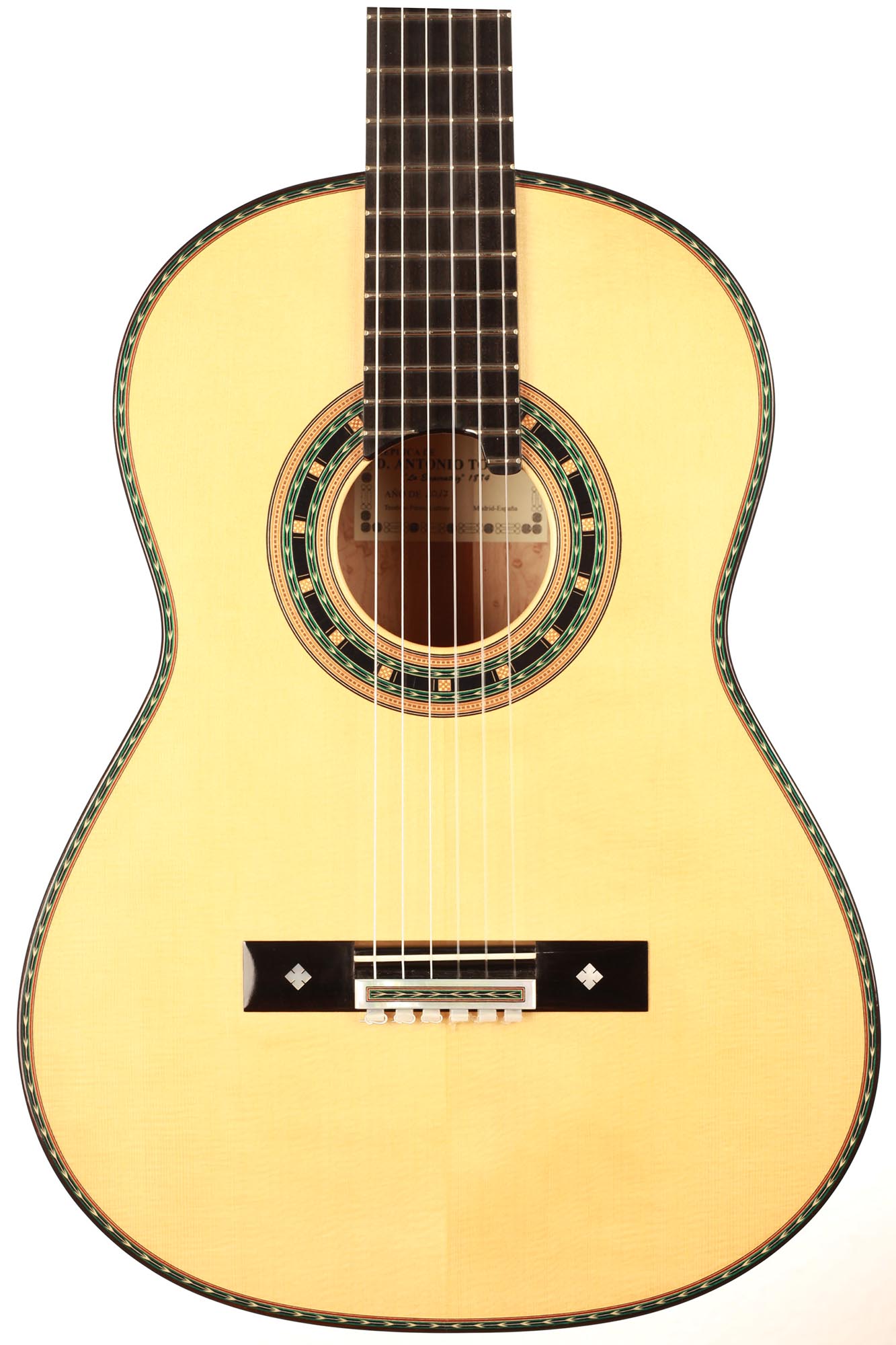 This unique guitar was built as a replica of the famous 1884 Antonio de Torres guitar named “La Emperatriz”. It has beautifully figured bird’s eye maple back and sides. The neck is also built of this fantastic wood, which is a very rare feature. Top-quality Rodgers tuners are holding a perfect pitch. This guitar has a smooth old-world sound with marvellous trebles and very deep basses. The playability is perfect, and this instrument takes both listener and player back in time.