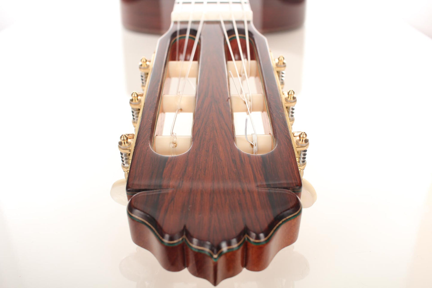 Die klassische Gitarre mit ihren weichen Nylonsaiten und ihrem charakteristischen Timbre ist zum Symbol der Kammermusik, der spanischen Tradition und des Konzertrepertoires geworden. Ihre moderne Form prägte Antonio de Torres im 19. Jahrhundert, indem er den Standard für Korpus, Fächerbeleistung und die 65-Zentimeter-Mensur setzte, die bis heute verwendet werden. Instrumente dieser Kategorie eröffnen eine reiche Palette von den feinen romantischen Miniaturen Tárregas bis zu den majestätischen Konzerten Rodrigos. Hier finden Sie Gitarren, die historische Kontinuität bewahren und zugleich zu neuen Interpretationen anregen.