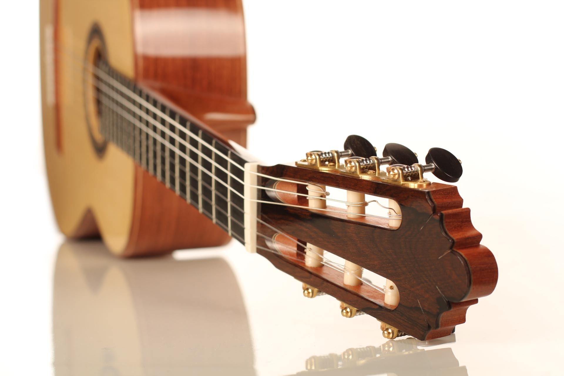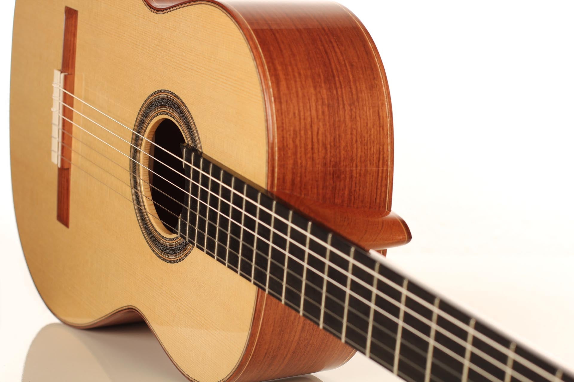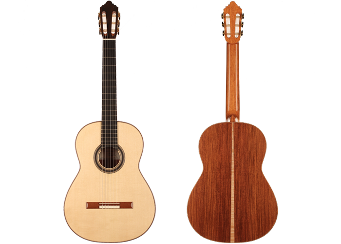 Die klassische Gitarre mit ihren weichen Nylonsaiten und ihrem charakteristischen Timbre ist zum Symbol der Kammermusik, der spanischen Tradition und des Konzertrepertoires geworden. Ihre moderne Form prägte Antonio de Torres im 19. Jahrhundert, indem er den Standard für Korpus, Fächerbeleistung und die 65-Zentimeter-Mensur setzte, die bis heute verwendet werden. Instrumente dieser Kategorie eröffnen eine reiche Palette von den feinen romantischen Miniaturen Tárregas bis zu den majestätischen Konzerten Rodrigos. Hier finden Sie Gitarren, die historische Kontinuität bewahren und zugleich zu neuen Interpretationen anregen.