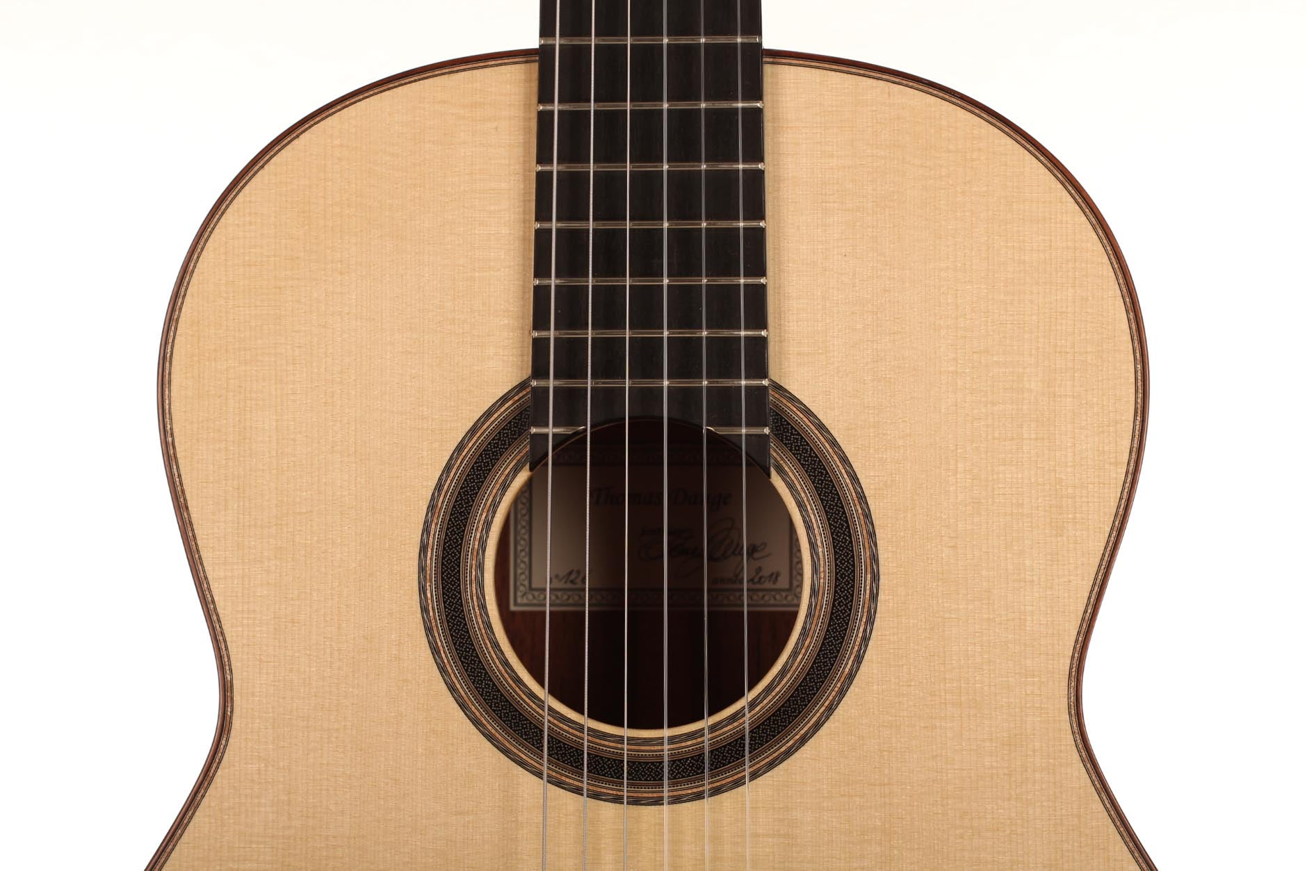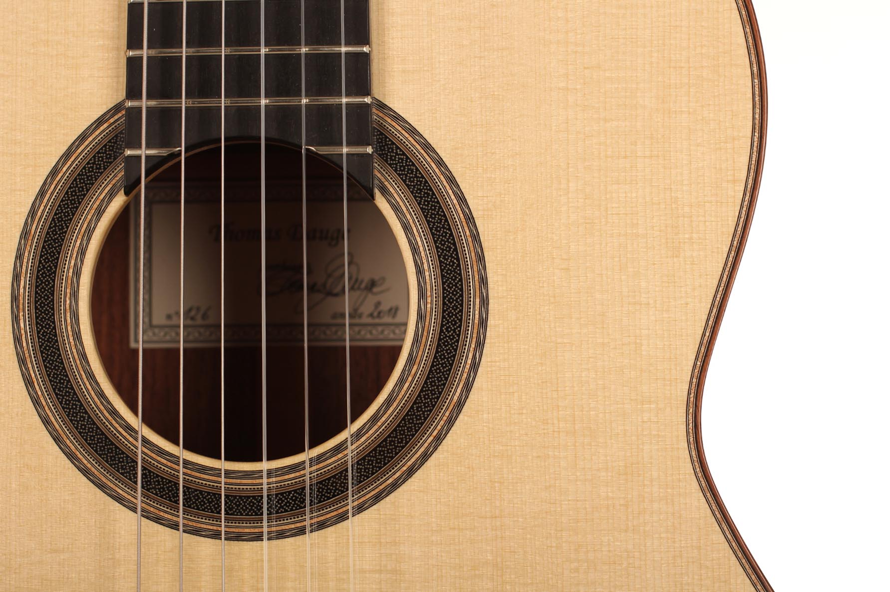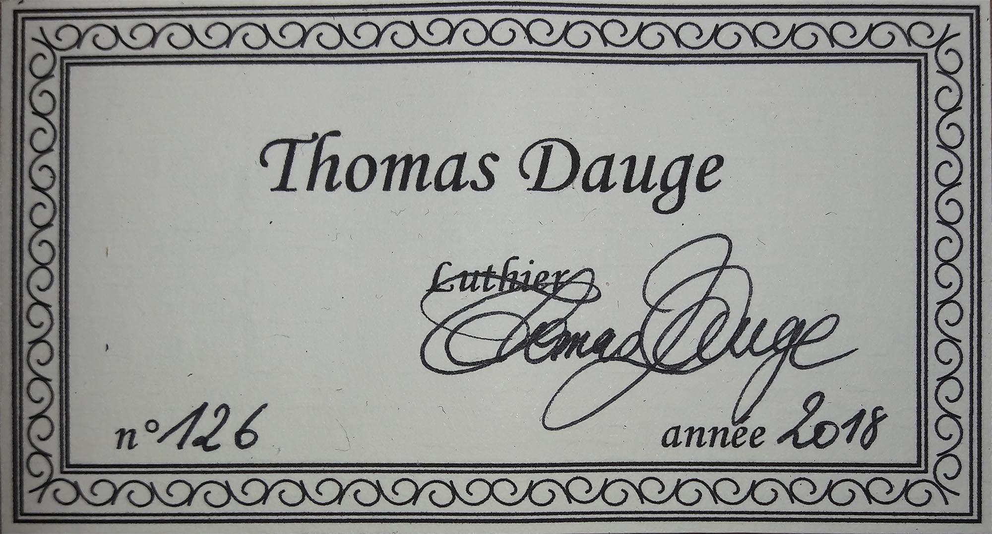 Thomas Dauge ist ein französischer Gitarrenbauer aus Bordeaux. Er baut Gitarren, die der französischen Tradition folgen und ist sehr talentiert im Entwerfen und Umsetzen seiner Rosetten und Intarsien. Thomas Dauge achtet sehr sorgfältig auf jedes Detail seiner Instrumente: die Holzauswahl, die Qualität, die Schellack-Politur, die Sauberkeit der Fugen usw. Vor allem konzentrieren sich seine Nachforschungen auf den Klang seiner Gitarren. Es gelingt ihm sehr ausgewogene Gitarren mit komplexer Klangfarbe und leichter Bespielbarkeit zu bauen.