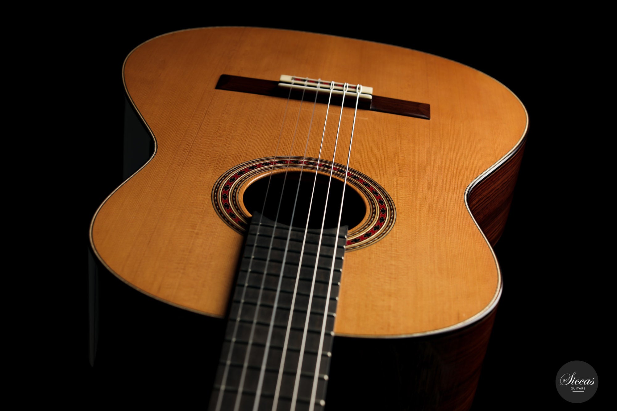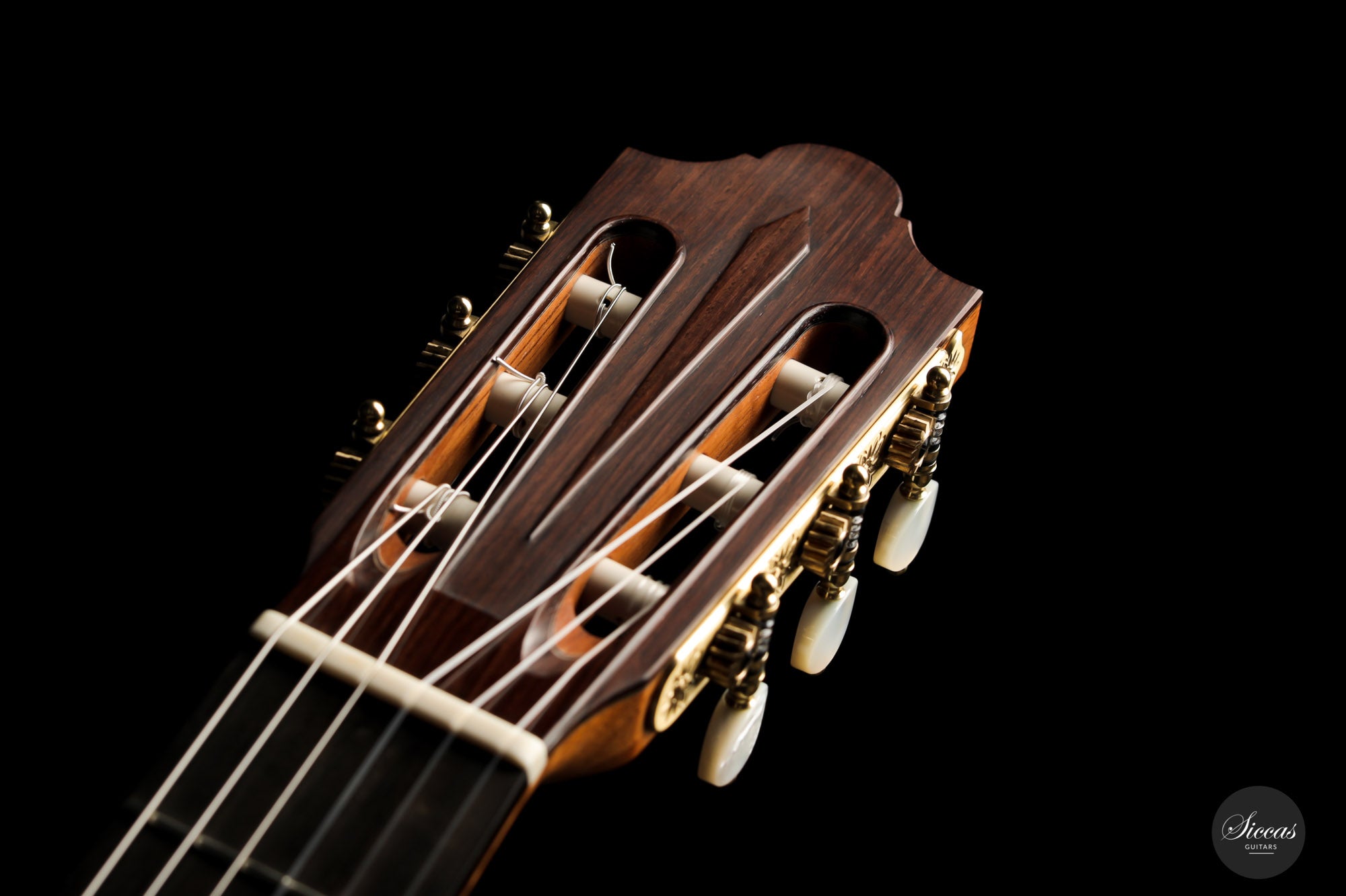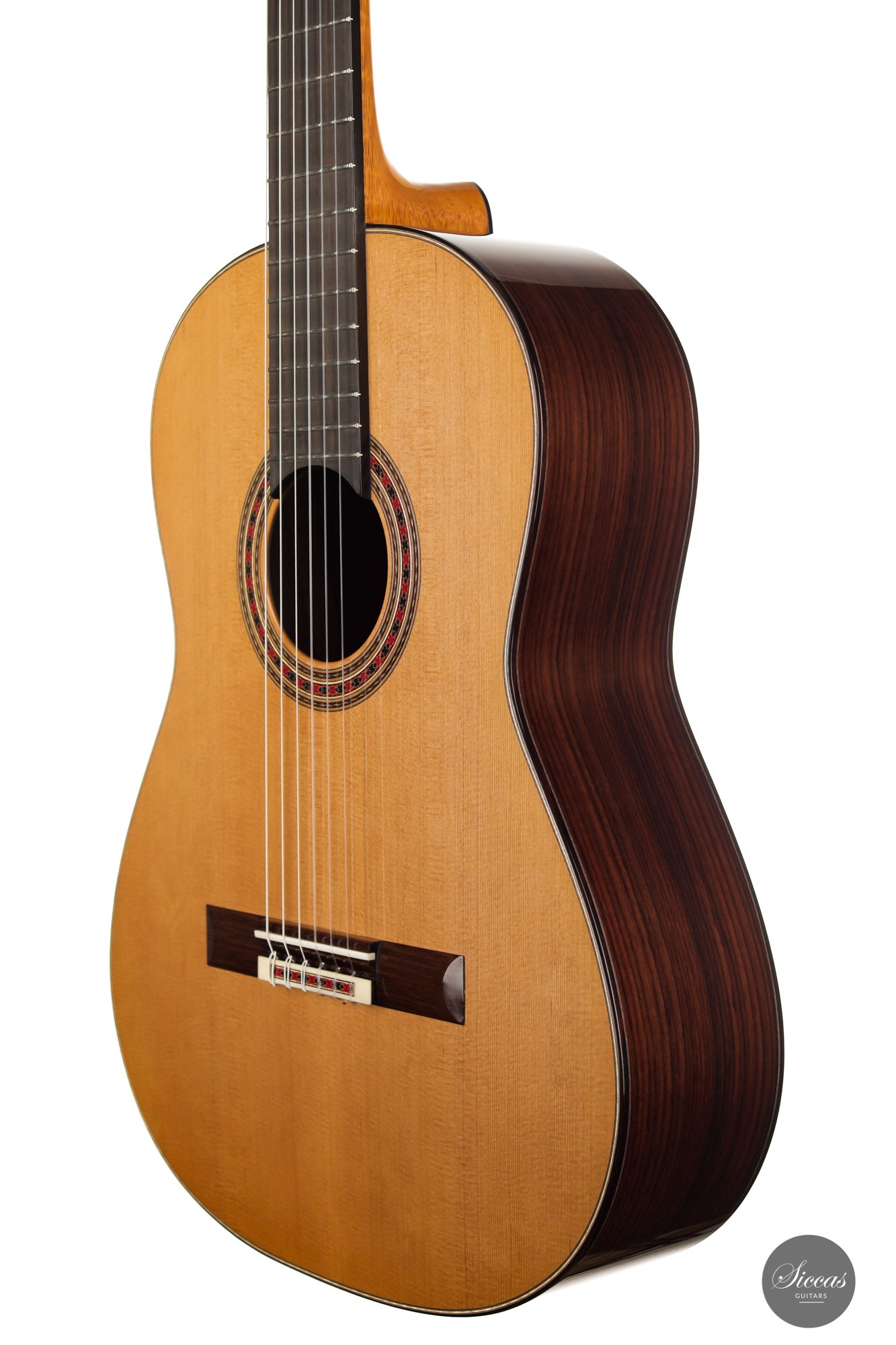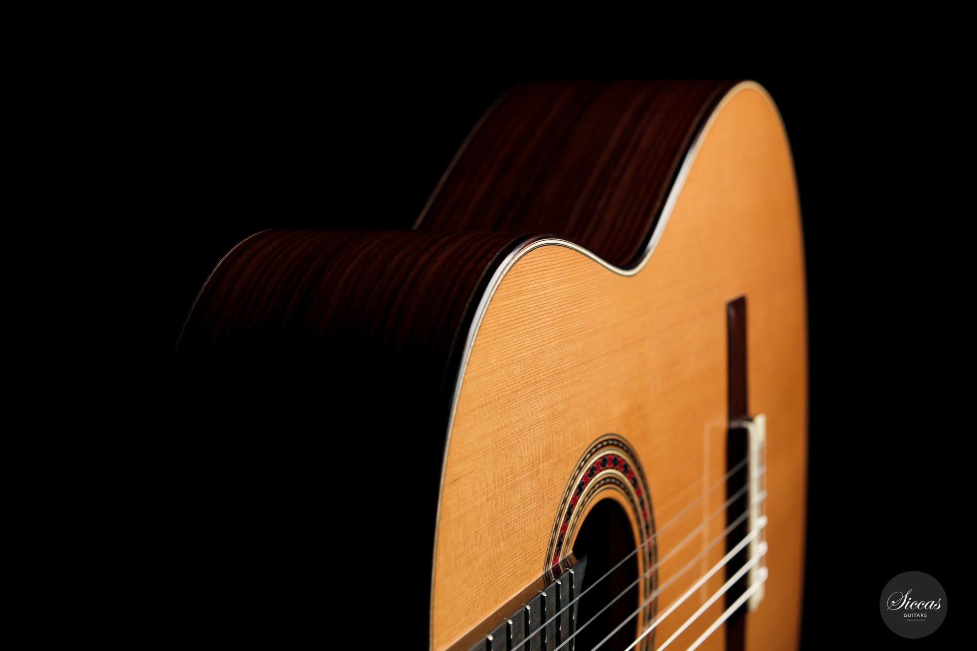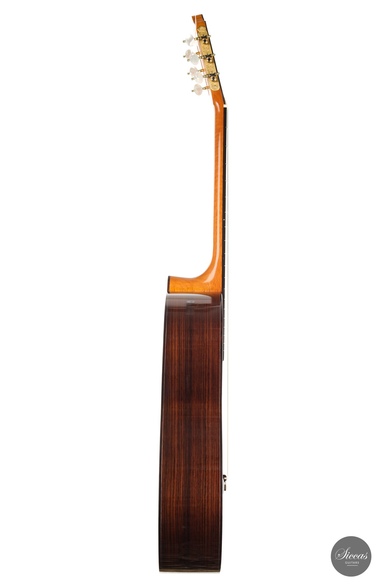 Both the sound and the playing feel meet the highest expectations. The neck is relatively thin, which makes for excellent playability. The first-class Rodgers tuning machines underline the superb quality of this Tomas Dauge guitar. Great projection and a harmonious, balanced sound combine with amazing sustain. Moreover, this guitar has a clear and warm tone that captivates with its elegance. Congratulations to Thomas Dauge for once again creating such a beautiful Daniel Friederich model.