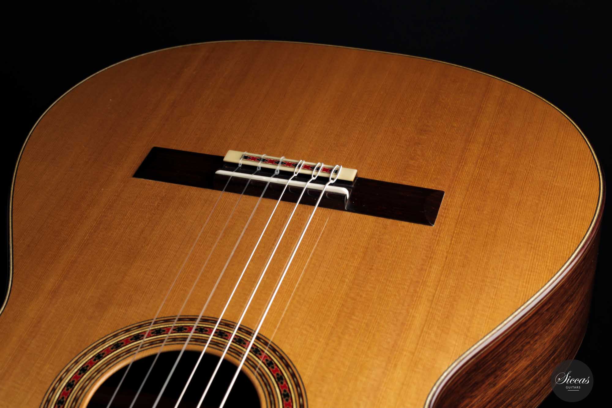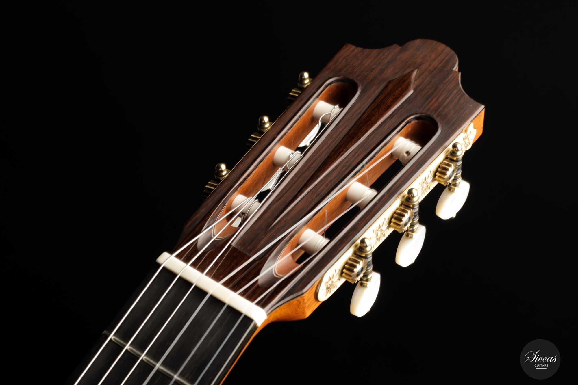 Dass es Thomas Dauge gelungen ist, eine exakte Kopie der Gitarre von Daniel Friederich anzufertigen, kann man an dieser Gitarre Nummer 156 aus dem Jahr 2022 sehen. Diese originalgetreue Replik entspricht dem Vorbild in jedem Detail, sowohl in der Qualität der Hölzer als auch in der perfekten Ausführung aller Feinheiten. Thomas Dauge hat das Wesen von Friederichs Gitarren in allen Aspekten erfasst. Auch klanglich erkennt man, dass ein gutes Verständnis der sehr komplexen Friederich-Charakter vorhanden ist. Eine exzellente Projektion, gepaart mit einem harmonischen Klang und langem Sustain, genau wie beim Original. Die erstklassigen Rodgers-Mechaniken unterstreichen die hervorragende Qualität dieser Thomas-Dauge-Gitarre. Dieses Instrument ist optimal eingestellt, so dass das Spielen über einen längeren Zeitraum ein großes Vergnügen ist. Eine einzigartige Gelegenheit ein Instrument mit den Charakteristiken der berühmten Friederich Gitarren zu einem sehr attraktiven Preis zu erhalten.