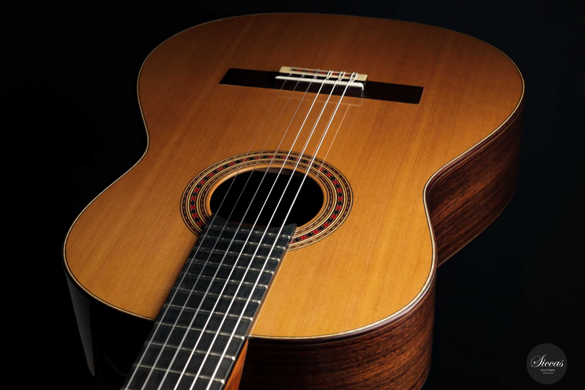 Die klassische Gitarre mit ihren weichen Nylonsaiten und ihrem charakteristischen Timbre ist zum Symbol der Kammermusik, der spanischen Tradition und des Konzertrepertoires geworden. Ihre moderne Form prägte Antonio de Torres im 19. Jahrhundert, indem er den Standard für Korpus, Fächerbeleistung und die 65-Zentimeter-Mensur setzte, die bis heute verwendet werden. Instrumente dieser Kategorie eröffnen eine reiche Palette von den feinen romantischen Miniaturen Tárregas bis zu den majestätischen Konzerten Rodrigos. Hier finden Sie Gitarren, die historische Kontinuität bewahren und zugleich zu neuen Interpretationen anregen.