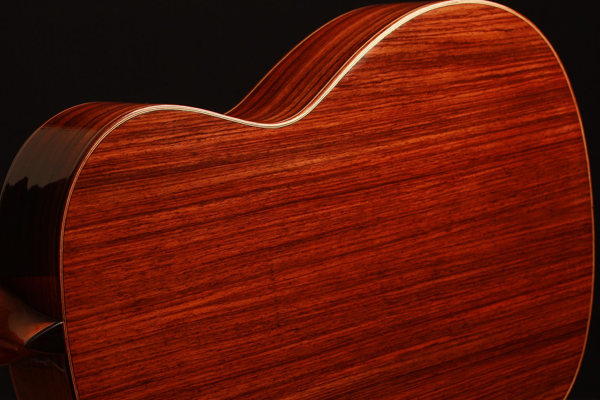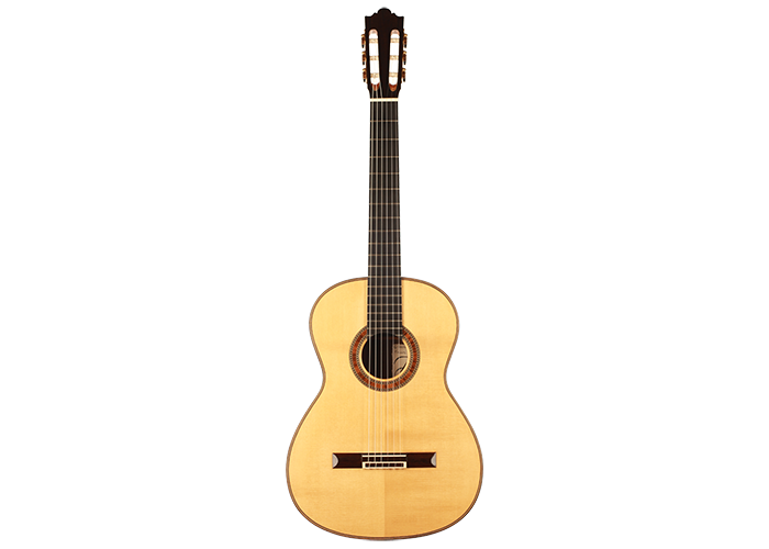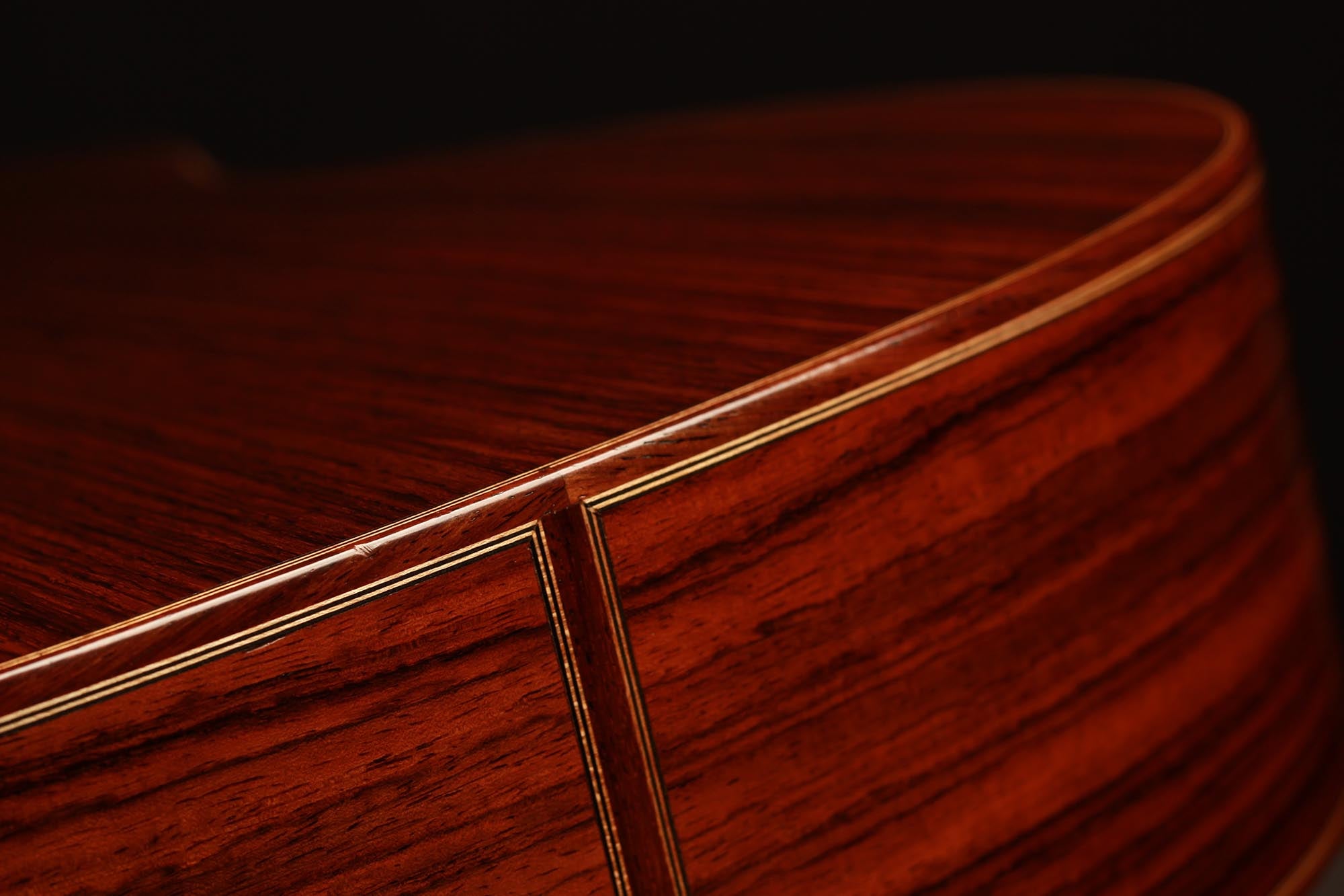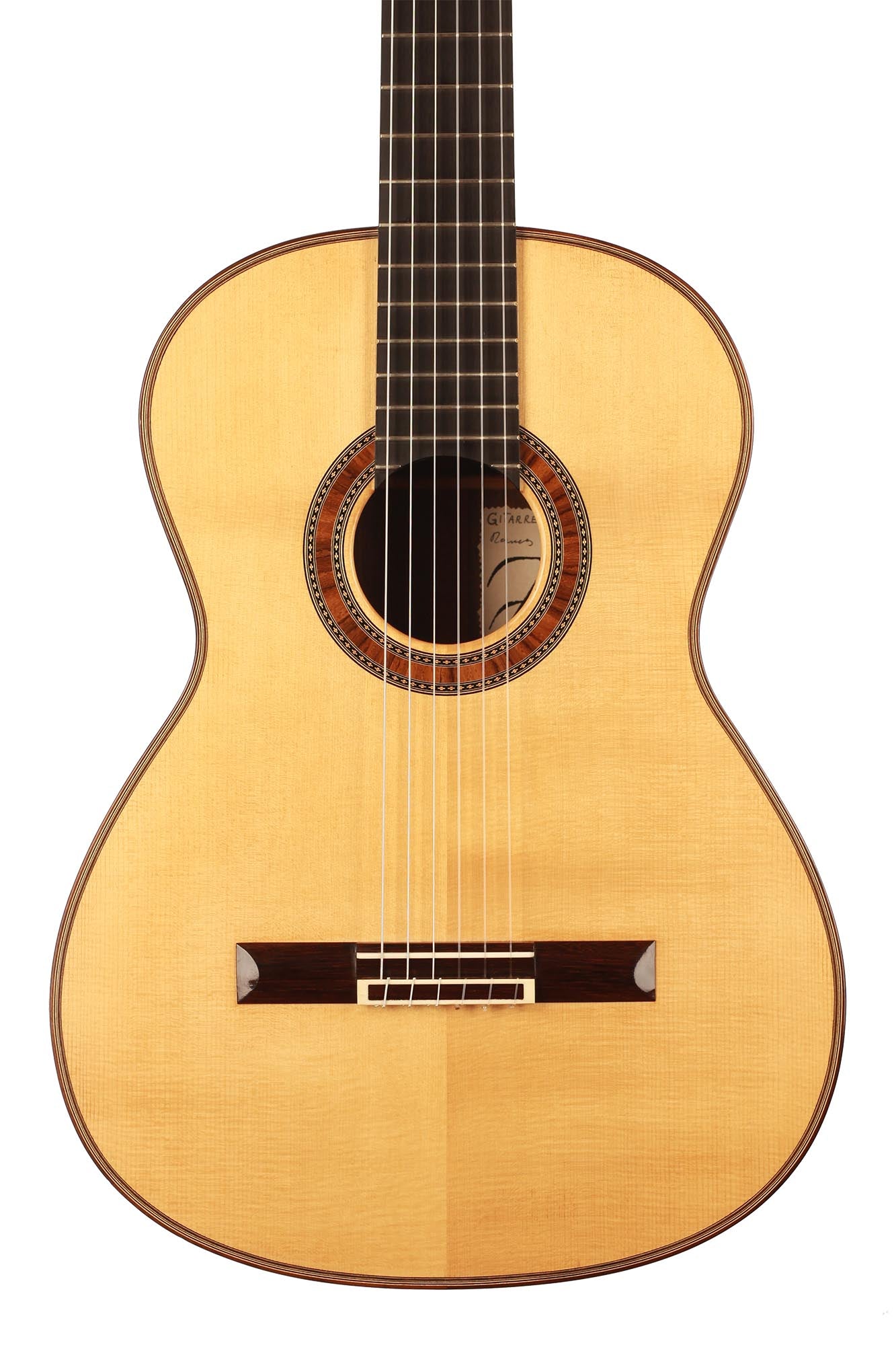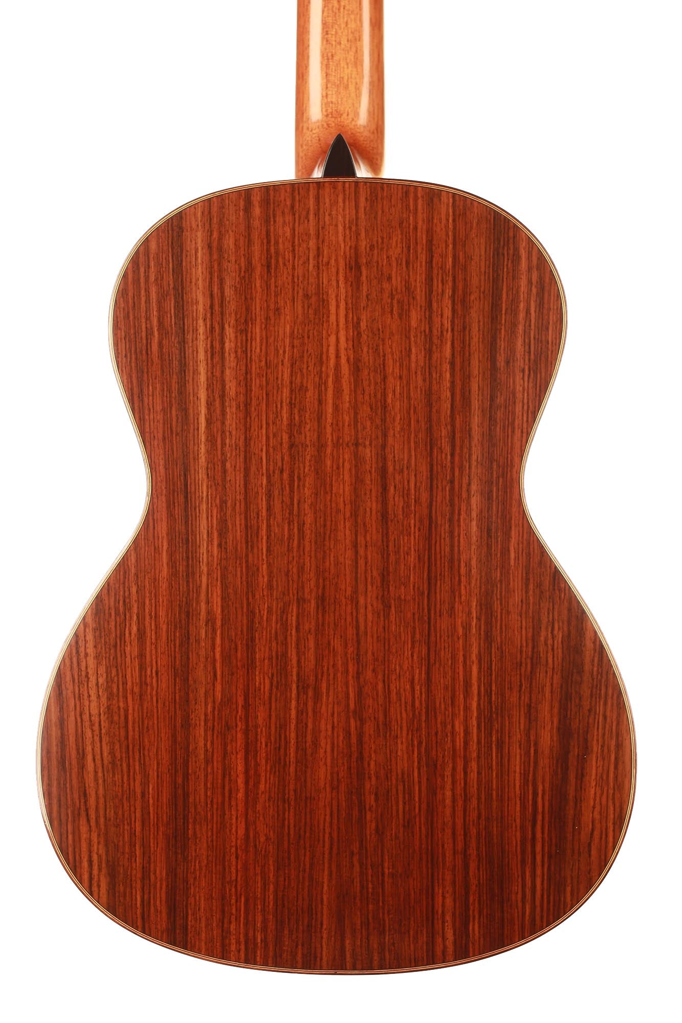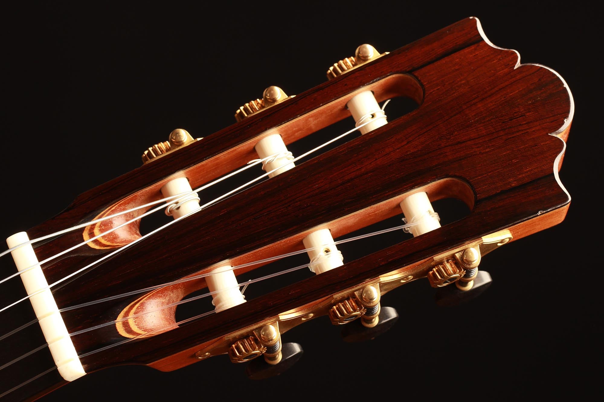 This 2016 built guitar has only few superficial signs of use and is in a very good condition. Back and sides are made of Indian rosewood and the spruce top is traditionally built with a 7-fan bracing. The guitar is equipped with Scheller quality tuners and has a very clear and appealing sound character. Especially the good separation of the voices and the crystalline treble merit special mention. The basses sound warm and give the instrument a beautiful carrying depth.