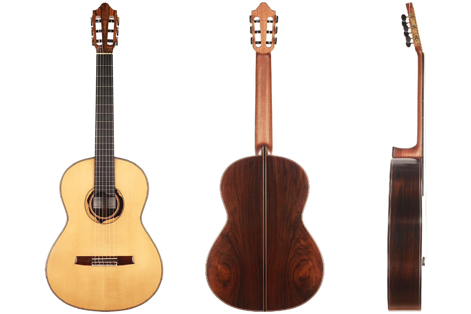 This guitar built in 2009 is in excellent condition, crack-free, with almost no playing marks. It was really well cared for and regularly played. Its sound is direct and powerful, very responsive and easy to produce. The waxed neck is appreciated by many players since it gives a great woody feeling to the left hand. Moreover, the fingerboard has a slight radius, and is elevated for better access to the higher ranges. Overall a fantastic instrument in great condition.