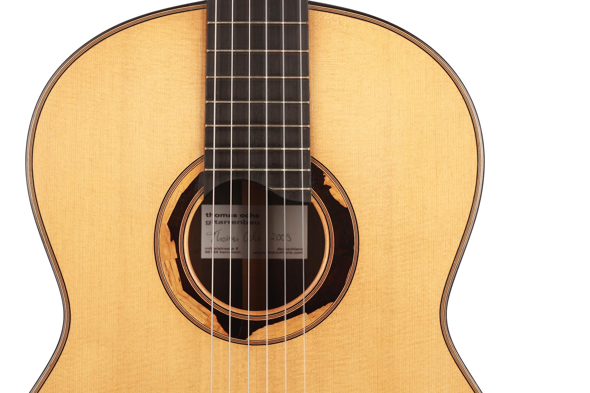 The „Concert“ model made by Thomas Ochs is the luthier’s interpretation of the modern classical guitar as it resulted from the Spanish tradition of guitar-making. Influenced by the instruments of José Romanillos, Daniel Friederich, and Richard Jakob “Weissgerber”, Thomas Ochs’ guitars convince with their unique sound aesthetics and perfect playability.
