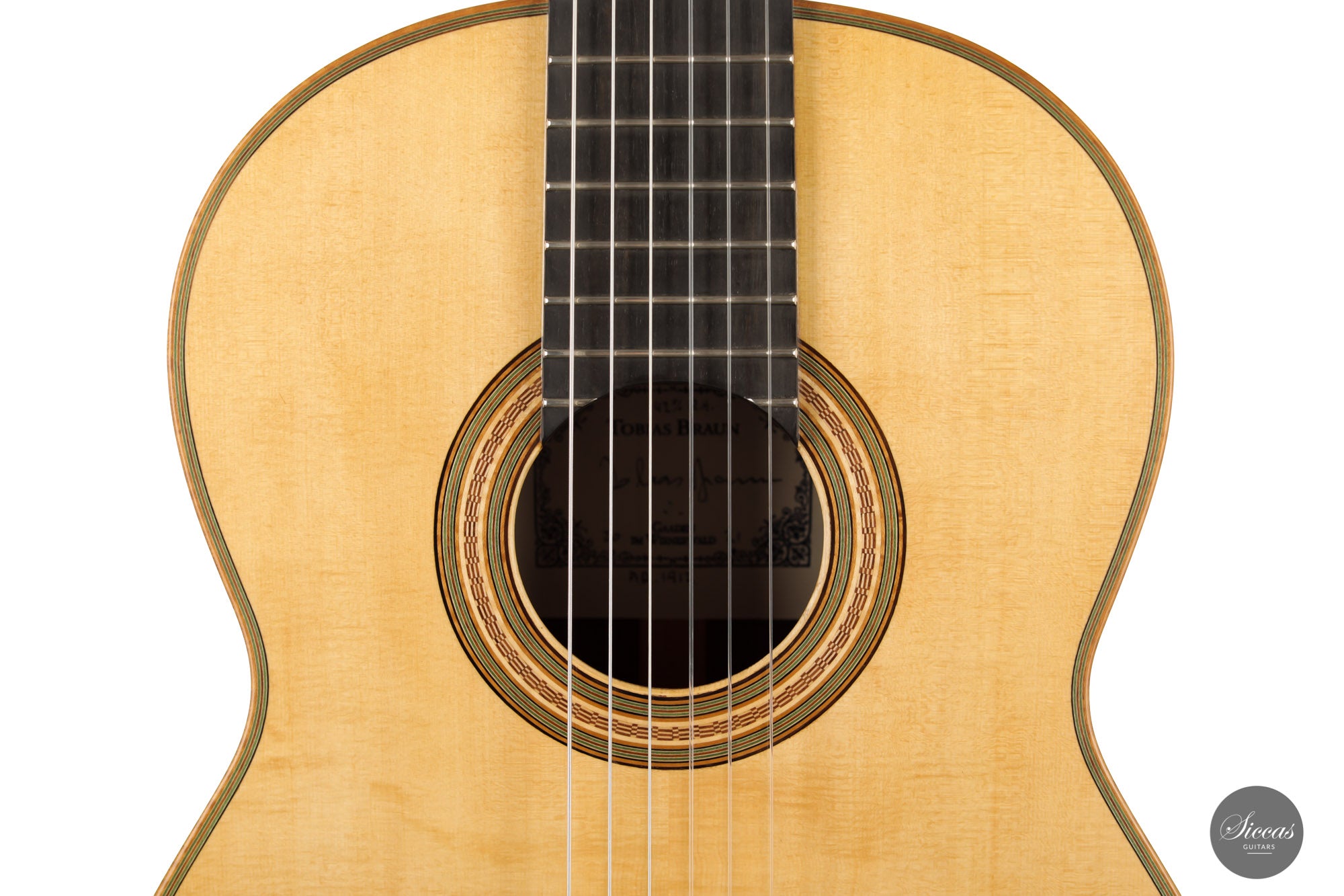 Tobias Braun was born in Holzminden, Germany in 1960. Shortly after, his family moved to Perchtoldsdorf near Vienna, Austria. In 1983 he built his first concert guitar and a year later he completed a course about guitar making taught by José Romanillos. A second course followed in 1988, and the third course in 1989. In the same year, he completed his master’s certificate in Vienna. Tobias Braun has dedicated himself to the traditional Spanish guitar building school. Many of his guitars are models of famous masters such as Santos Hernandez and Manuel Ramirez.