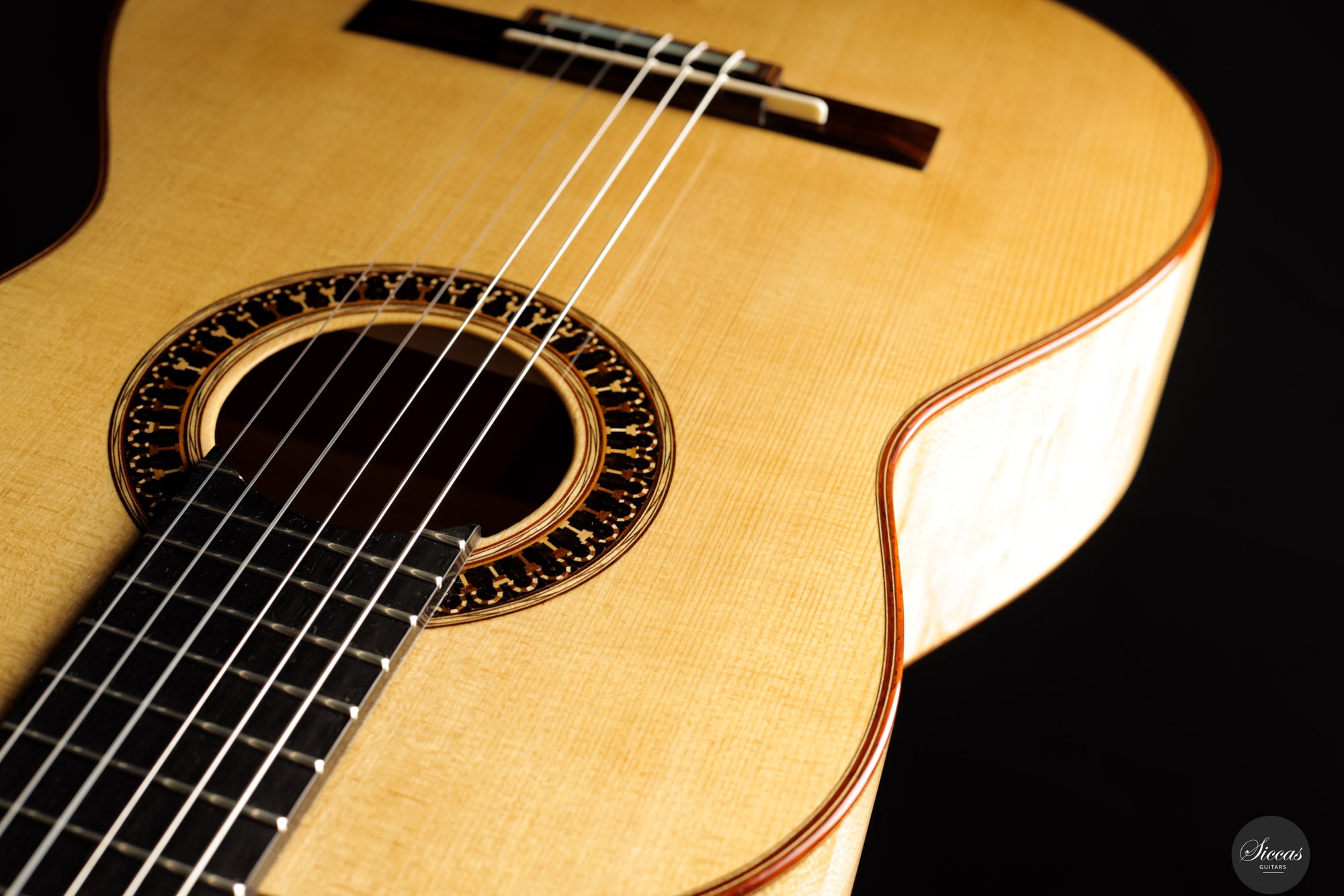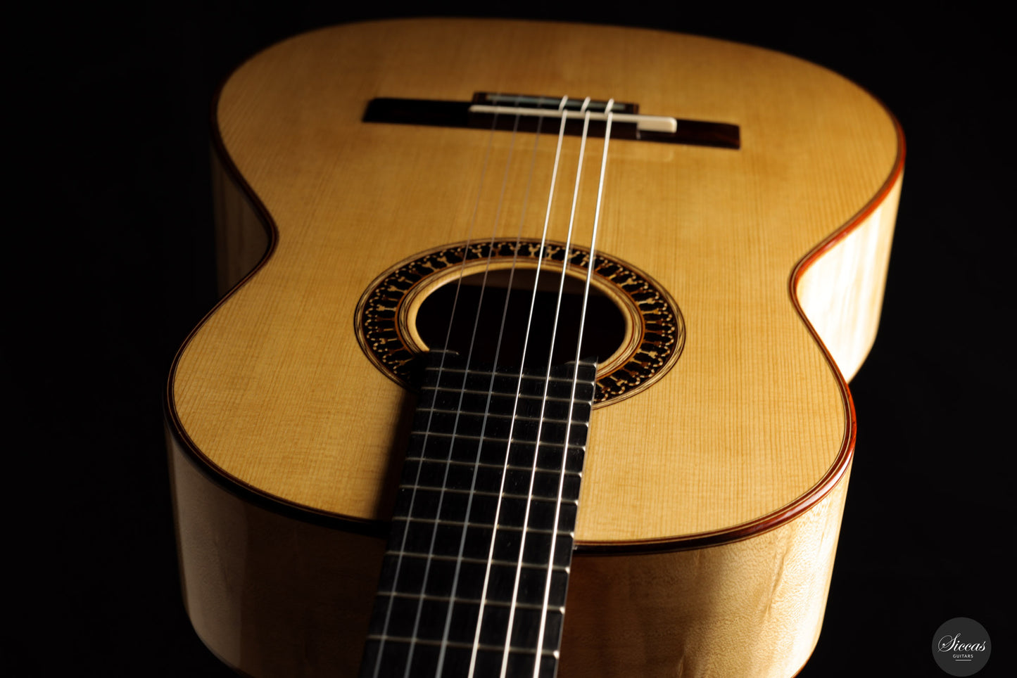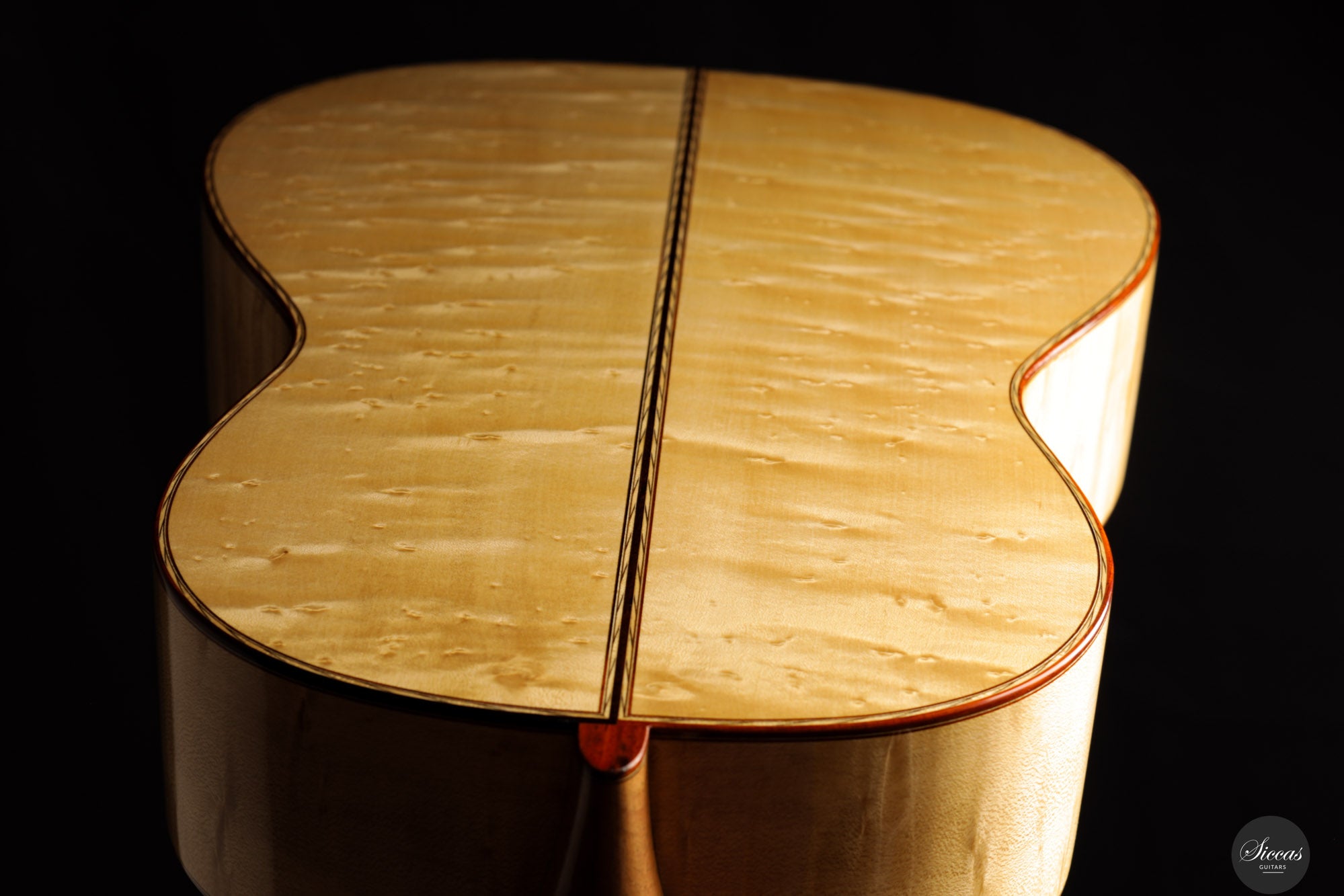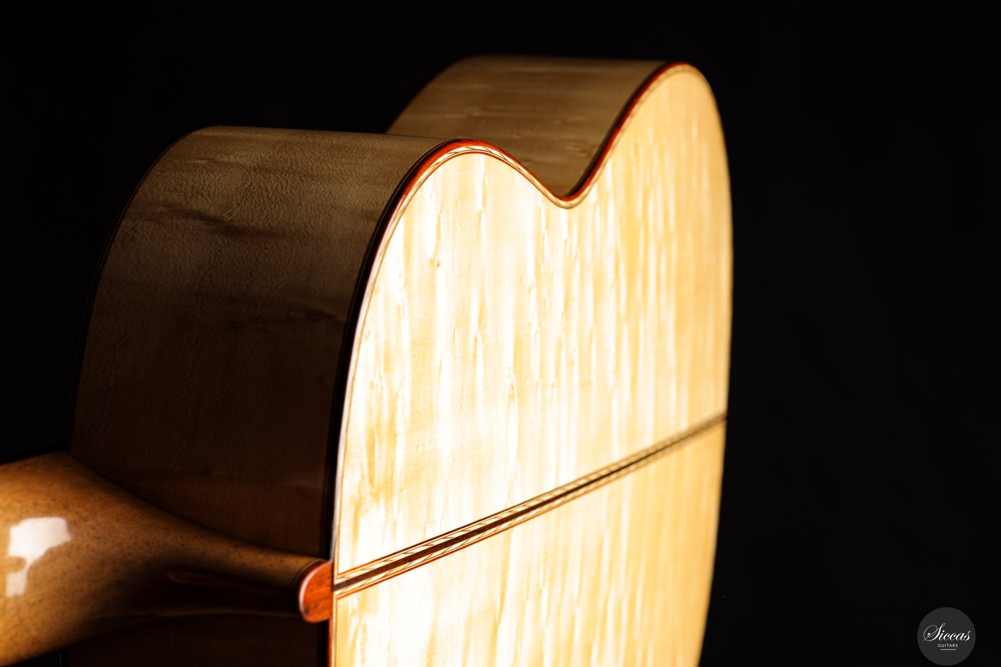 Das Romanillos-Modell von Tobias Braun mit Boden und Zargen aus Vogelaugenahorn erfreut sich derzeit großer Beliebtheit – und das aus gutem Grund. Diese Gitarre fängt nicht nur die Seele eines Romanillos-Instruments ein, sondern zeigt auch Tobias Brauns beeindruckende Interpretation einer erstklassigen Konzertgitarre.