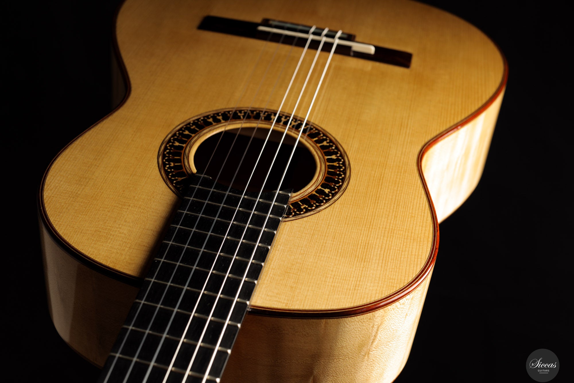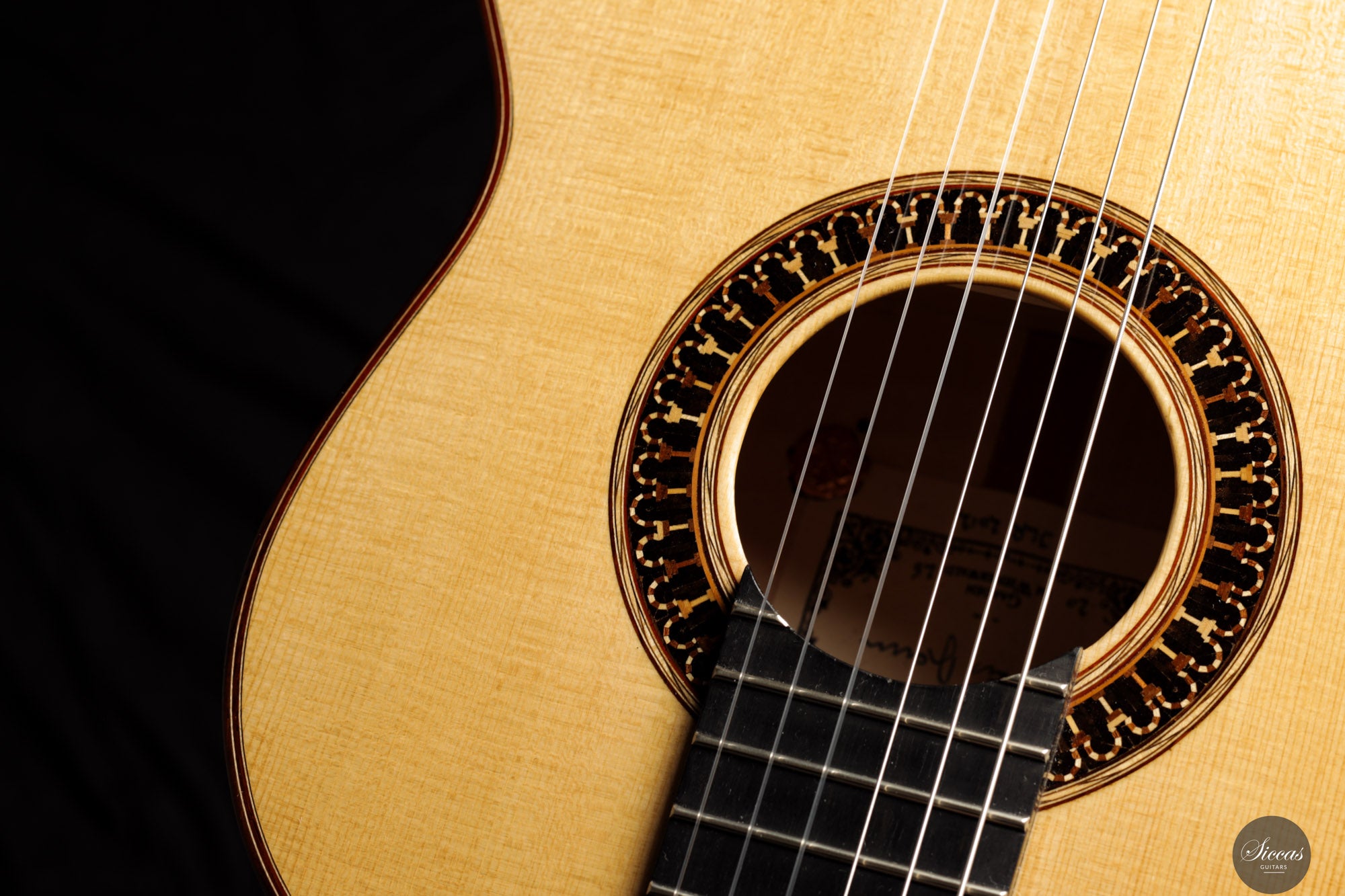 Die klassische Gitarre mit ihren weichen Nylonsaiten und ihrem charakteristischen Timbre ist zum Symbol der Kammermusik, der spanischen Tradition und des Konzertrepertoires geworden. Ihre moderne Form prägte Antonio de Torres im 19. Jahrhundert, indem er den Standard für Korpus, Fächerbeleistung und die 65-Zentimeter-Mensur setzte, die bis heute verwendet werden. Instrumente dieser Kategorie eröffnen eine reiche Palette von den feinen romantischen Miniaturen Tárregas bis zu den majestätischen Konzerten Rodrigos. Hier finden Sie Gitarren, die historische Kontinuität bewahren und zugleich zu neuen Interpretationen anregen.