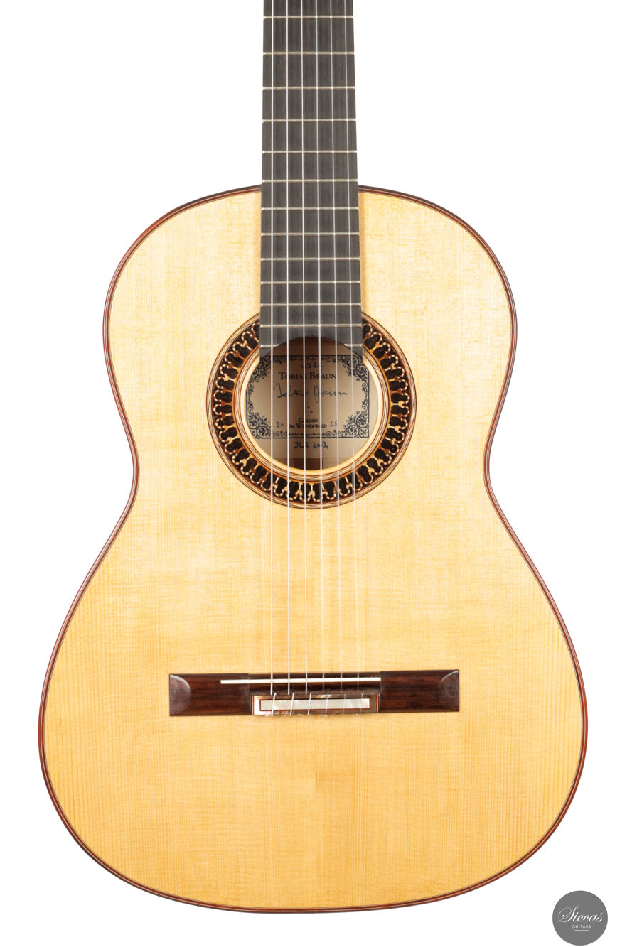 Tobias Braun wurde 1960 in Holzminden, Deutschland, geboren. Kurz darauf zog seine Familie nach Perchtoldsdorf bei Wien, Österreich. 1983 baute er seine erste Konzertgitarre und markierte damit den Beginn seiner Reise als Gitarrenbauer. Ein Jahr später absolvierte er seinen ersten Gitarrenbaukurs unter der Leitung des renommierten José Romanillos. Es folgten ein zweiter Kurs im Jahr 1988 und ein dritter im Jahr 1989, demselben Jahr, in dem Tobias seinen Meisterbrief in Wien erwarb. Mit einem tiefen Engagement für die traditionelle spanische Gitarrenbauschule widmet Tobias Braun einen Großteil seines Schaffens der Herstellung von Instrumenten, die von berühmten Meistern wie Santos Hernandez und Manuel Ramirez inspiriert sind.