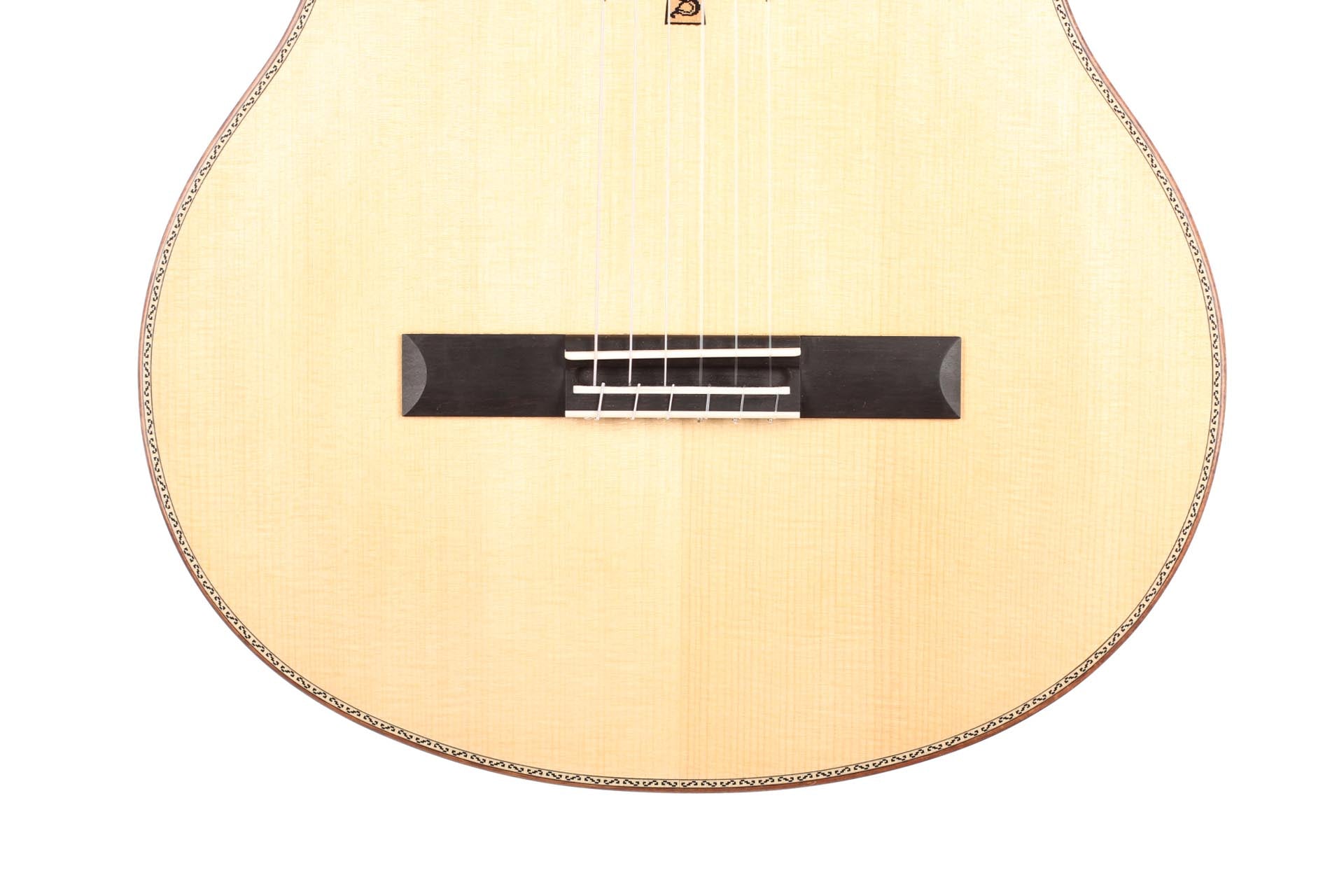 Die klassische Gitarre mit ihren weichen Nylonsaiten und ihrem charakteristischen Timbre ist zum Symbol der Kammermusik, der spanischen Tradition und des Konzertrepertoires geworden. Ihre moderne Form prägte Antonio de Torres im 19. Jahrhundert, indem er den Standard für Korpus, Fächerbeleistung und die 65-Zentimeter-Mensur setzte, die bis heute verwendet werden. Instrumente dieser Kategorie eröffnen eine reiche Palette von den feinen romantischen Miniaturen Tárregas bis zu den majestätischen Konzerten Rodrigos. Hier finden Sie Gitarren, die historische Kontinuität bewahren und zugleich zu neuen Interpretationen anregen.Alle Produkte der Kollektion ansehen -
