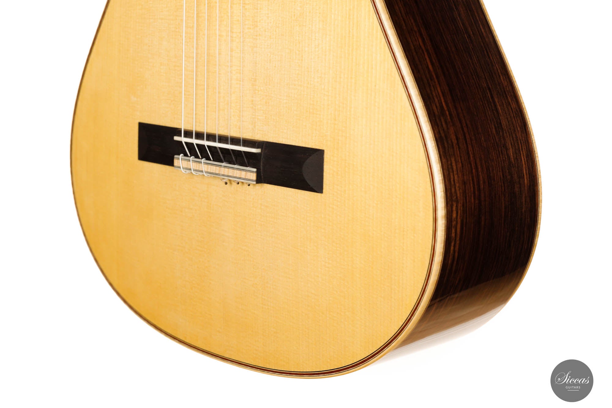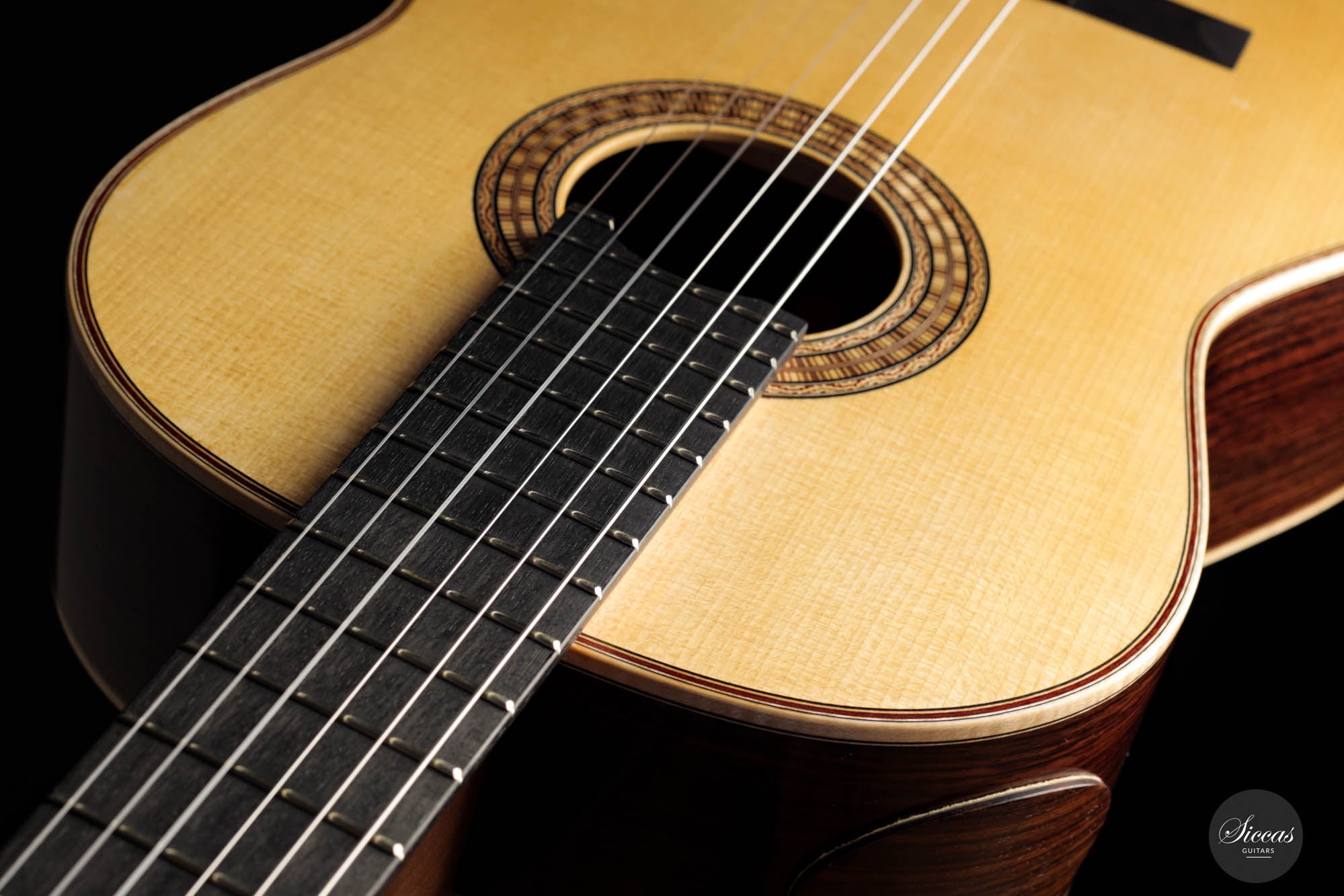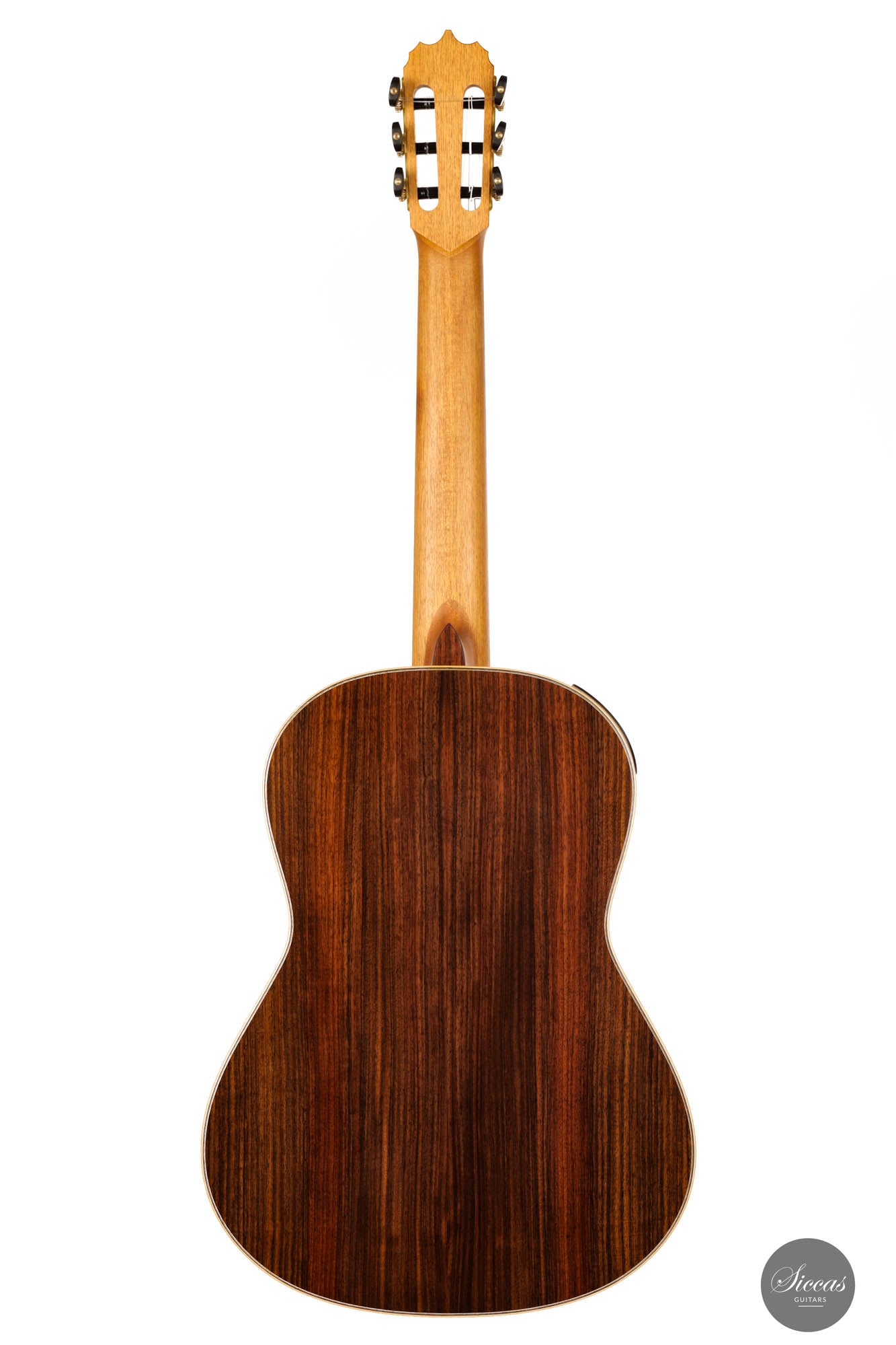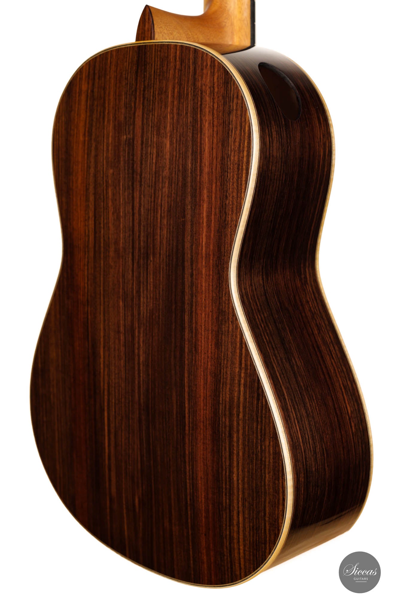 Die Konstruktionsmaterialien sind ein Zeugnis für die Qualität der Gitarre. Eine Fichtendecke ziert die Decke der Gitarre und sorgt für einen scharfen, klaren Ton und eine schnelle Reaktion auf Ihren Anschlag. Dazu kommt das für Boden und Zargen verwendete indische Palisander, ein Klassiker unter den Gitarrenbauern wegen seiner tiefen, resonanten tiefen Frequenzen und seiner Fähigkeit, ein breites Spektrum an klanglichen Möglichkeiten zu bieten.