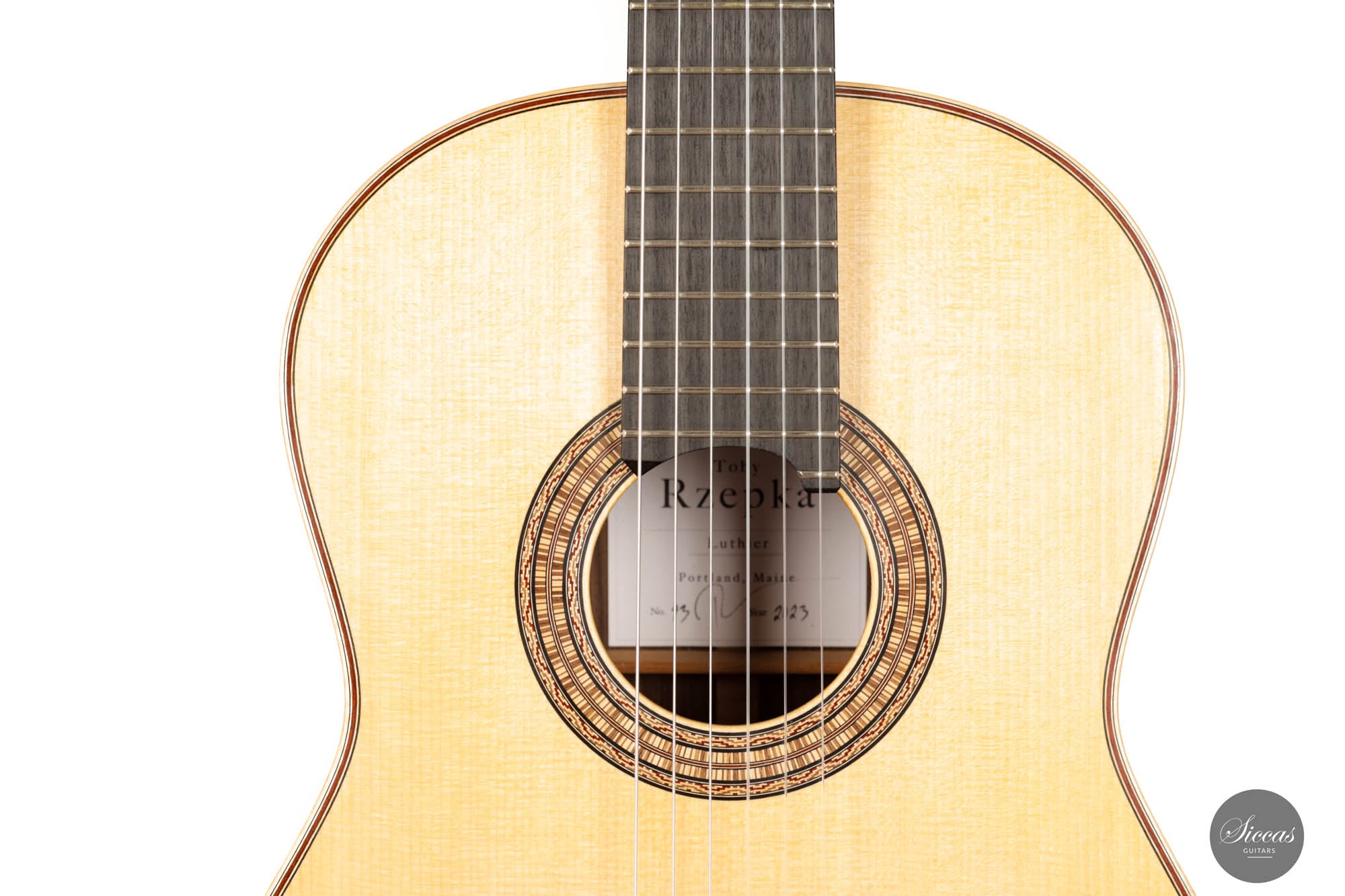 Toby Rzepkas sieht den klassischen Gitarrenbau als eine sich ständig weiterentwickelnde Kunst, sowohl für den einzelnen Gitarrenbauer als auch für das Handwerk als Ganzes. Gestaltung und Ausführung haben sich im Laufe der jahrhundertelangen Geschichte der Gitarre erheblich verändert. Die Tradition zu ehren bedeutet, sich weiterzuentwickeln und gleichzeitig den frühen Meistern der Gitarrenbaukunst zu ehren. Im Sinne dieses Gleichgewichts kombiniert Toby zeitgenössische Klanggestaltungstechniken mit klassischer Ästhetik. So kommen beim Bau einer Rzepka-Konzertgitarre Kunst, Wissenschaft und Instinkt zusammen, um das optimale Verhältnis von Ausgewogenheit, Klang und Spielgefühl zu erreichen.