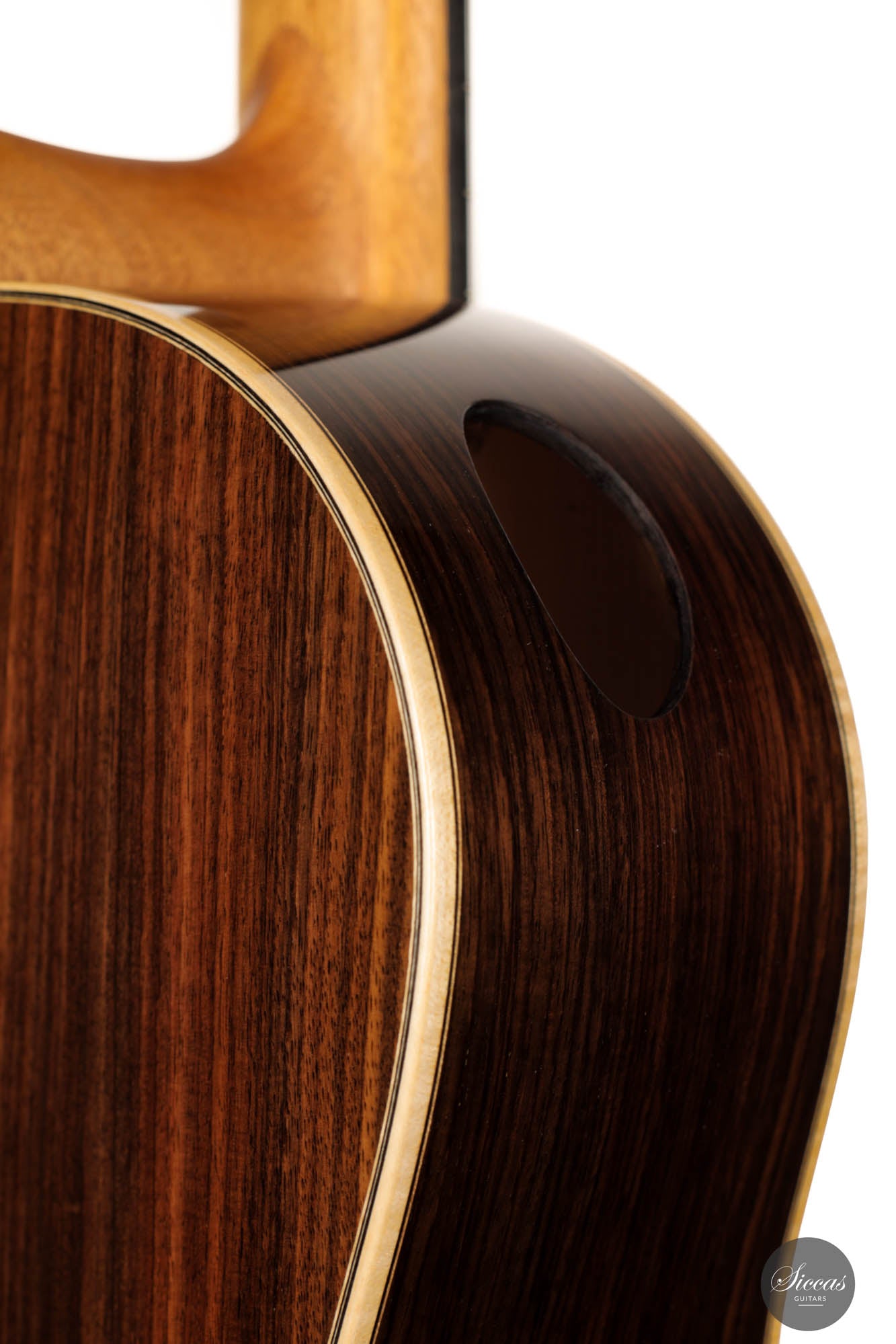 Diese Toby Rzepka-Gitarre ist nicht nur ein Musikinstrument, sondern ein Kunstwerk, das Tradition und Innovation vereint und den Respekt seines Schöpfers vor der Vergangenheit und seine Vision für die Zukunft widerspiegelt. Jeder angeschlagene Akkord ist ein Zeugnis von Tobys Handwerkskunst und liefert einen Klang, der unbestreitbar klar, ausgewogen und schön natürlich ist.