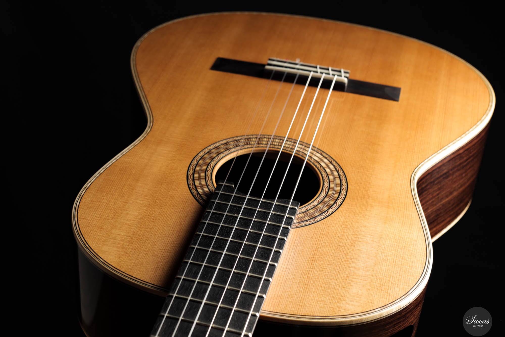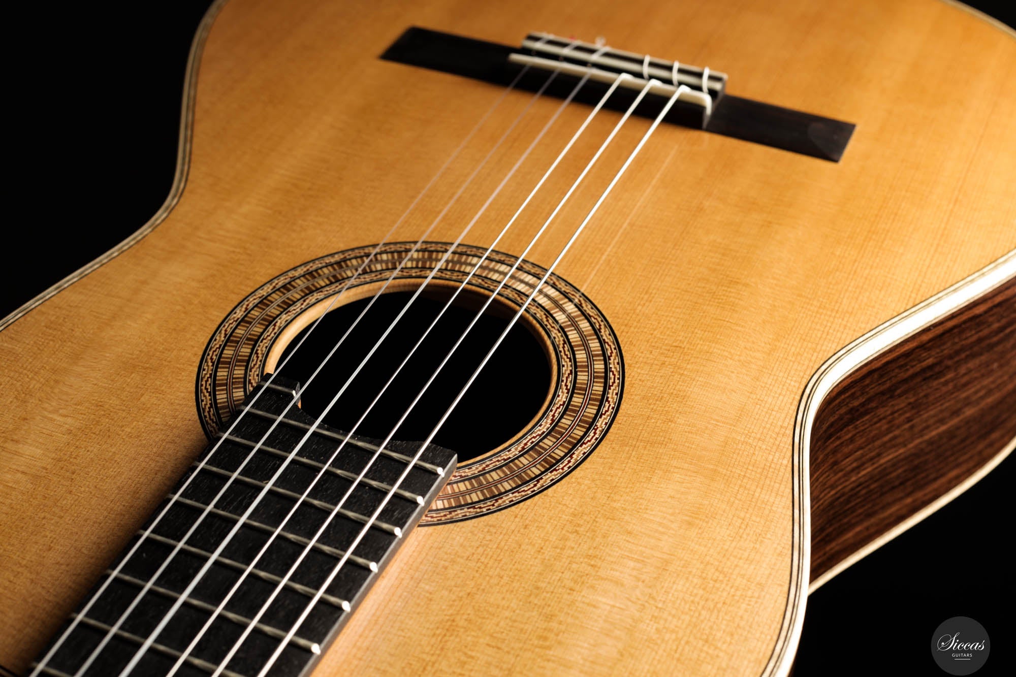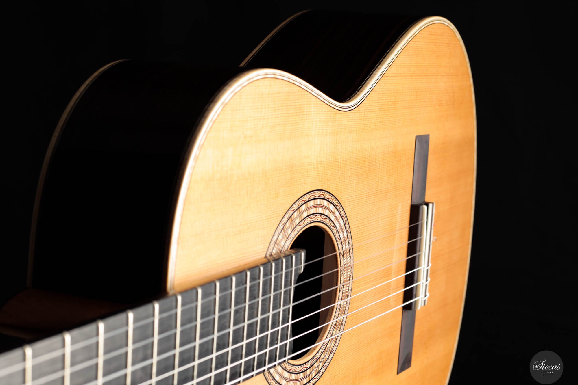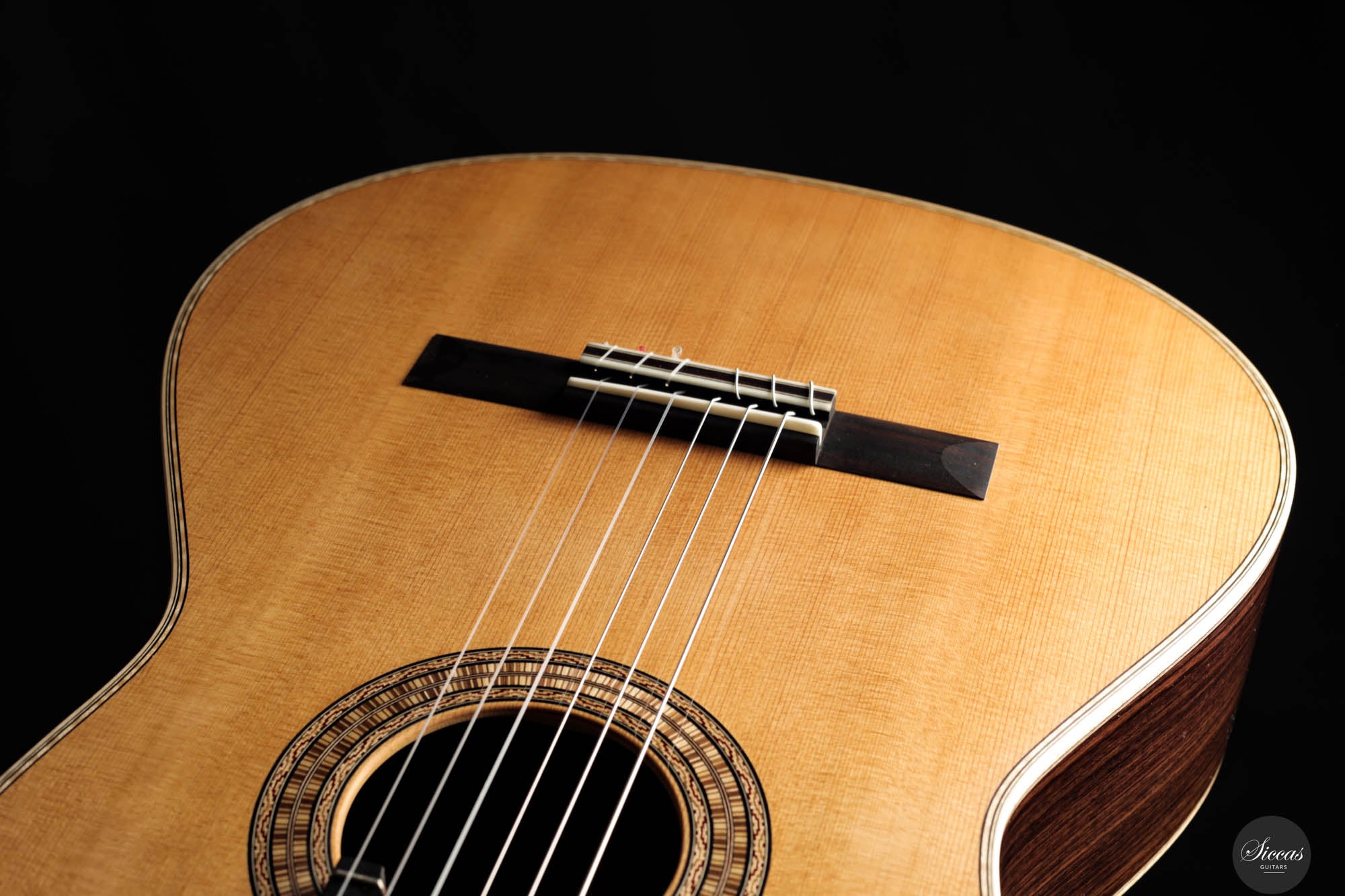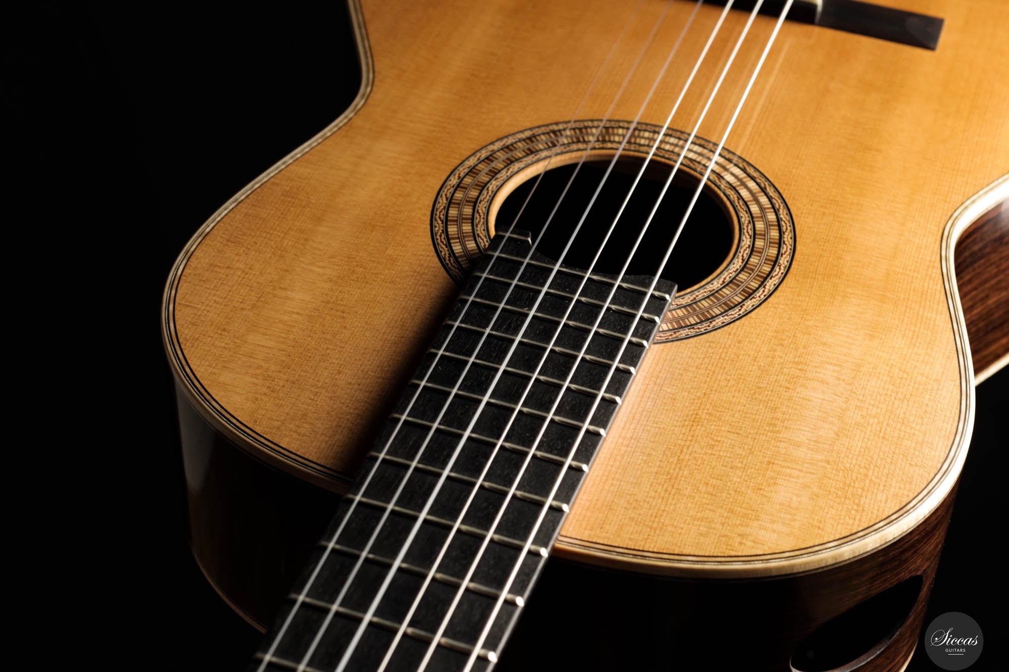 Die klassische Gitarre mit ihren weichen Nylonsaiten und ihrem charakteristischen Timbre ist zum Symbol der Kammermusik, der spanischen Tradition und des Konzertrepertoires geworden. Ihre moderne Form prägte Antonio de Torres im 19. Jahrhundert, indem er den Standard für Korpus, Fächerbeleistung und die 65-Zentimeter-Mensur setzte, die bis heute verwendet werden. Instrumente dieser Kategorie eröffnen eine reiche Palette von den feinen romantischen Miniaturen Tárregas bis zu den majestätischen Konzerten Rodrigos. Hier finden Sie Gitarren, die historische Kontinuität bewahren und zugleich zu neuen Interpretationen anregen.