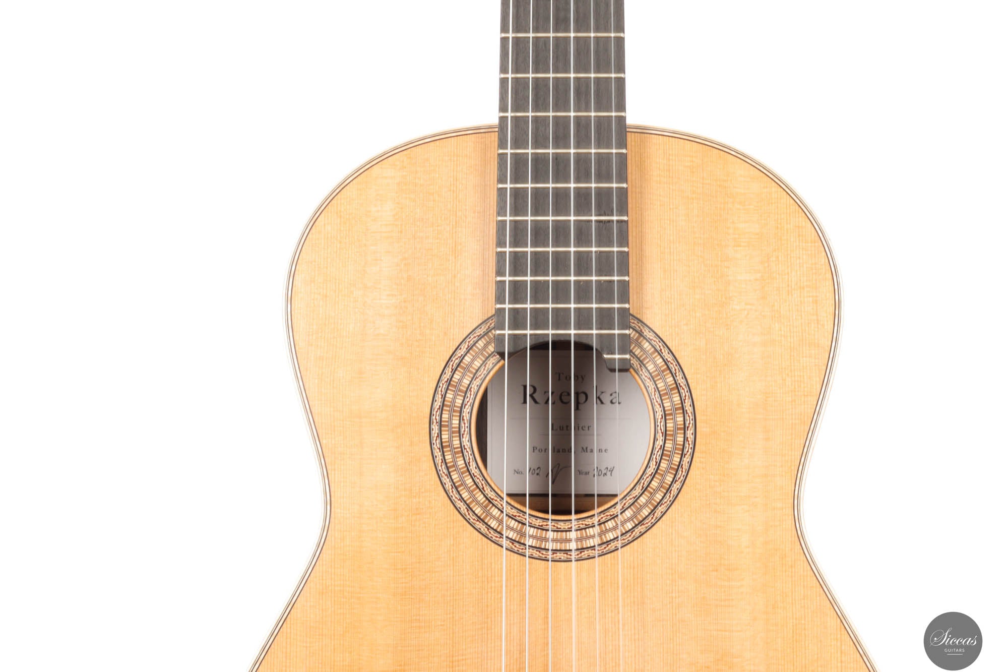 Toby Rzepka begann seinen Weg im Gitarrenbau vor über zwei Jahrzehnten, im Jahr 2001, nachdem er bei Walter Stanul an der School of the Museum of Fine Arts in Boston studiert hatte. Anschließend verfeinerte er seine Fähigkeiten bei dem renommierten US-Gitarrenbauer Stephan Connor und widmete sich später dem Studium von Barock- und Renaissanceluthierie am West Dean College of Arts and Conservation in England. Für sein Engagement und Talent wurde er 2008 mit dem President’s Award und einer Auszeichnung geehrt. Für Toby ist der klassische Gitarrenbau keine statische Tradition, sondern eine sich ständig weiterentwickelnde Kunstform. Er verbindet Innovation mit der Wertschätzung für die frühen Meister und vereint moderne Klangdesign-Techniken mit klassischer Ästhetik.