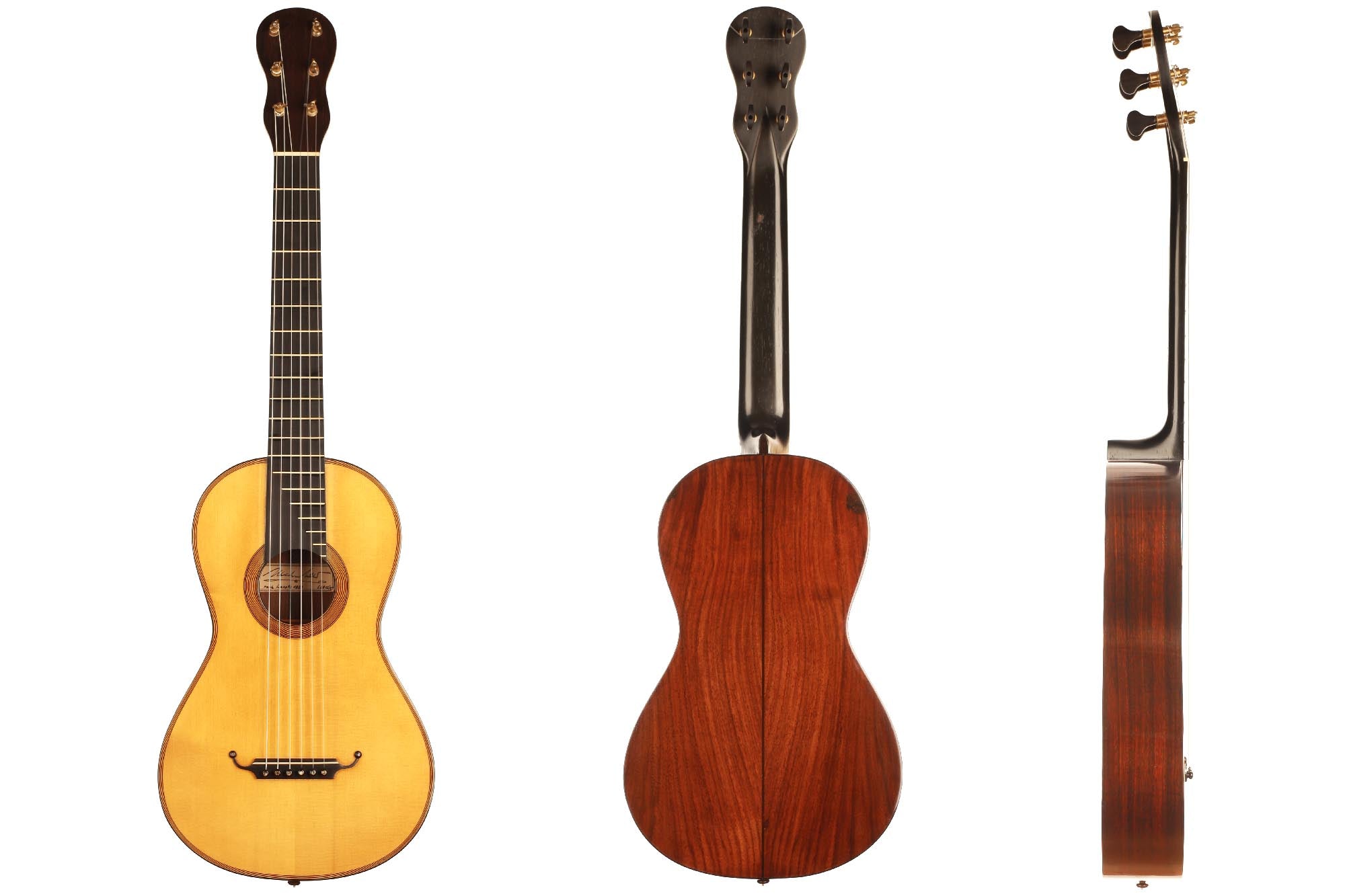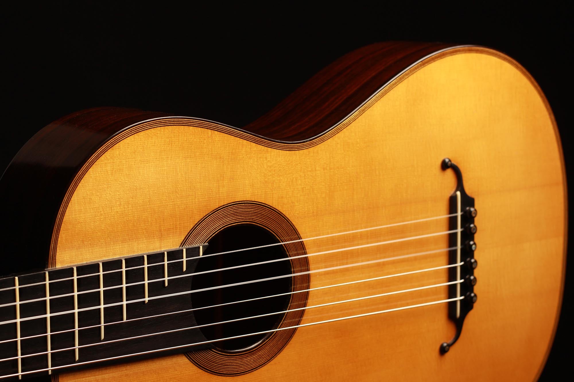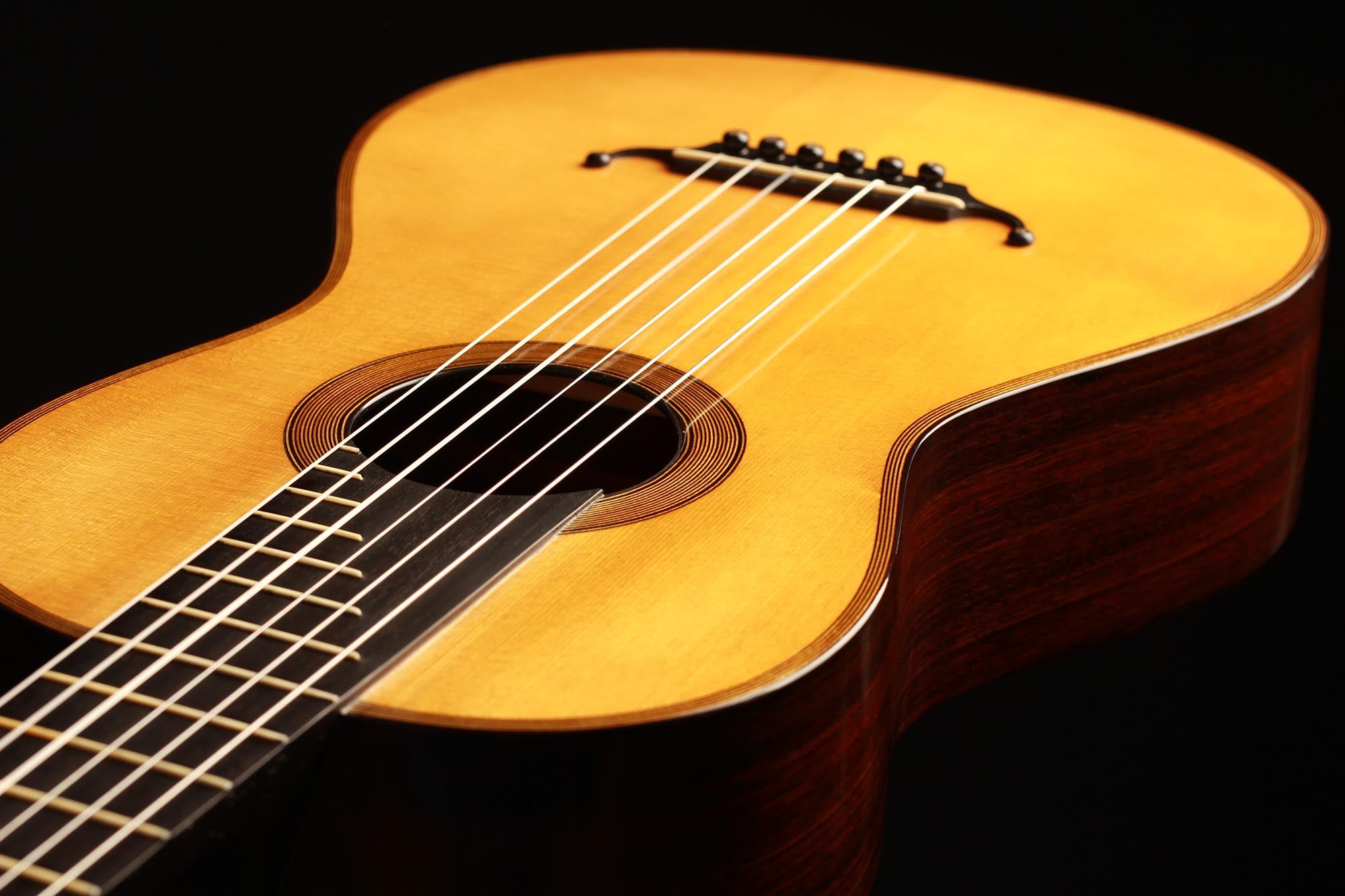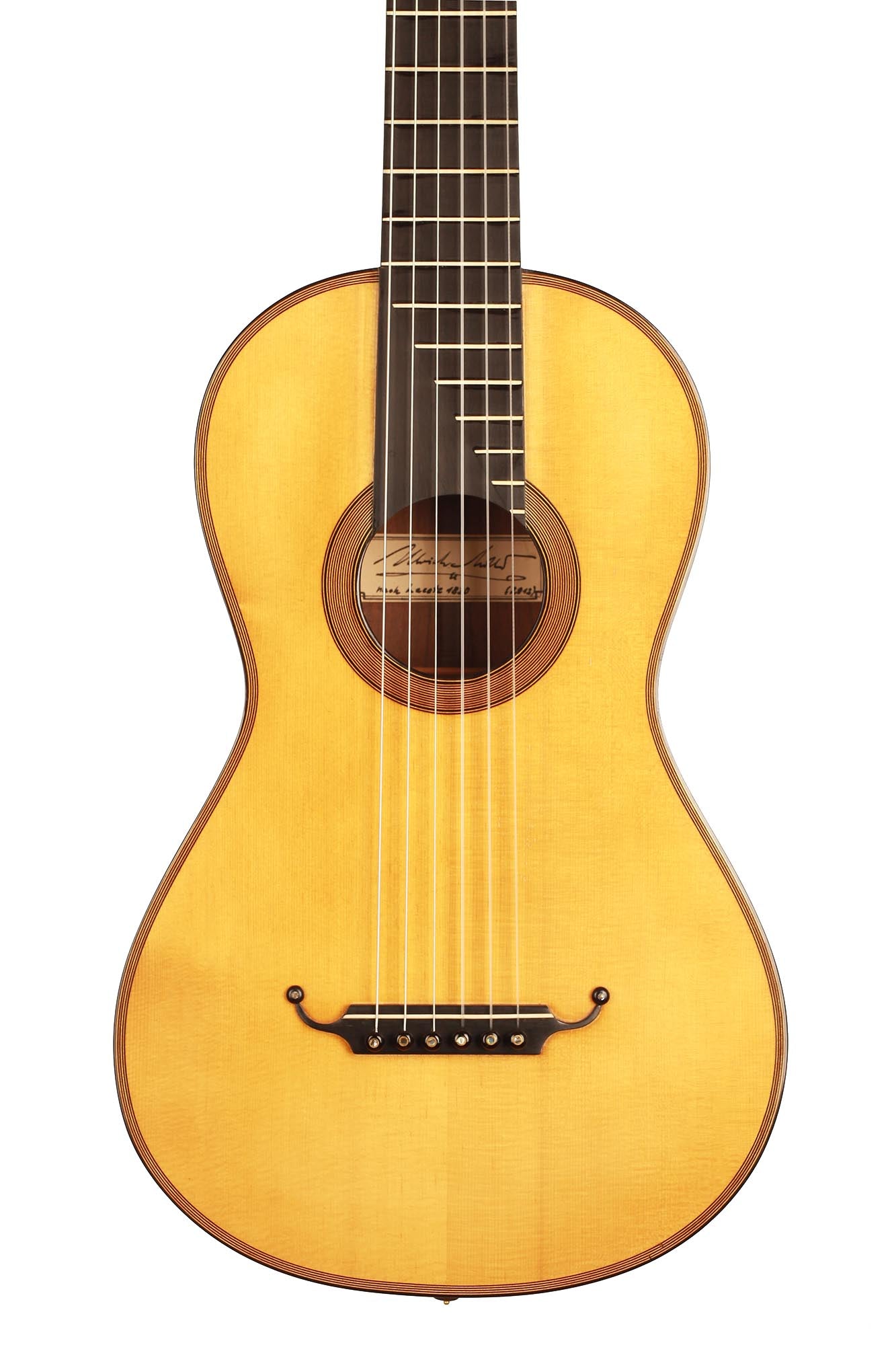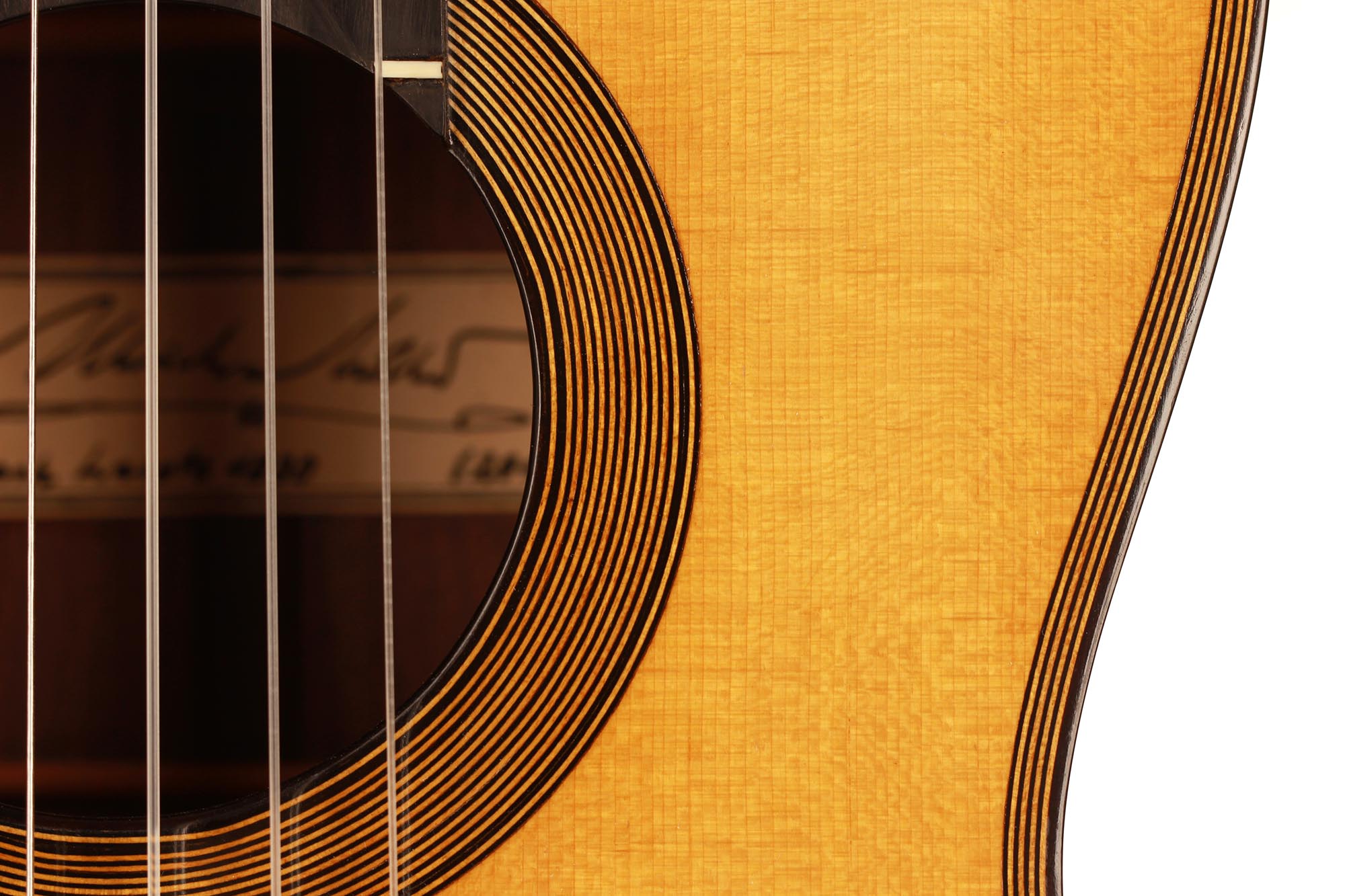 Der Klang ist wunderschön, sehr rein und elegant. Lacôte Replika Mechaniken von Alessi sorgen für eine Feinabstimmung und das Setup ist perfekt. Diese sehr leichte Gitarre wiegt weniger als ein Kilogramm. Die sehr schnelle Ansprache passt perfekt zu ihrem kristallinen und authentischen Klang. Dieses vielschichtige Instrument ist ideal für jeden Liebhaber der romantischen Epoche.