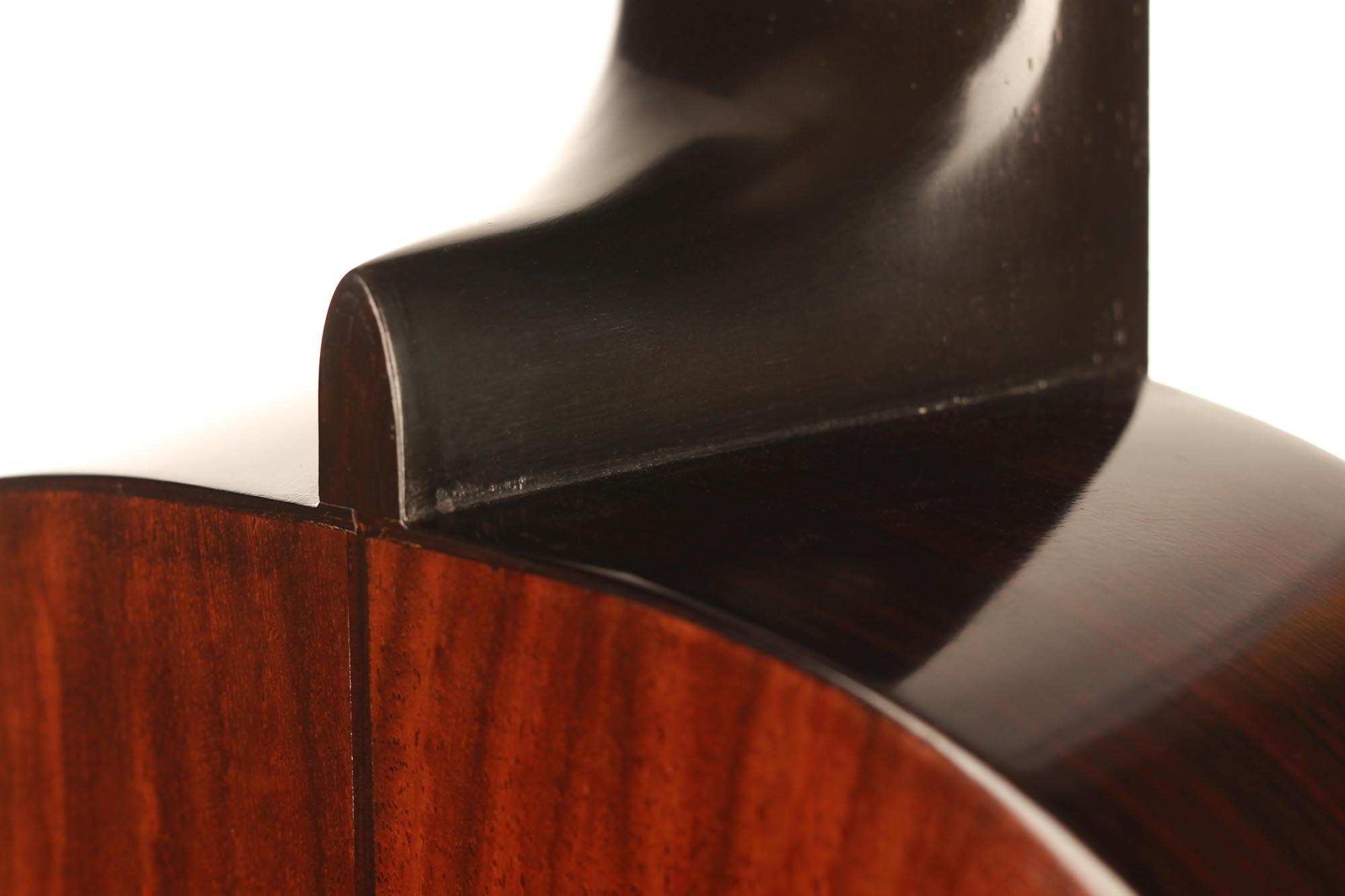 Was für ein schönes 1830er René Lacôte Modell des deutschen Gitarrenbauers Ulrich Müller. Diese sehr schöne romantische Gitarre hat einige ganz besondere Eigenschaften, die die dem modernen Gitarristen entgegenkommen. Zum Beispiel ist der Sattel 48 mm breit, was der normalen Größe der klassischen Gitarre sehr nahe kommt. Dies ist ein echter Segen für Gitarristen mit großen Händen, im Vergleich zu dem üblichen kleinen Saitenabstand der romantischen Gitarren. Nur wenige oberflächliche Spielspuren sind auf der Decke sichtbar. Abgesehen davon ist diese Gitarre in einem ausgezeichneten Zustand.