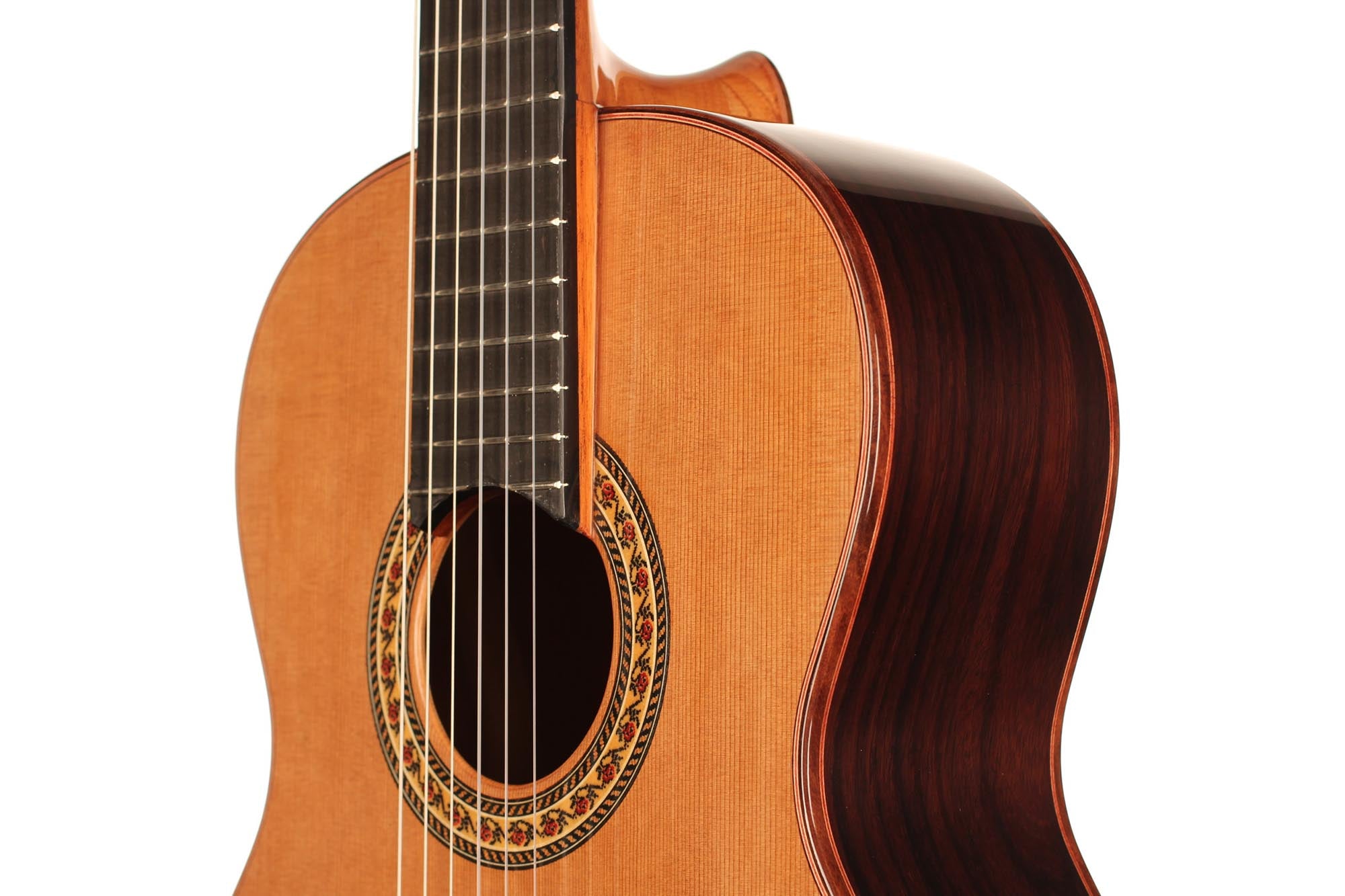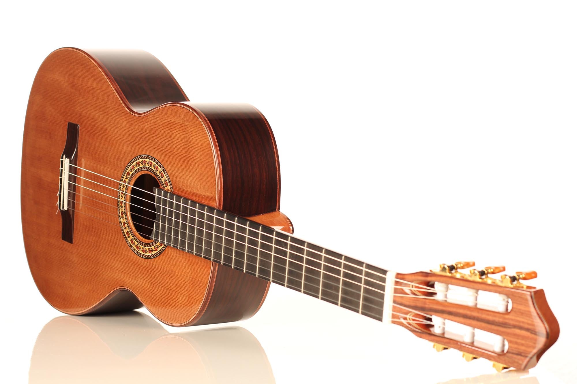 Die klassische Gitarre mit ihren weichen Nylonsaiten und ihrem charakteristischen Timbre ist zum Symbol der Kammermusik, der spanischen Tradition und des Konzertrepertoires geworden. Ihre moderne Form prägte Antonio de Torres im 19. Jahrhundert, indem er den Standard für Korpus, Fächerbeleistung und die 65-Zentimeter-Mensur setzte, die bis heute verwendet werden. Instrumente dieser Kategorie eröffnen eine reiche Palette von den feinen romantischen Miniaturen Tárregas bis zu den majestätischen Konzerten Rodrigos. Hier finden Sie Gitarren, die historische Kontinuität bewahren und zugleich zu neuen Interpretationen anregen.Alle Produkte der Kollektion ansehen -