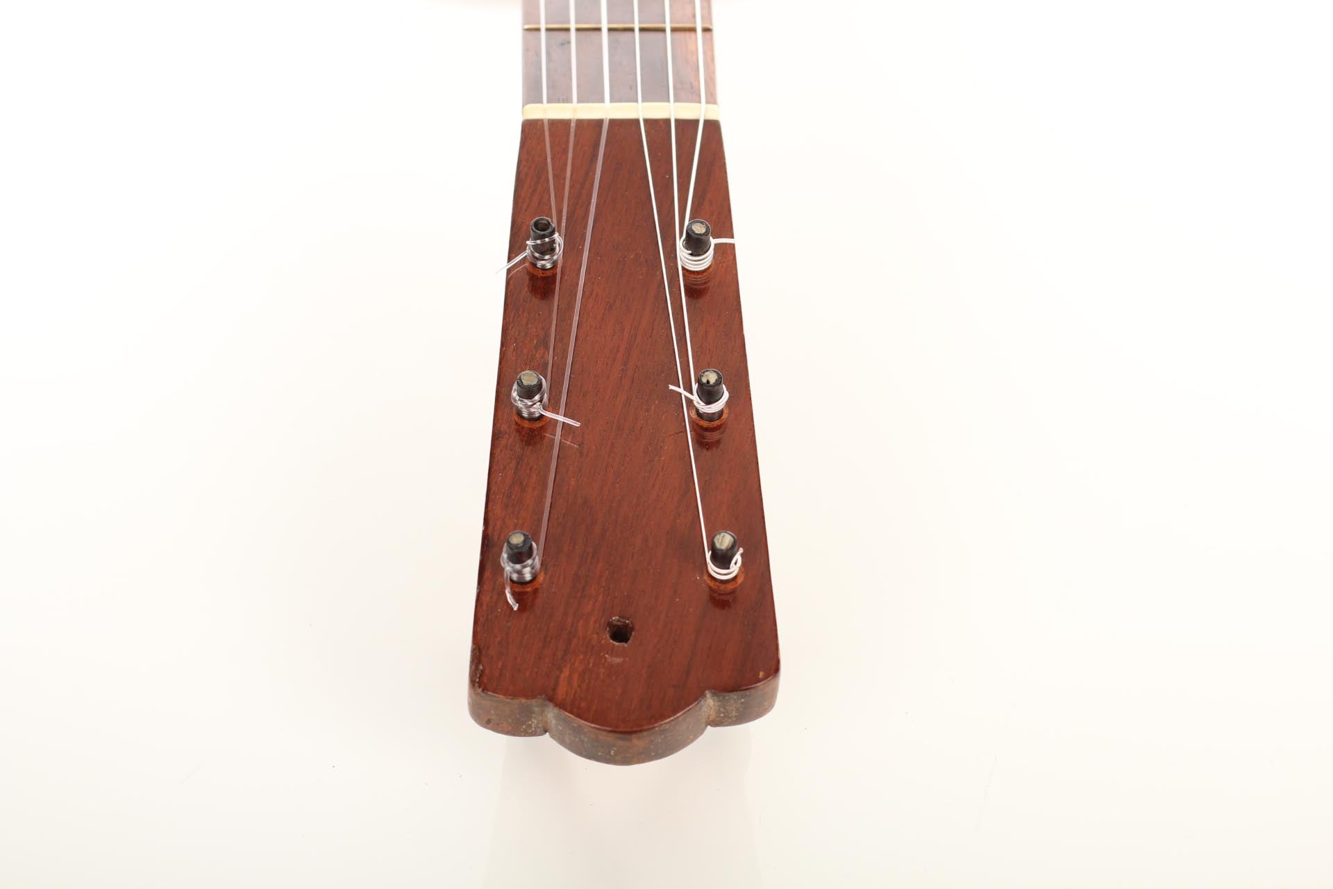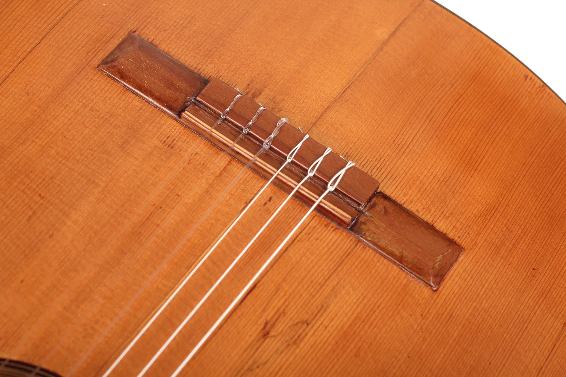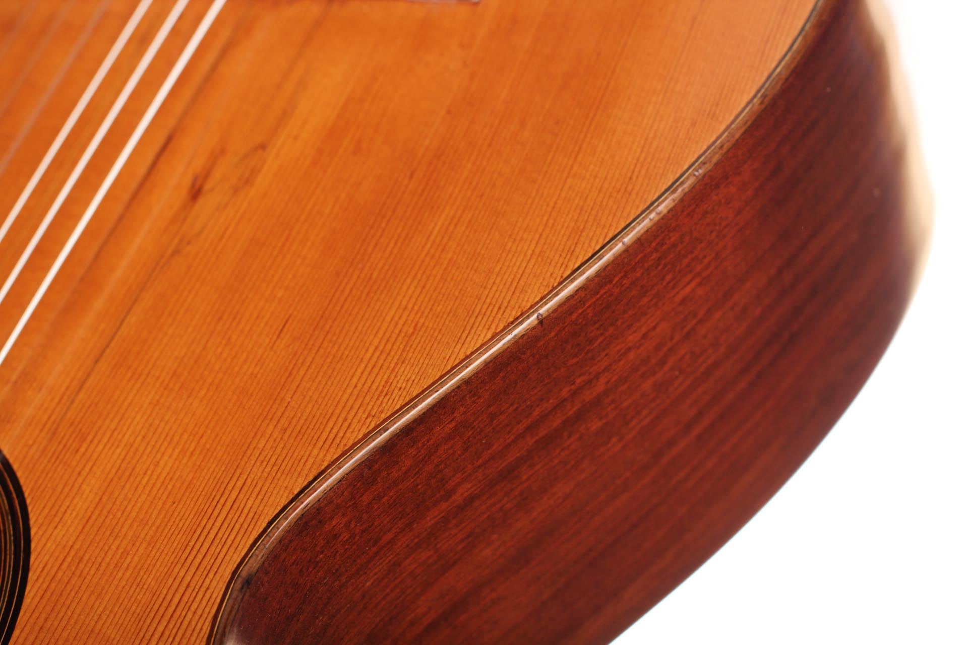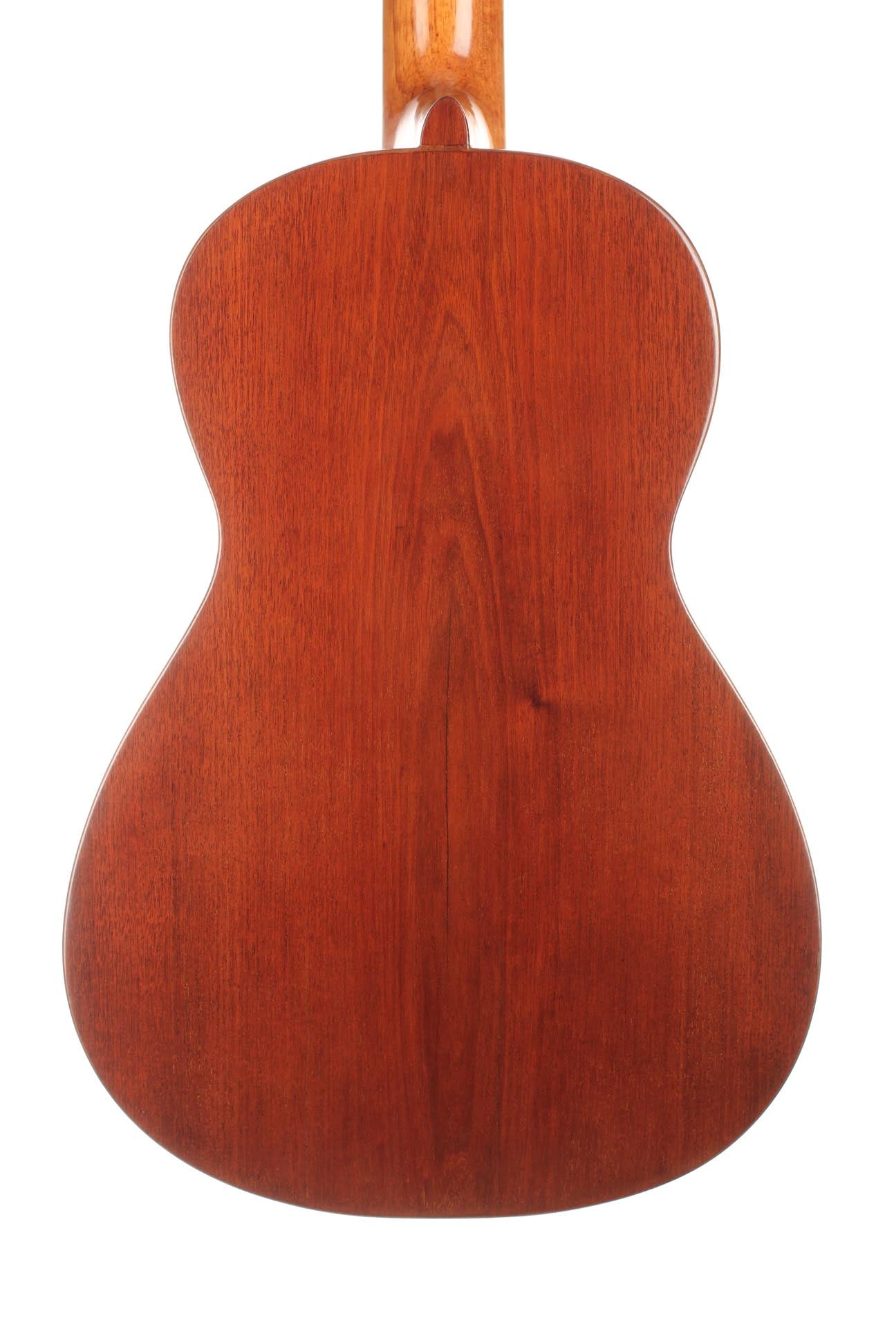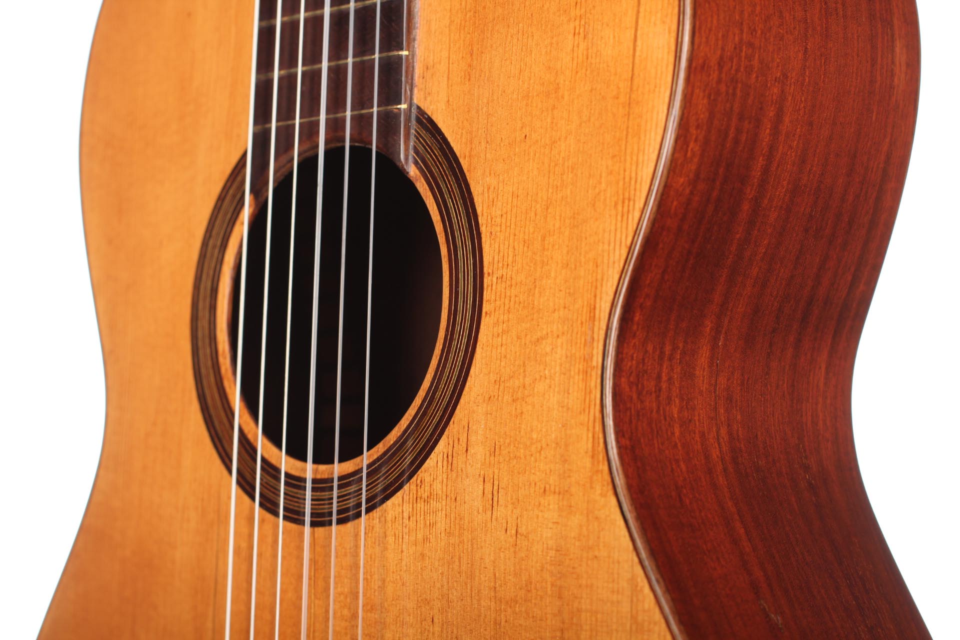 This guitar has THE sound. The timbre of this instrument is tremendously profound and complex, slightly dark. Even though it is small bodied, the volume and projection of the guitar are stunning. It is an inviting and transporting guitar that will seduce any collector or old-world sound lover. Hard-shell case included.