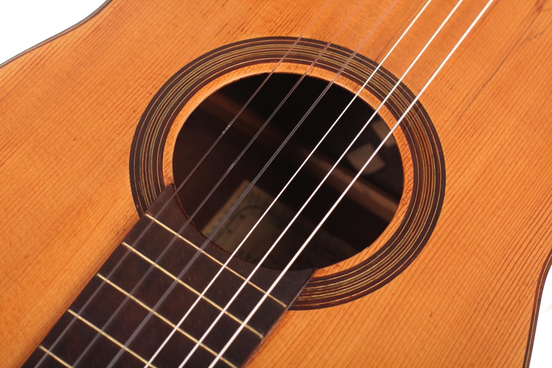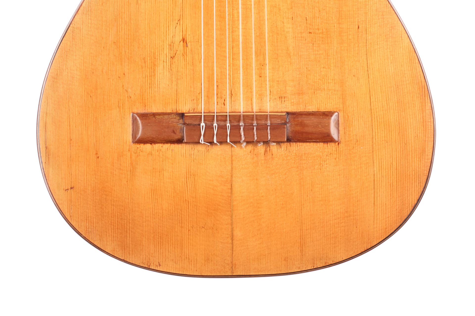 This instrument was built in 1874 and the overall condition is great for such an antique guitar! The pictures are showing faithfully the few repaired cracks on the top, the back, and the side patch. The guitar is now perfectly stable, set up and delightful to play.