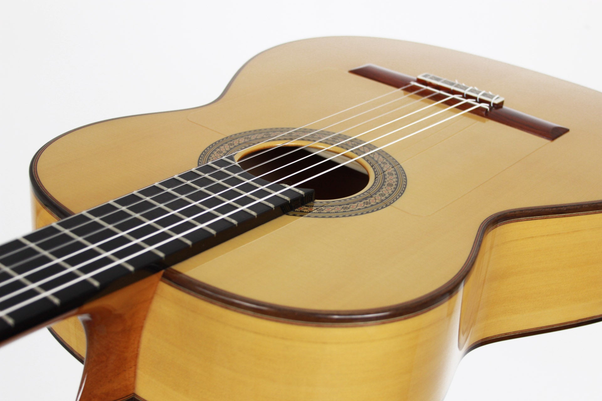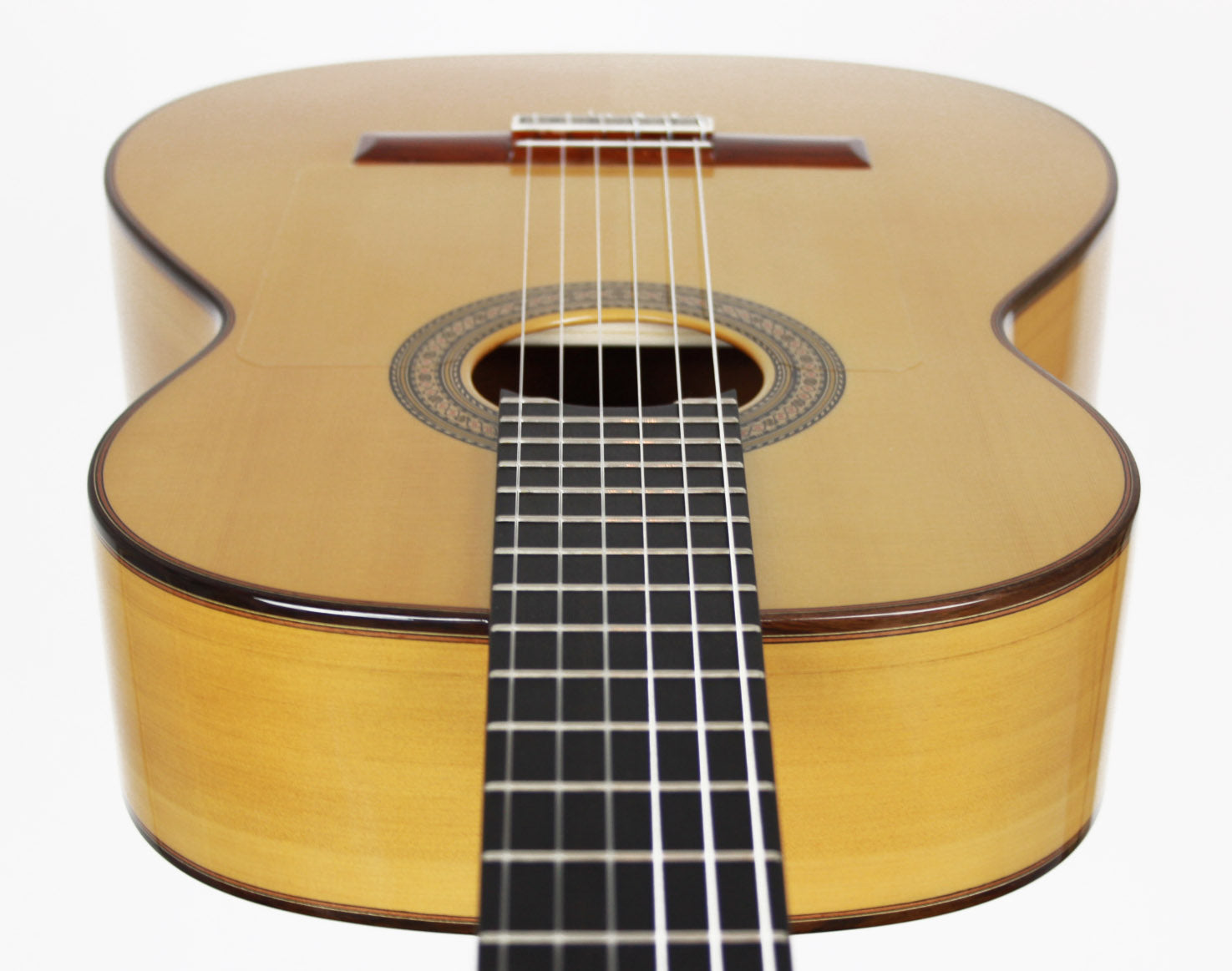 Die klassische Gitarre mit ihren weichen Nylonsaiten und ihrem charakteristischen Timbre ist zum Symbol der Kammermusik, der spanischen Tradition und des Konzertrepertoires geworden. Ihre moderne Form prägte Antonio de Torres im 19. Jahrhundert, indem er den Standard für Korpus, Fächerbeleistung und die 65-Zentimeter-Mensur setzte, die bis heute verwendet werden. Instrumente dieser Kategorie eröffnen eine reiche Palette von den feinen romantischen Miniaturen Tárregas bis zu den majestätischen Konzerten Rodrigos. Hier finden Sie Gitarren, die historische Kontinuität bewahren und zugleich zu neuen Interpretationen anregen.Alle Produkte der Kollektion ansehen -