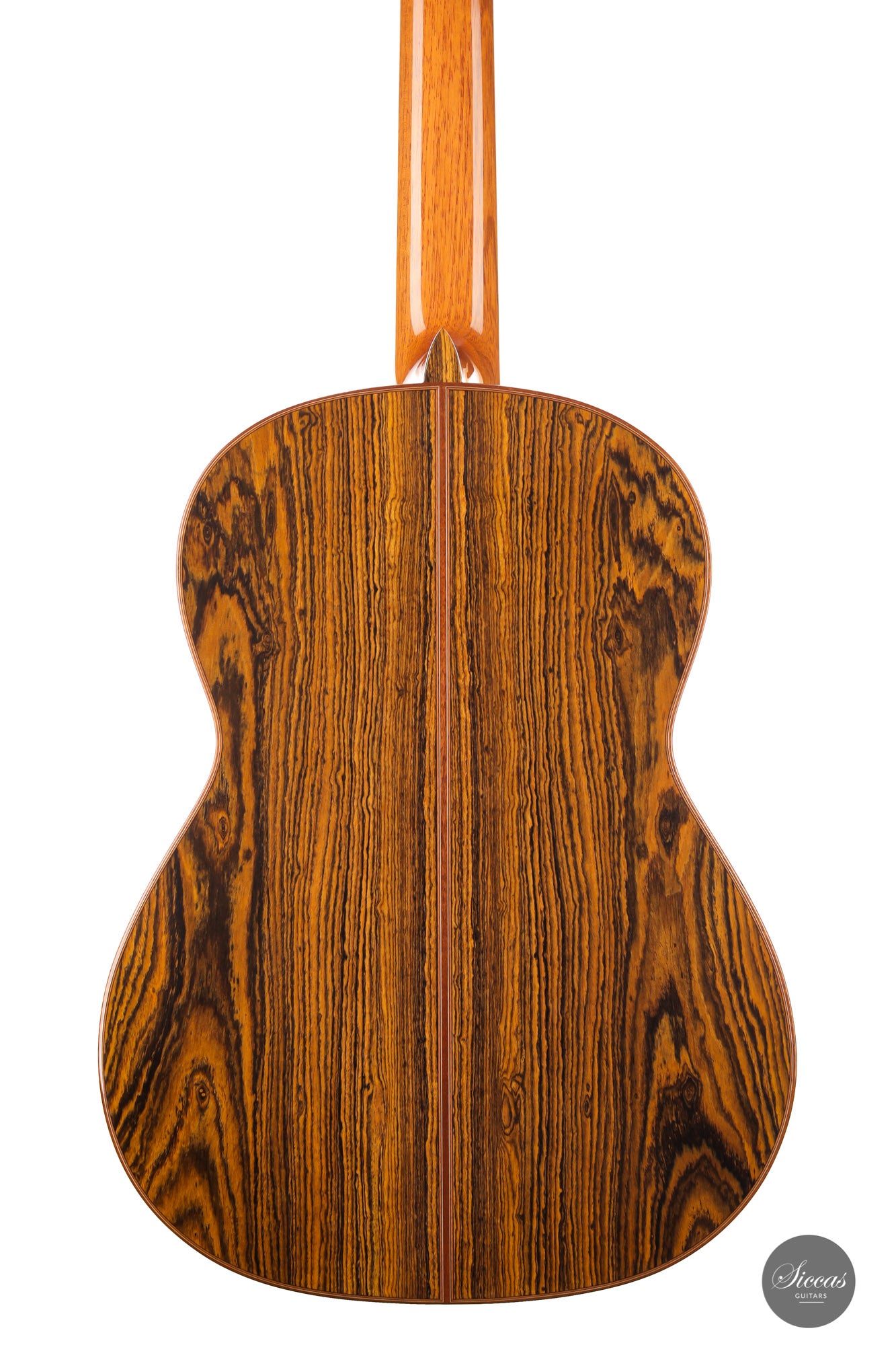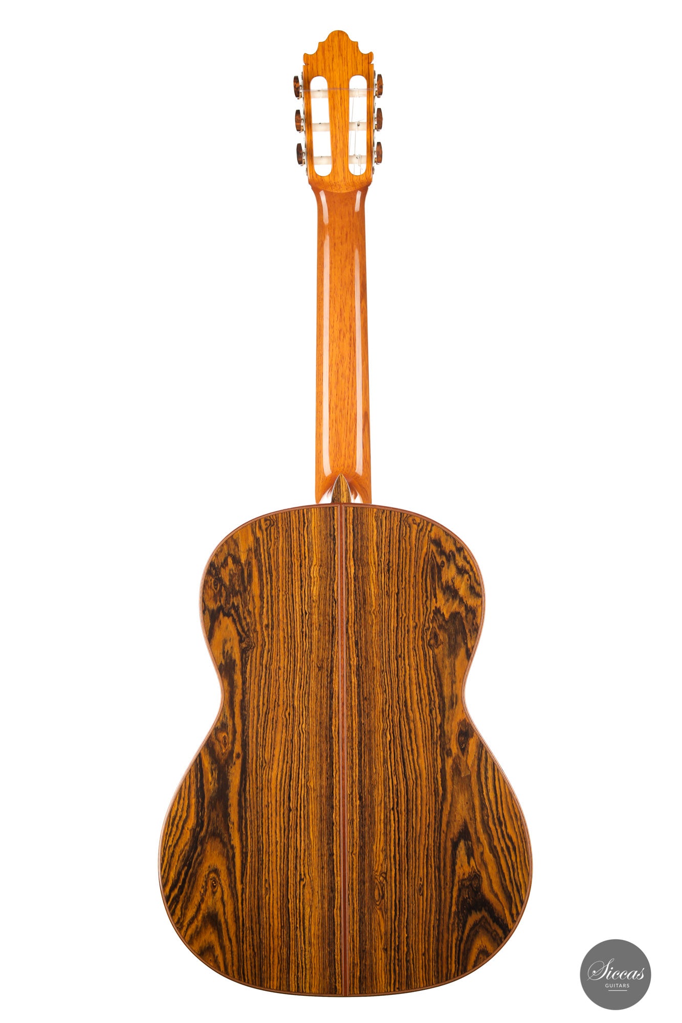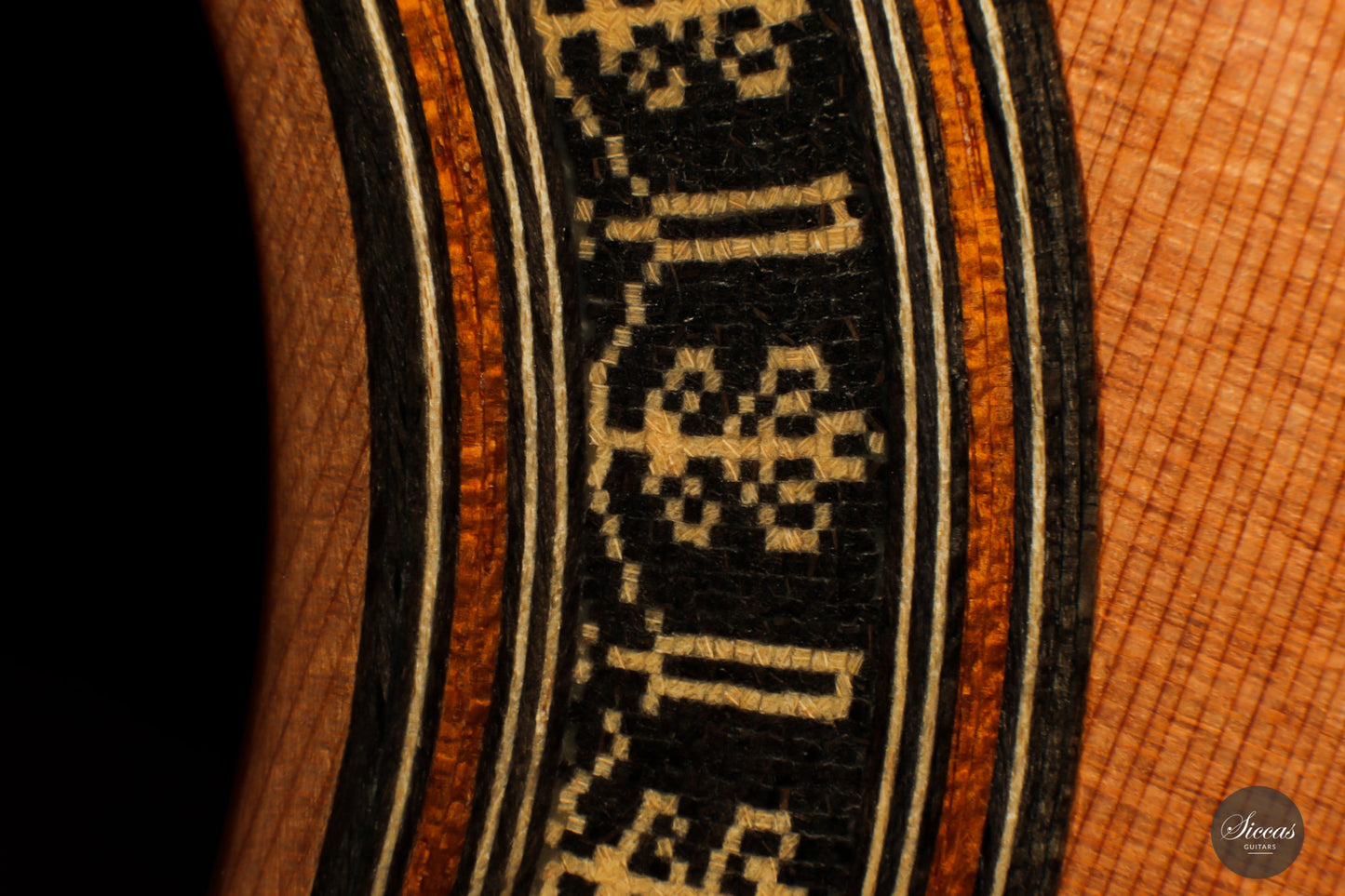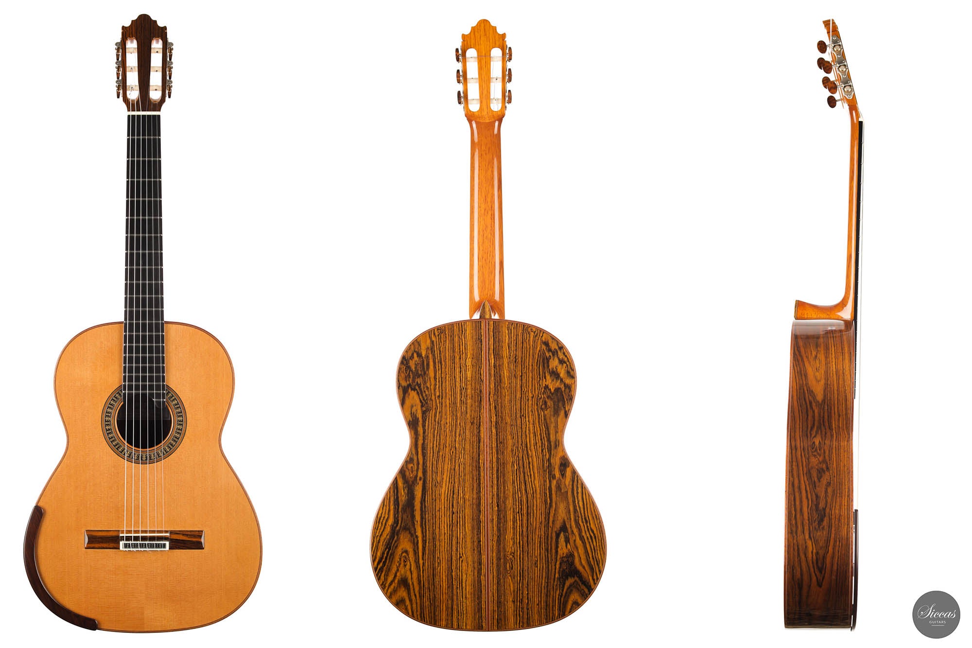 Diese wunderschöne Gitarre ist mit Boden und Zargen aus Bocote , was sowohl eine exotische und zugleich edle Optik mitbringt, und mit einer feinen Zederndecke gebaut. Man muss nur minimalen Aufwand in der rechten Hand betreiben, um aufgrund der tollen Ansprache maximale Projektion und Lautstärke zu erhalten. Klangkraft, Projektion und ein fast unendlich scheinendes Sustain sind nur einige Eigenschaften, die dieses Herencia-Modell mit Gitterbeleistung von Vicente Carrillo auszeichnen. Jede Gitarre, die mit den absolut besten handverlesenen Hölzern aus seinem Holzvorrat gebaut wurde, ist sowohl ein Kunstwerk als auch ein Instrument der höchsten Qualität für musikalische Ansprüche. Das Herencia-Modell besitzt aber nicht nur eine großes Klangvolumen, sondern auch ein süßes Timbre mit glockenartigen Höhen. Innovation und Tradition in perfekter Harmonie - eine Gitarre, die geschaffen wurde, um viele Jahre lang gespielt zu werden.