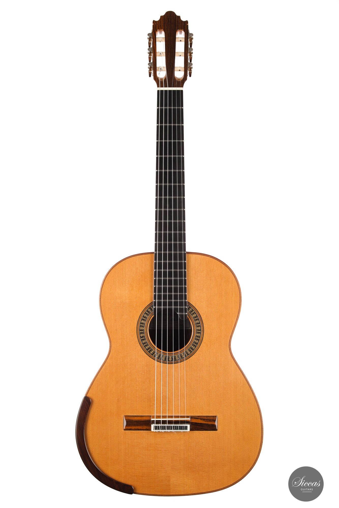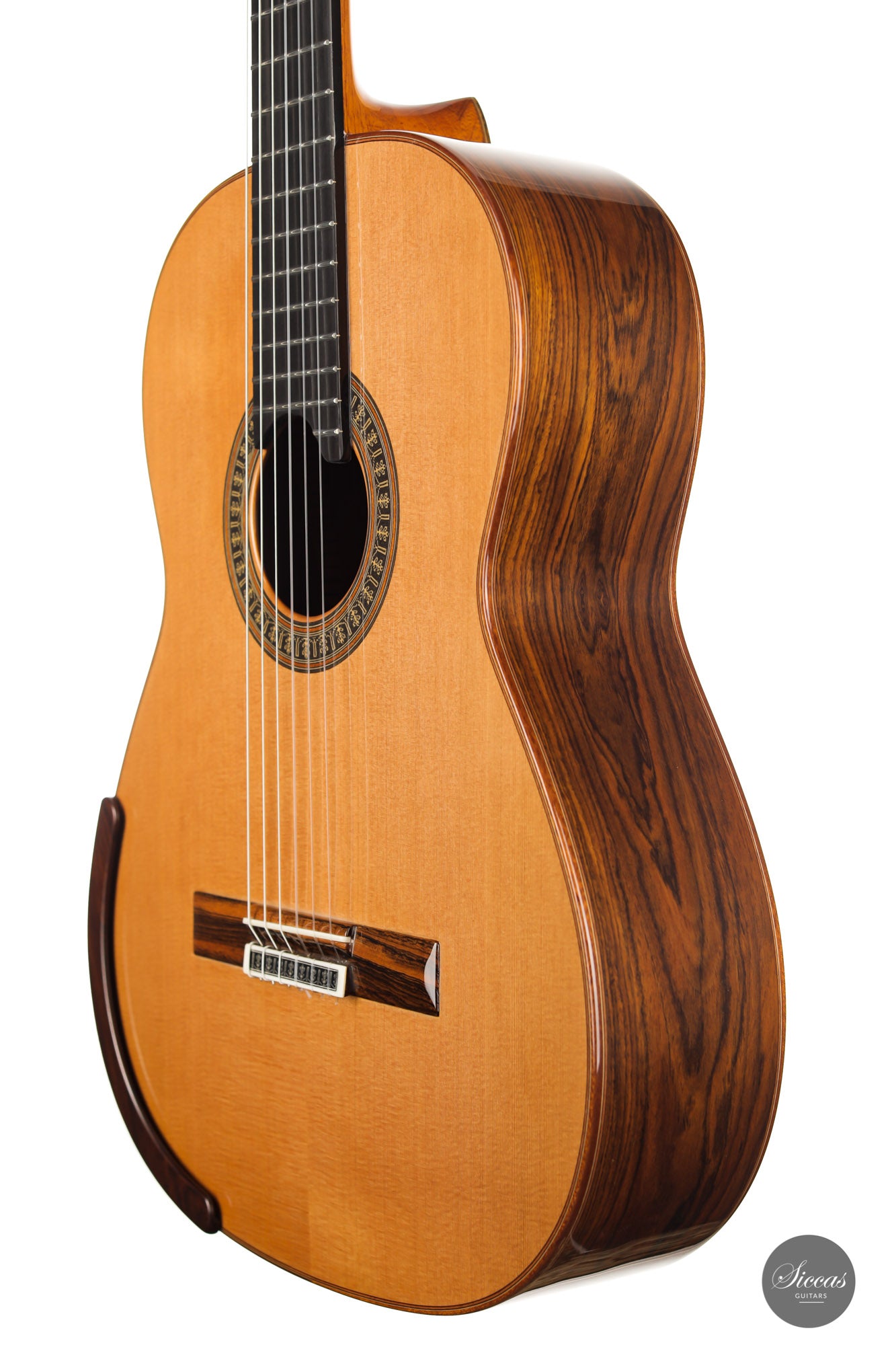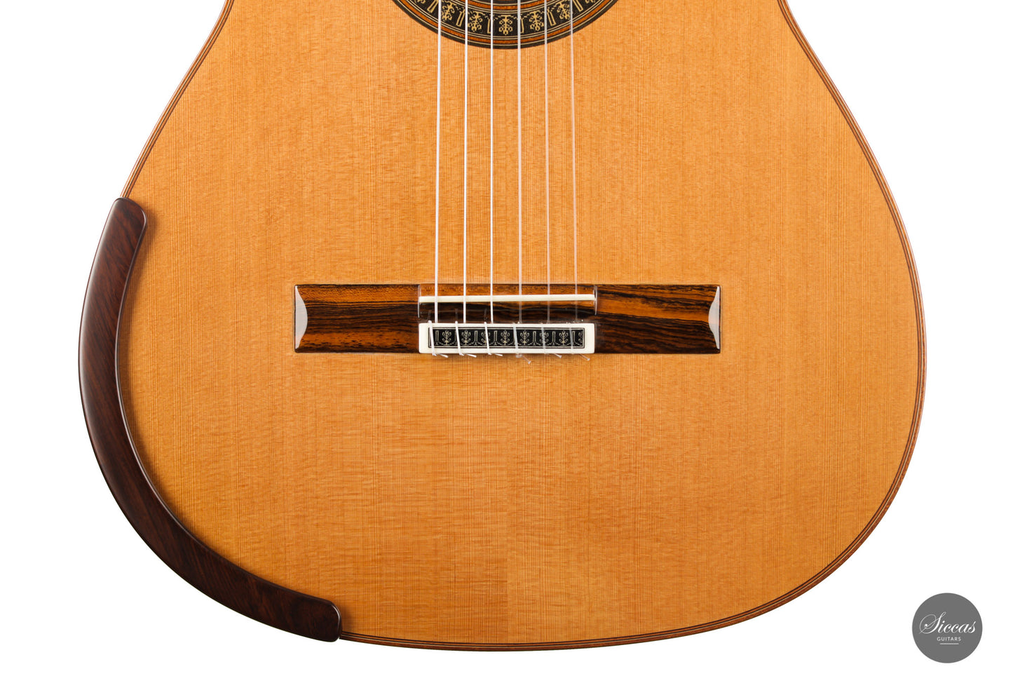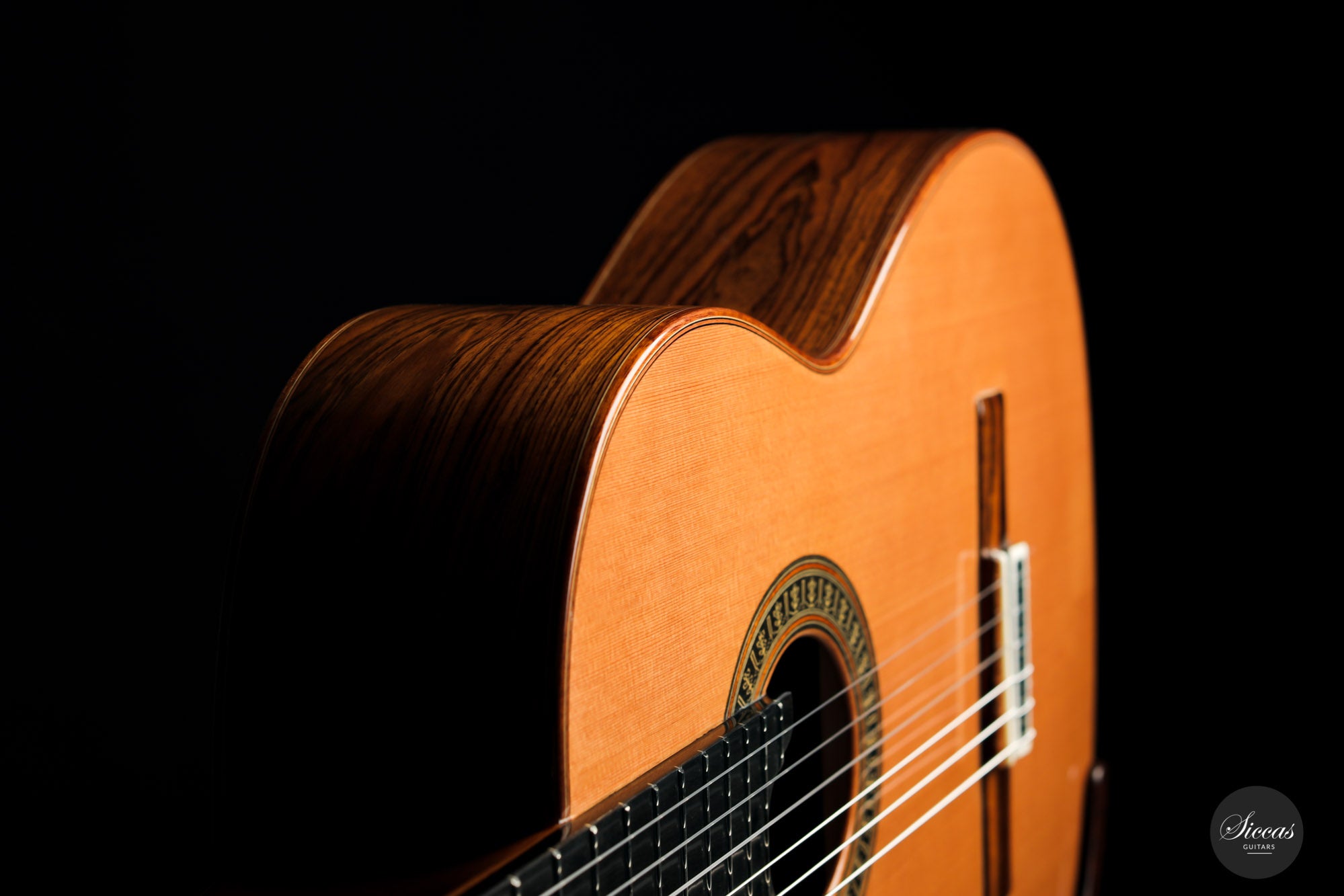 Diese wunderschöne Gitarre ist mit Boden und Zargen aus Bocote , was sowohl eine exotische und zugleich edle Optik mitbringt, und mit einer feinen Zederndecke gebaut. Man muss nur minimalen Aufwand in der rechten Hand betreiben, um aufgrund der tollen Ansprache maximale Projektion und Lautstärke zu erhalten. Klangkraft, Projektion und ein fast unendlich scheinendes Sustain sind nur einige Eigenschaften, die dieses Herencia-Modell mit Gitterbeleistung von Vicente Carrillo auszeichnen. Jede Gitarre, die mit den absolut besten handverlesenen Hölzern aus seinem Holzvorrat gebaut wurde, ist sowohl ein Kunstwerk als auch ein Instrument der höchsten Qualität für musikalische Ansprüche. Das Herencia-Modell besitzt aber nicht nur eine großes Klangvolumen, sondern auch ein süßes Timbre mit glockenartigen Höhen. Innovation und Tradition in perfekter Harmonie - eine Gitarre, die geschaffen wurde, um viele Jahre lang gespielt zu werden.