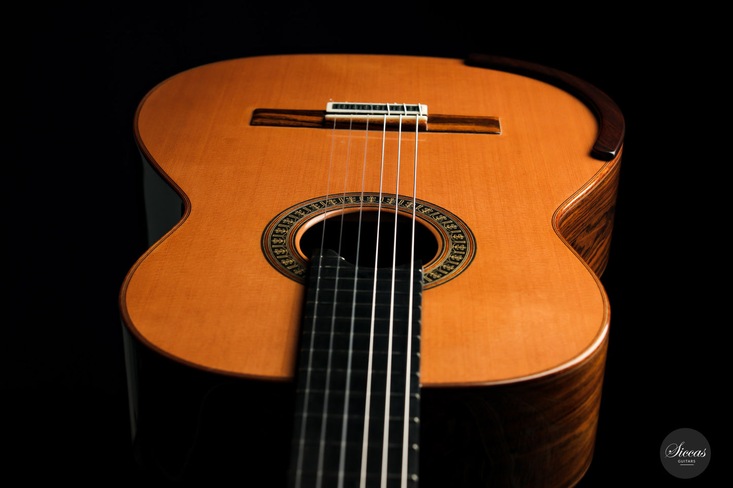 Die klassische Gitarre mit ihren weichen Nylonsaiten und ihrem charakteristischen Timbre ist zum Symbol der Kammermusik, der spanischen Tradition und des Konzertrepertoires geworden. Ihre moderne Form prägte Antonio de Torres im 19. Jahrhundert, indem er den Standard für Korpus, Fächerbeleistung und die 65-Zentimeter-Mensur setzte, die bis heute verwendet werden. Instrumente dieser Kategorie eröffnen eine reiche Palette von den feinen romantischen Miniaturen Tárregas bis zu den majestätischen Konzerten Rodrigos. Hier finden Sie Gitarren, die historische Kontinuität bewahren und zugleich zu neuen Interpretationen anregen.