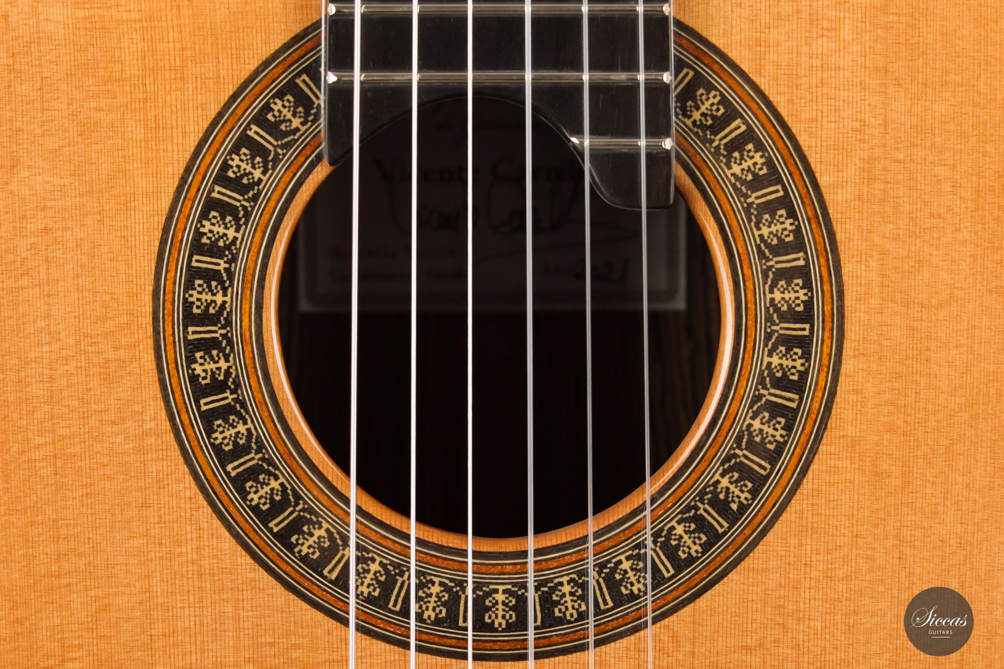 Vicente Carrillo wurde 2009 mit dem "Regional Craftsmanship Award" und 2010 auch mit dem "National Award" ausgezeichnet. Alle seine Gitarren haben einen ausgeprägten Klang, der eine ausgewogene Balance zwischen tragenden Bässen und lieblichen Höhen bietet. In seiner Werkstatt ist Innovation immer ein wichtiger Faktor. Er verwendet verschiedene Konstruktionstechniken und entwickelt sich dadurch ständig weiter, um die Kunst des Gitarrenbaus noch besser zu verstehen.Künstler, die von Vicente Carrillo gebaute Gitarren spielen oder gespielt haben, sind unter anderem: Paco de Lucía, Tomatito, J.M. Cañizarez, El Niño Josele, Rafael Cañizares, Javier Limón, Keith Richards & Josemi Carmona (Ketama).